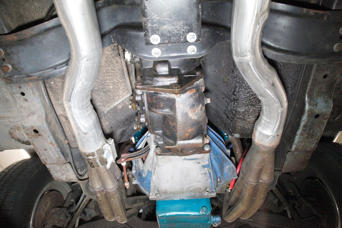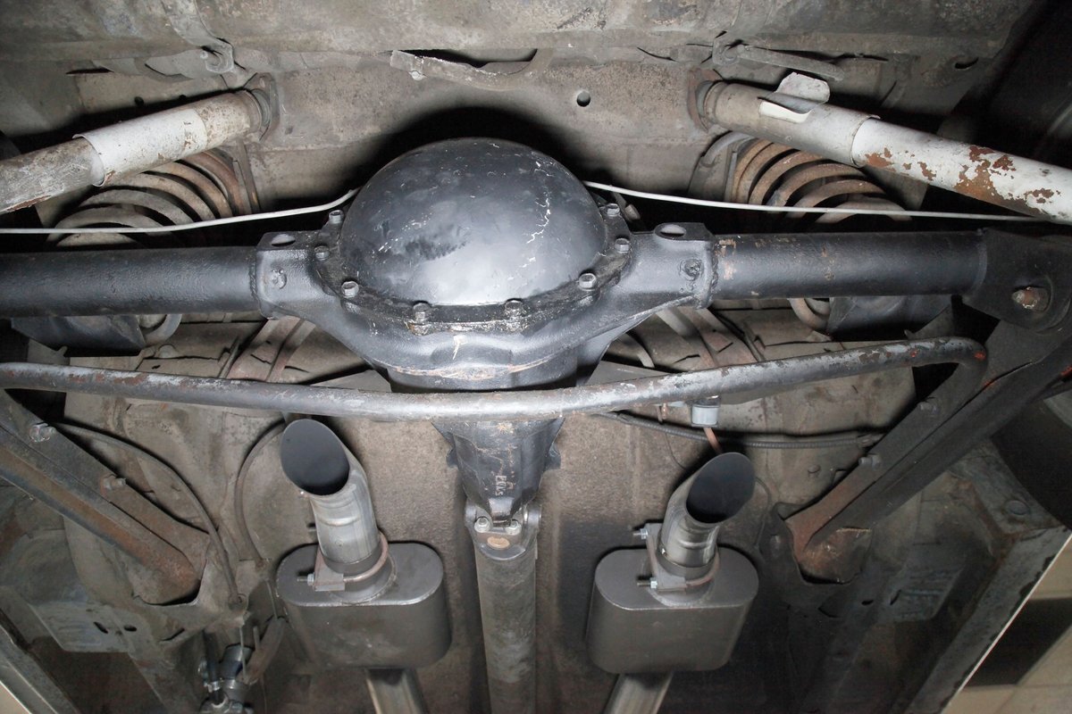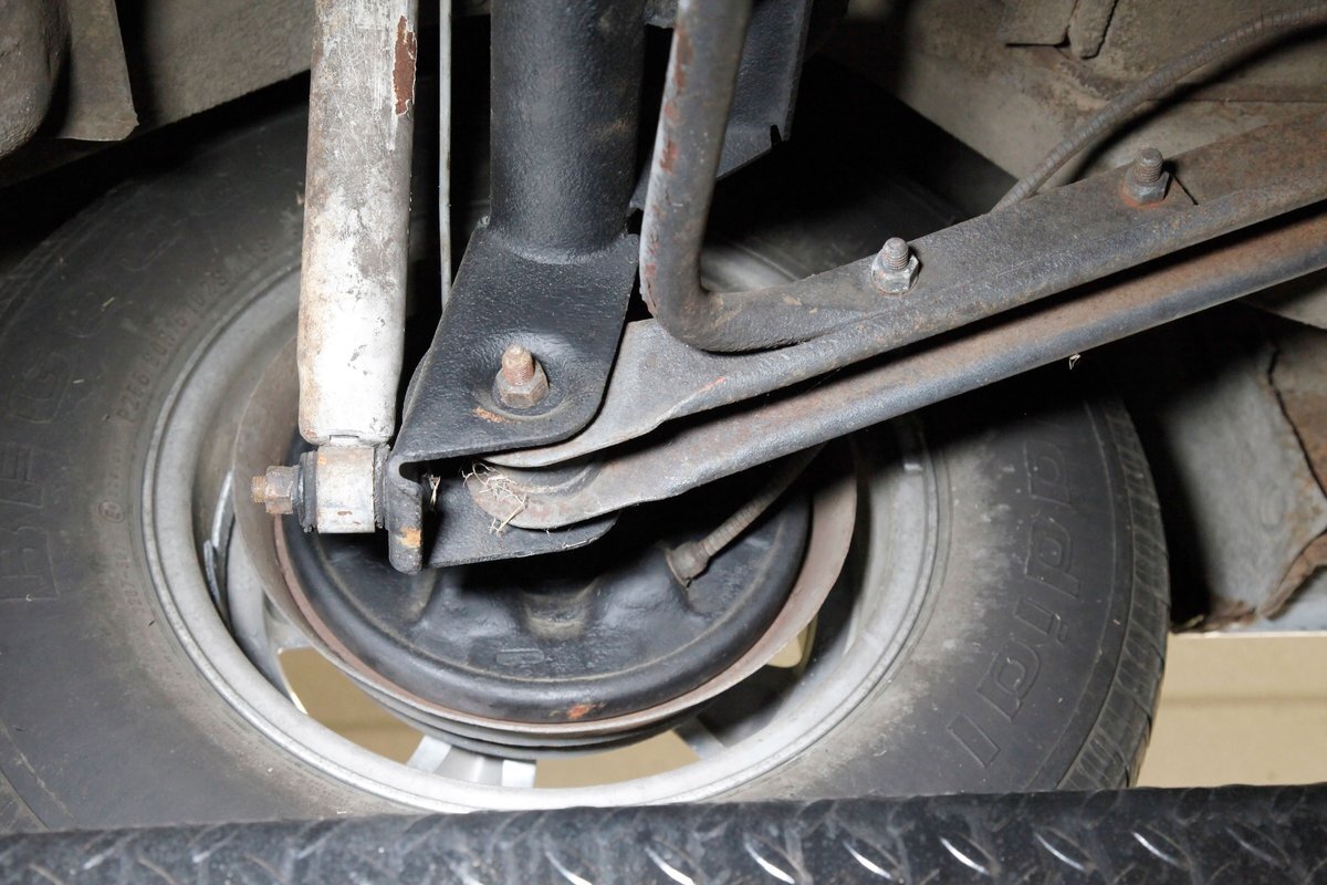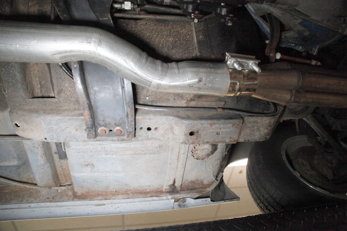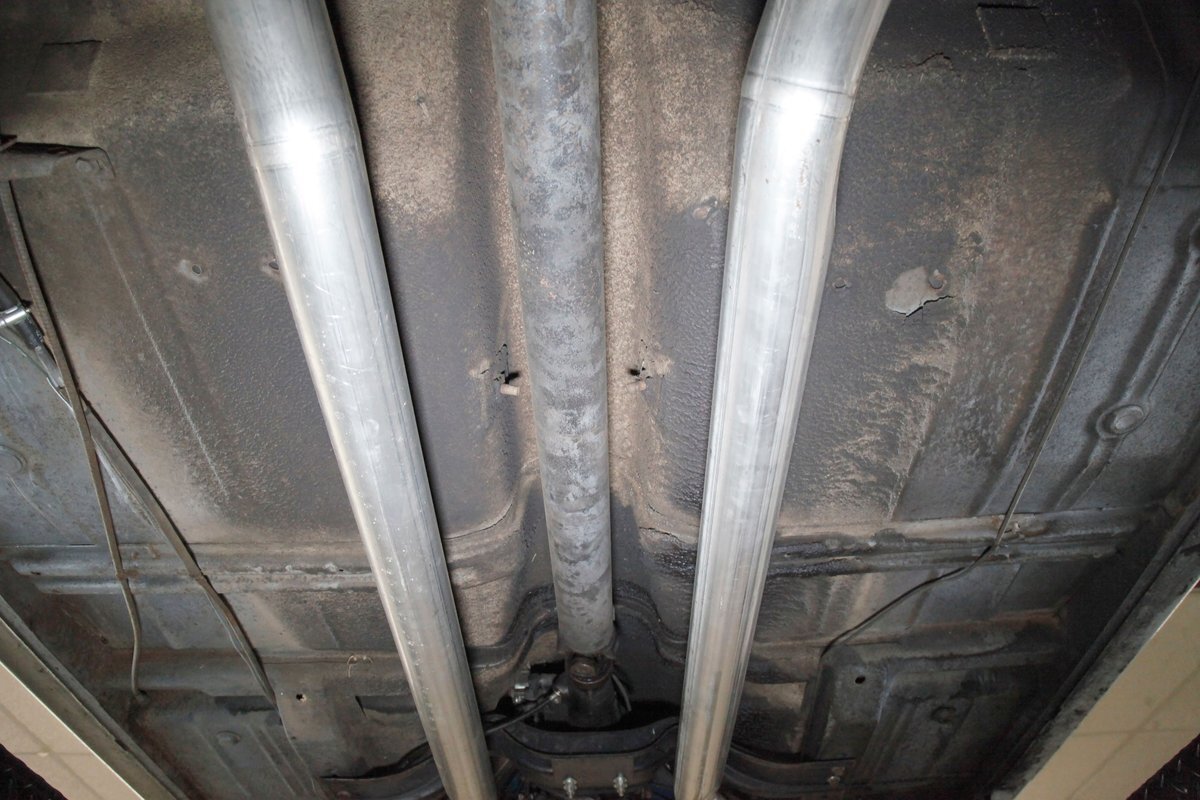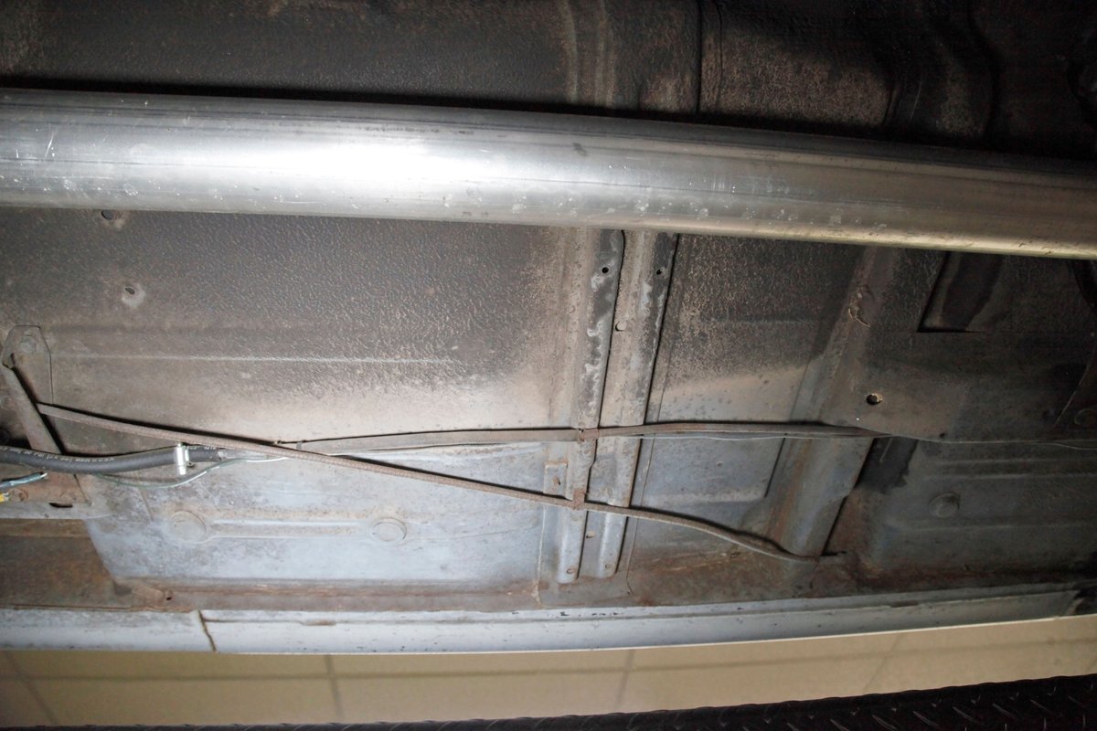Just light surface rust and solid floor pans and framing of the unibody. The exhaust looks like new and front independent coil spring suspension, and leaf springs for the back are providing the ride and handling. Power disc front braking and power drums for the back are seen.