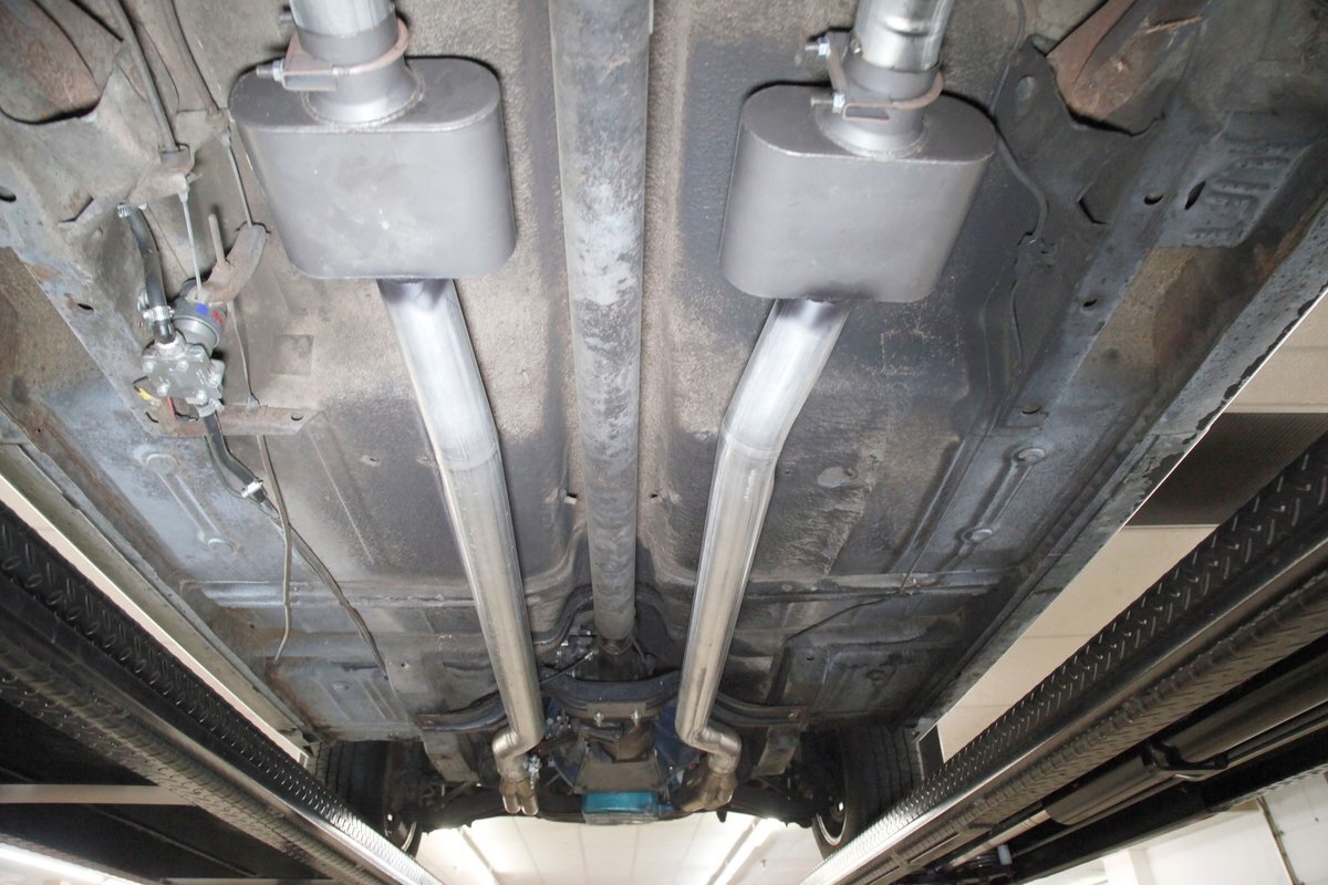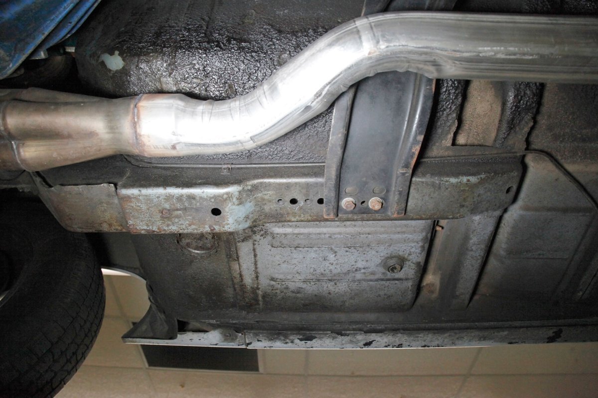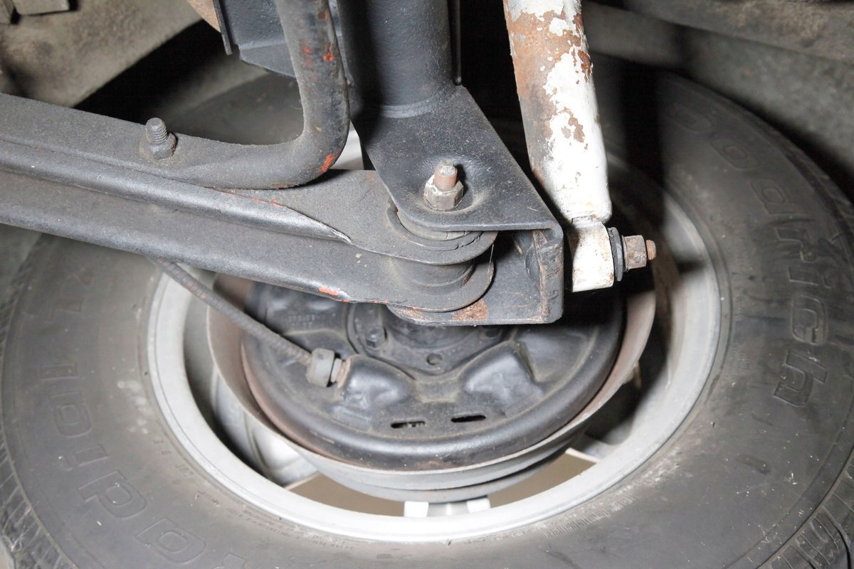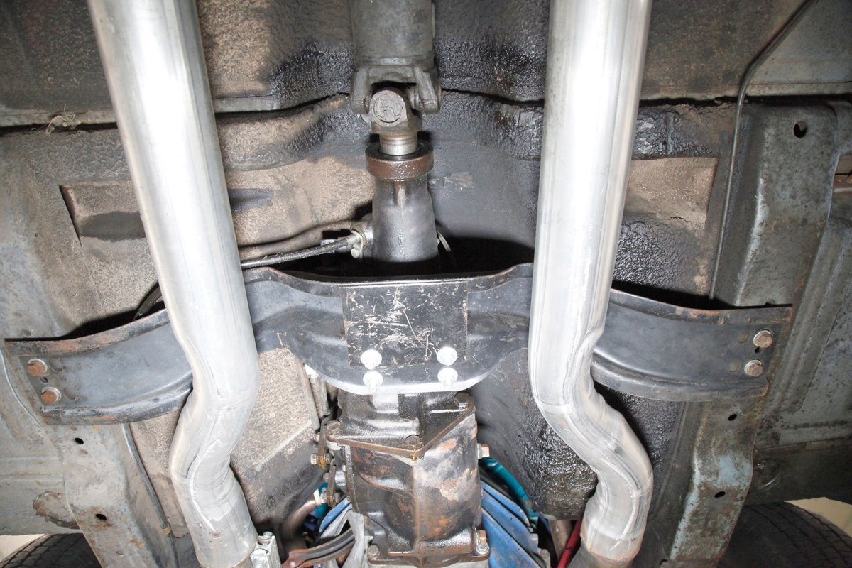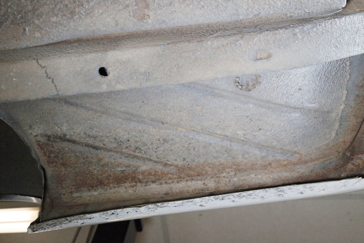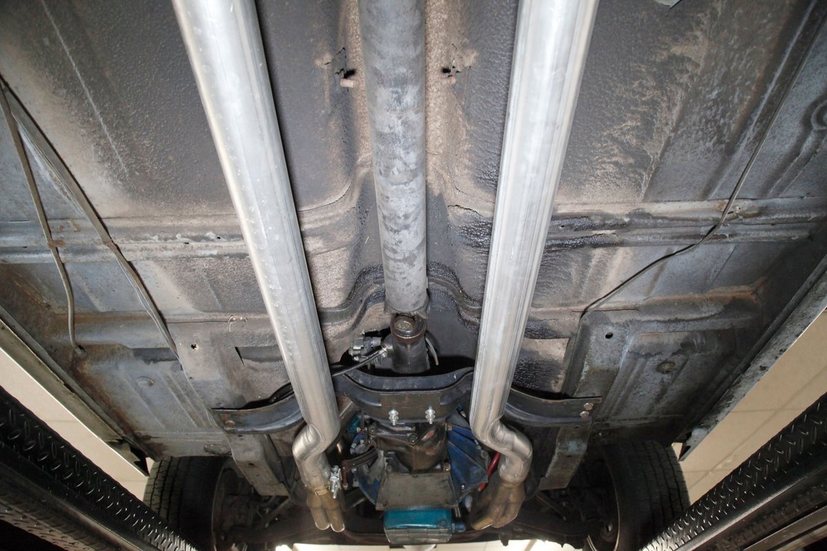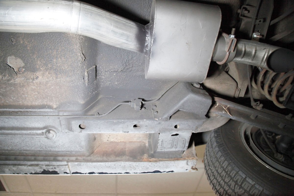 Just light surface rust and solid floor pans and framing of the unibody. The exhaust looks like new and front independent coil spring suspension, and leaf springs for the back are providing the ride and handling. Power disc front braking and power drums for the back are seen.