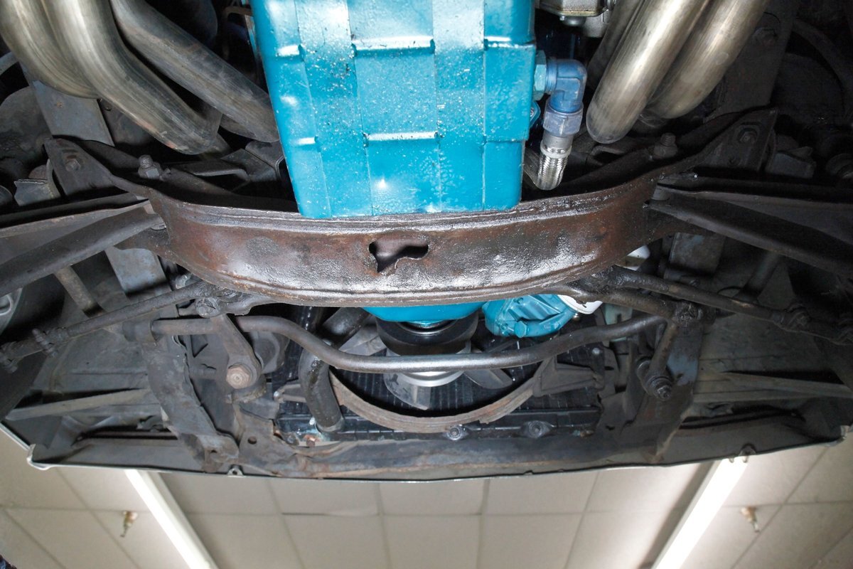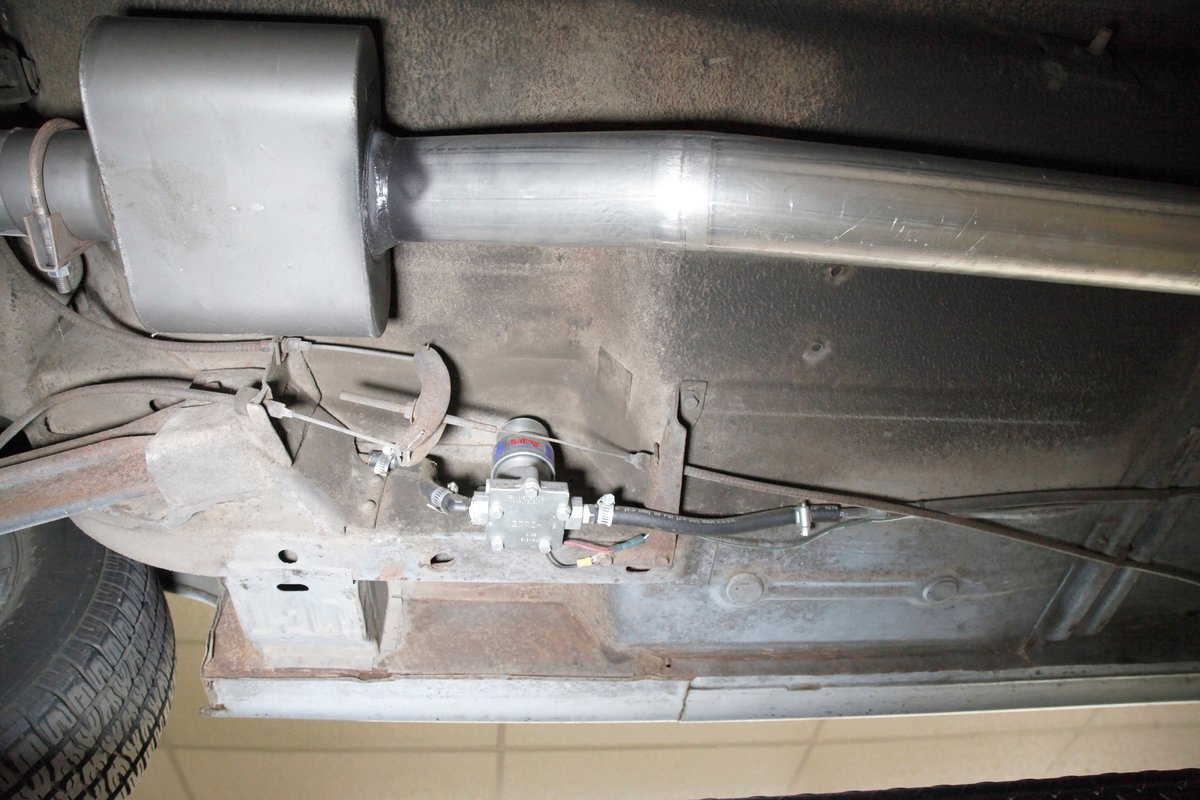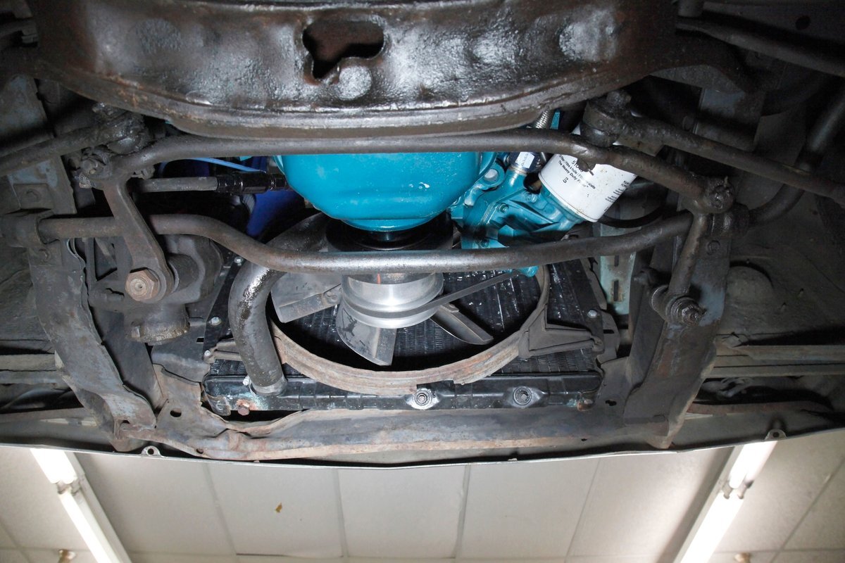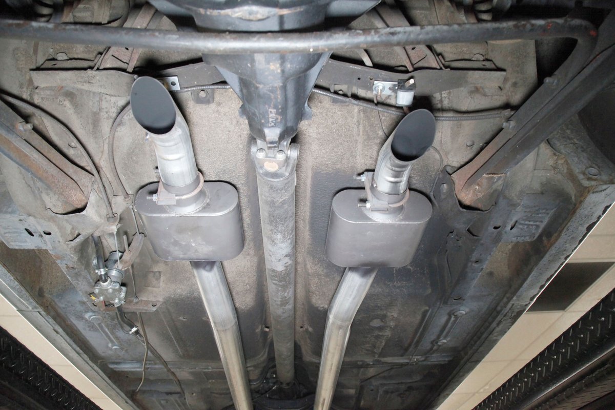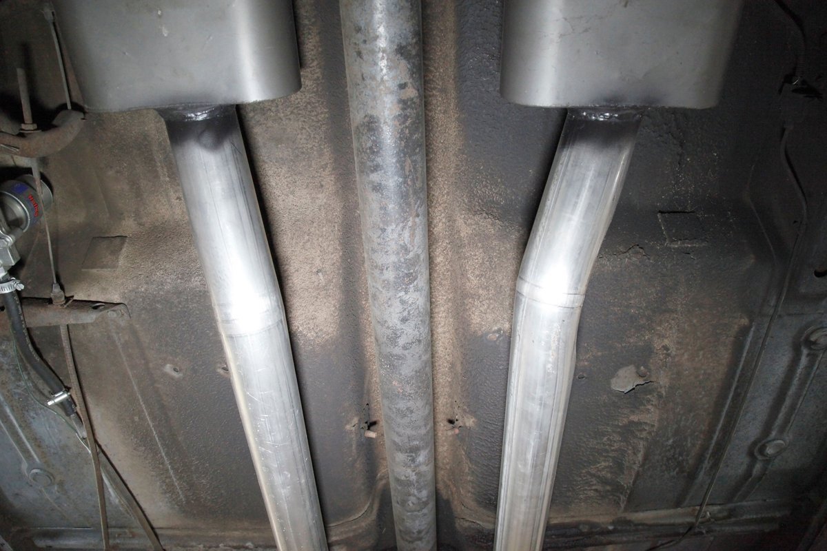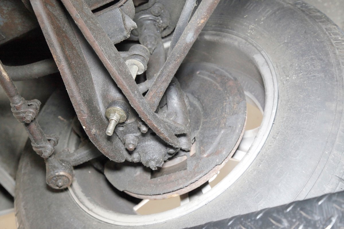 Just light surface rust and solid floor pans and framing of the unibody. The exhaust looks like new and front independent coil spring suspension, and leaf springs for the back are providing the ride and handling. Power disc front braking and power drums for the back are seen.
