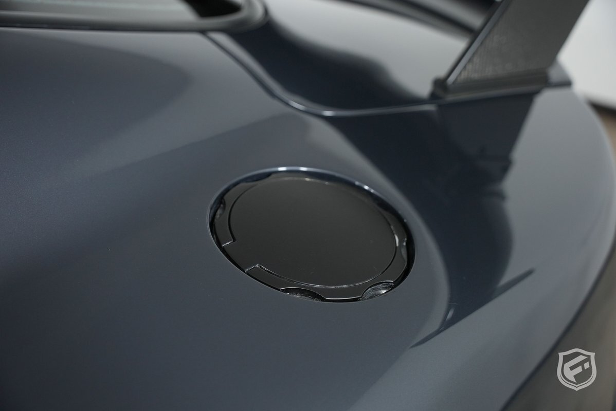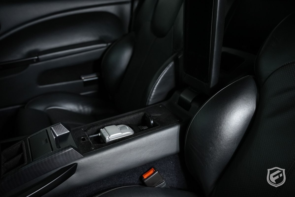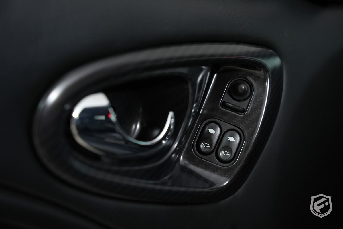 A set of carbon fiber front and rear spoilers enhances aerodynamics and adds a touch of aggressive elegance. Tinted windows provide a level of privacy, while the painted calipers bring everything together.