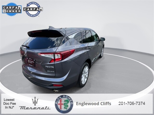 This RDX is nicely equipped with AWD, 4-Wheel Disc Brakes, 4.17 Axle Ratio, 9 Speakers, ABS brakes, Air Conditioning, Alloy wheels, AM/FM radio: SiriusXM, Apple CarPlay/Android Auto, Auto High-beam Headlights, Auto-dimming Rear-View mirror, Automatic temperature control, Brake assist, Bumpers: body-color, Compass, Delay-off headlights, Driver door bin, Driver vanity mirror, Dual front impact airbags, Dual front side impact airbags, Electronic Stability Control, Emergency communication system: AcuraLink, Exterior Parking Camera Rear, Four wheel independent suspension, Front anti-roll bar, Front Bucket Seats, Front Center Armrest, Front dual zone A/C, Front reading lights, Fully automatic headlights, Garage door transmitter: HomeLink, Heated door mirrors, Heated front seats, Heated Front Sport Seats, Illuminated entry, Knee airbag, Lane departure: Lane Keeping Assist System (LKAS) active, Leatherette-Trimmed Interior, Low tire pressure warning, Memory seat, Occupant sensing airbag, Outside temperature display, Overhead airbag, Overhead console, Panic alarm, Passenger door bin, Passenger vanity mirror, Power door mirrors, Power driver seat, Power Liftgate, Power moonroof, Power passenger seat, Power steering, Power windows, Radio data system, Radio: Acura Premium Audio System, Rear anti-roll bar, Rear reading lights, Rear seat center armrest, Rear window defroster, Rear window wiper, Remote keyless entry, Security system, Speed control, Speed-sensing steering, Split folding rear seat, Spoiler, Steering wheel mounted audio controls, Tachometer, Telescoping steering wheel, Tilt steering wheel, Traction control, Trip computer, Turn signal indicator mirrors, Variably intermittent wipers, and Wheels: 19 x 8 Glitter Silver Multi-Spoke.