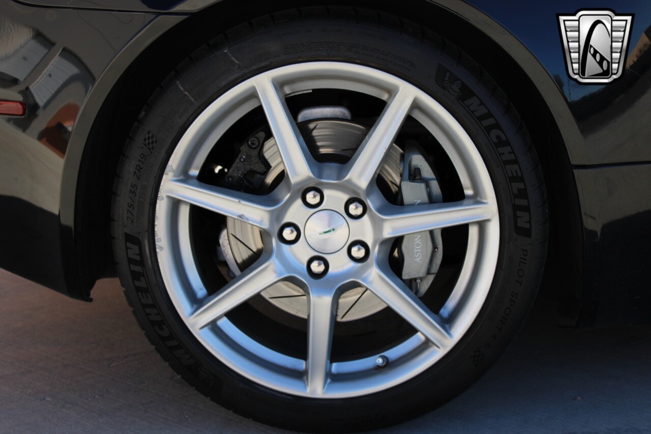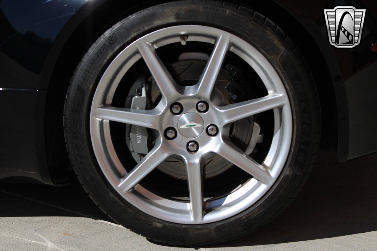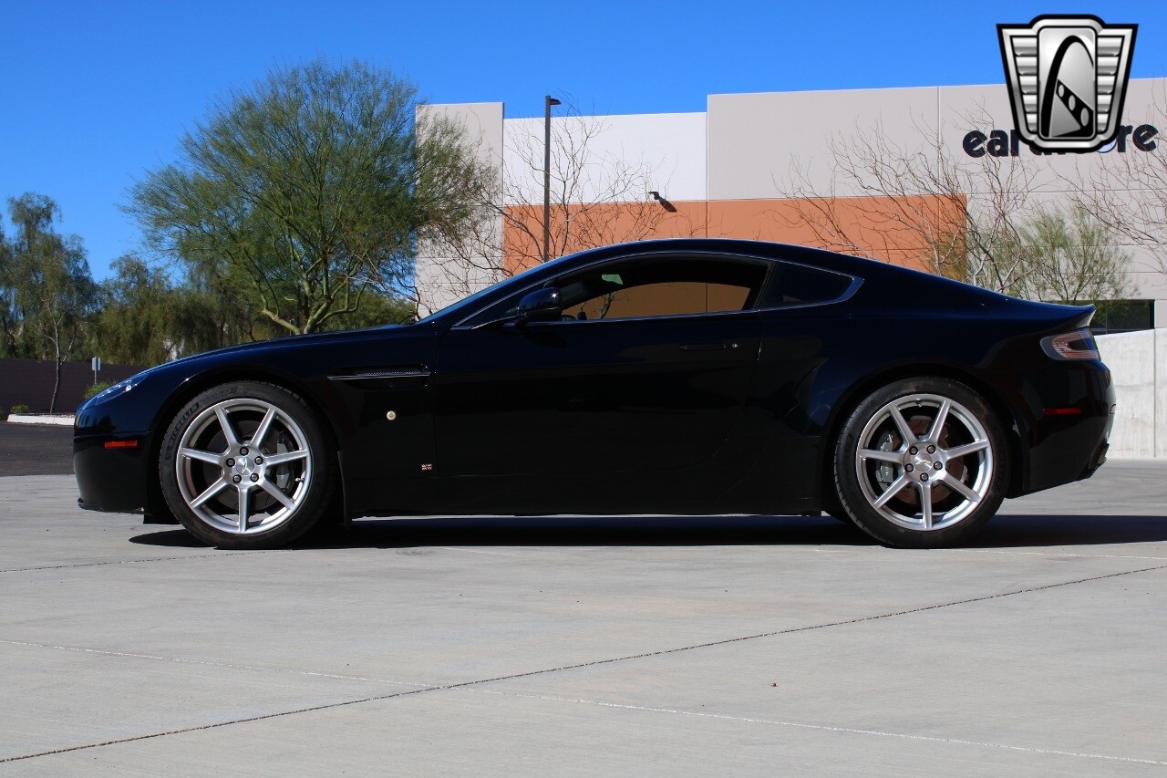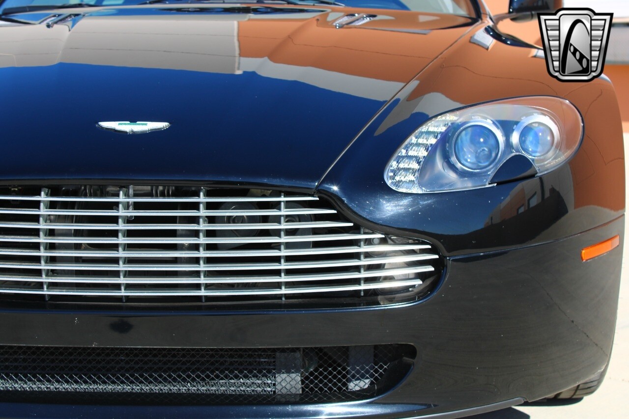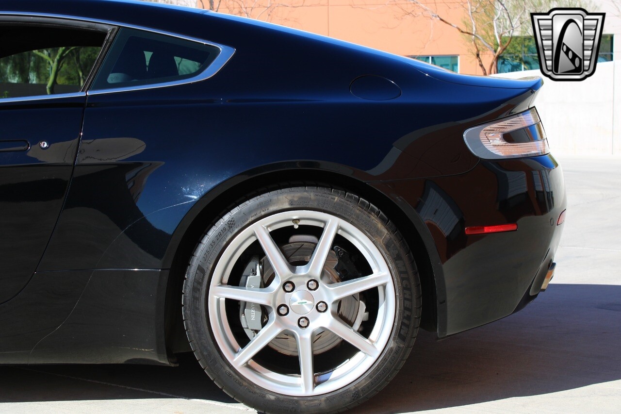 Introducing the 2008 Aston Martin Vantage, a combination of luxury and performance. This stunning vehicle is presented in a sleek black exterior, complemented by a luxurious black leather interior, exuding an air of sophistication and elegance.