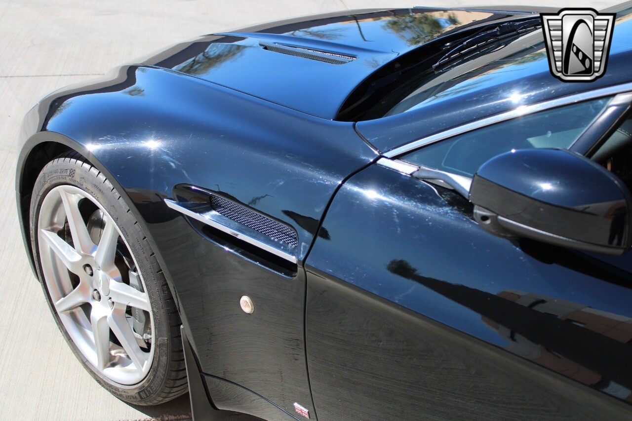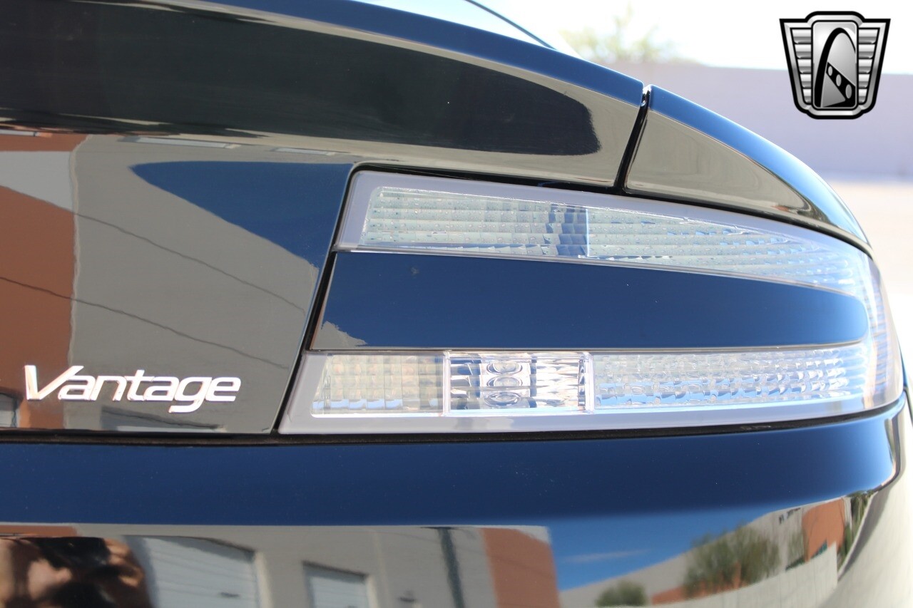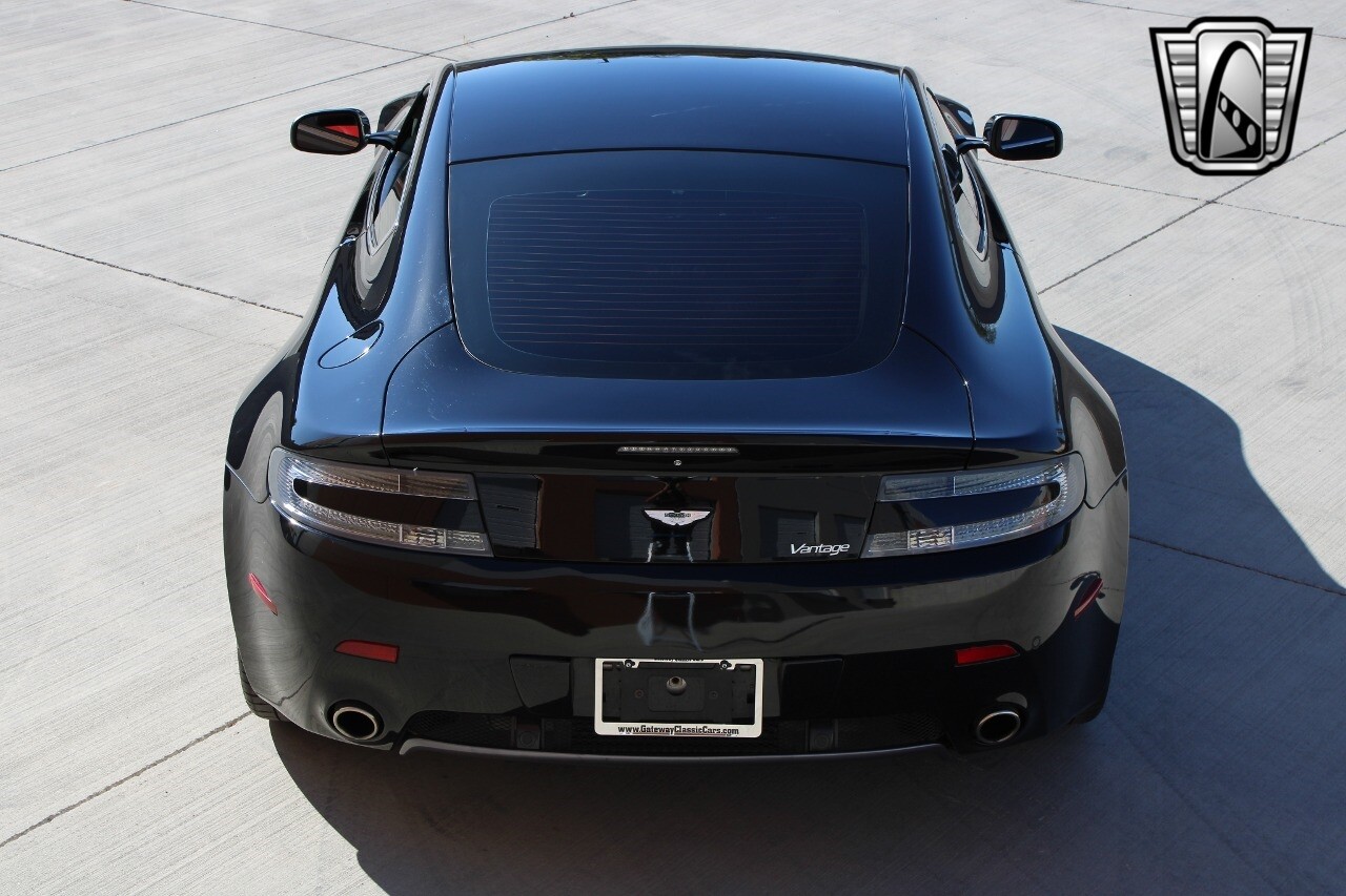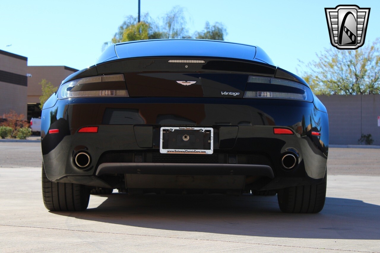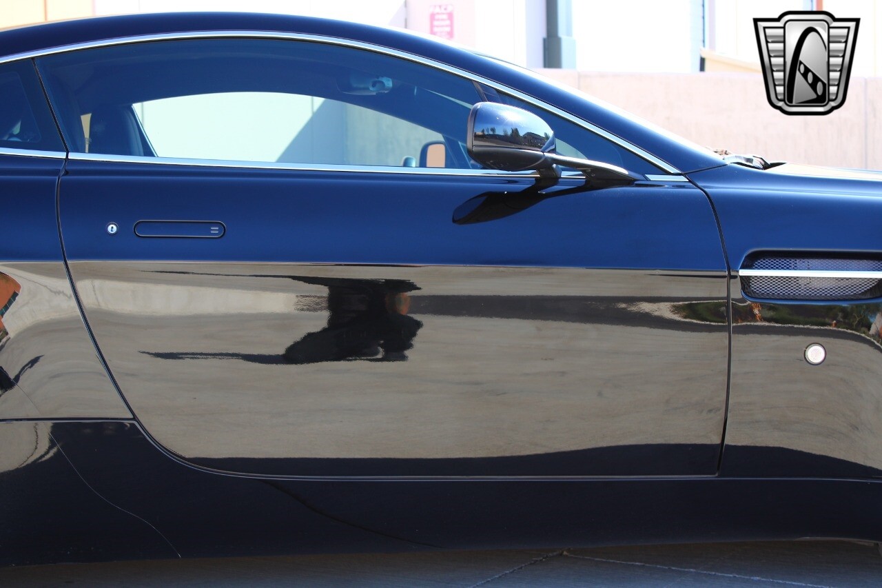 Introducing the 2008 Aston Martin Vantage, a combination of luxury and performance. This stunning vehicle is presented in a sleek black exterior, complemented by a luxurious black leather interior, exuding an air of sophistication and elegance.