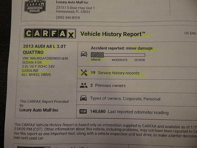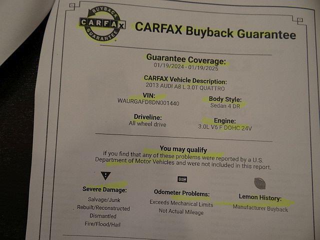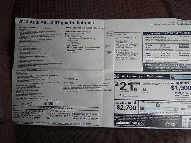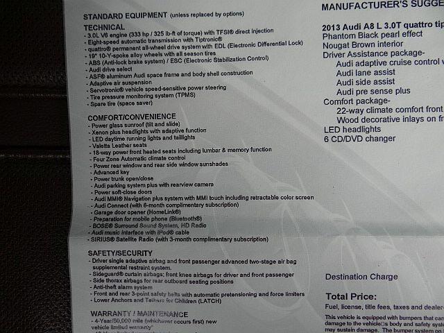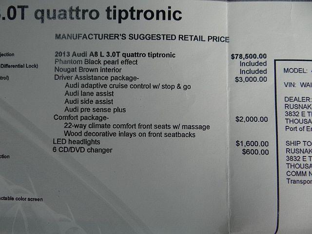 2013 Audi A8L 3.0T A8 LWB LOADED COMFORT PACKAGE DRIVERS ASSIST GREAT COLORS