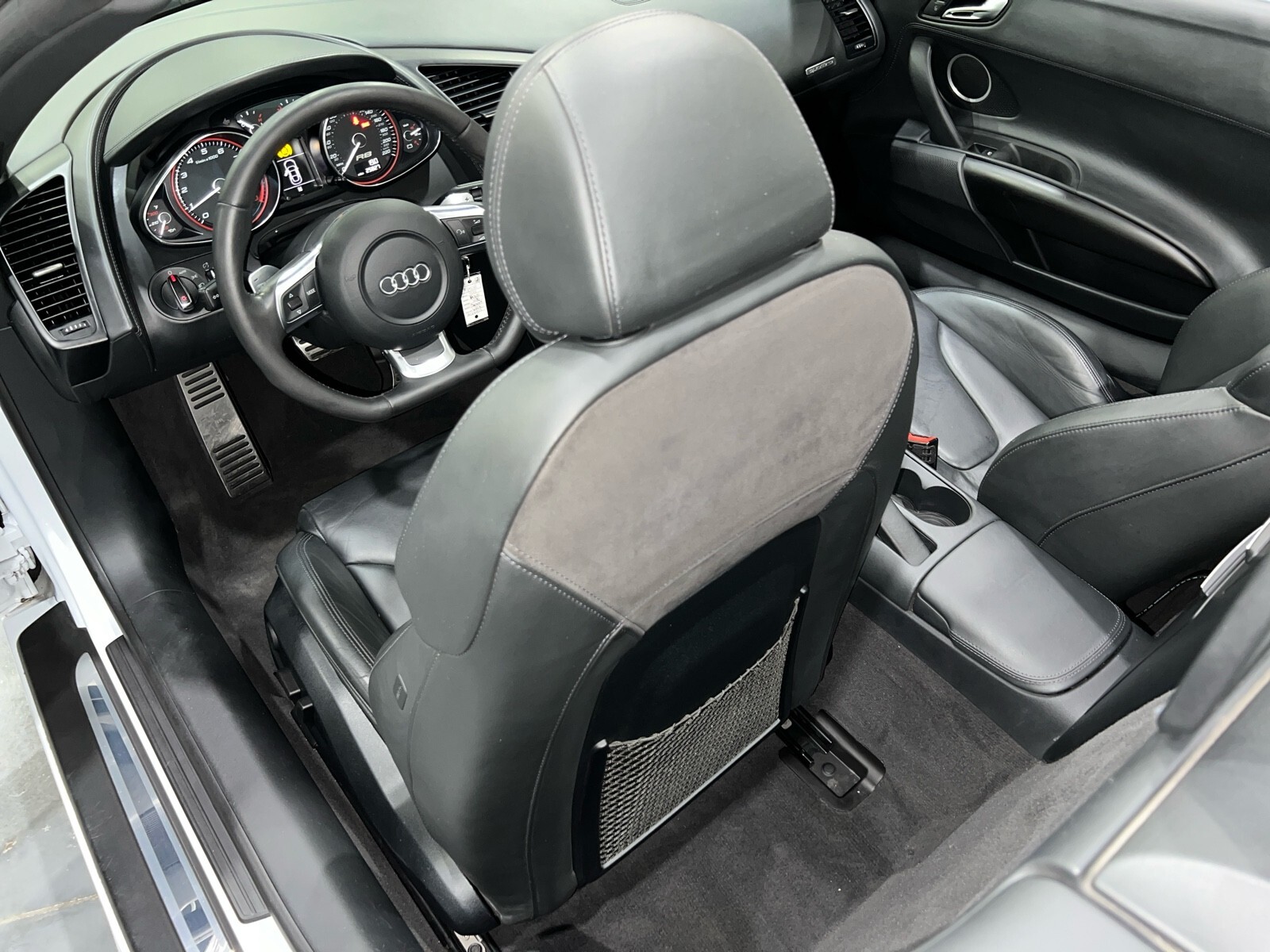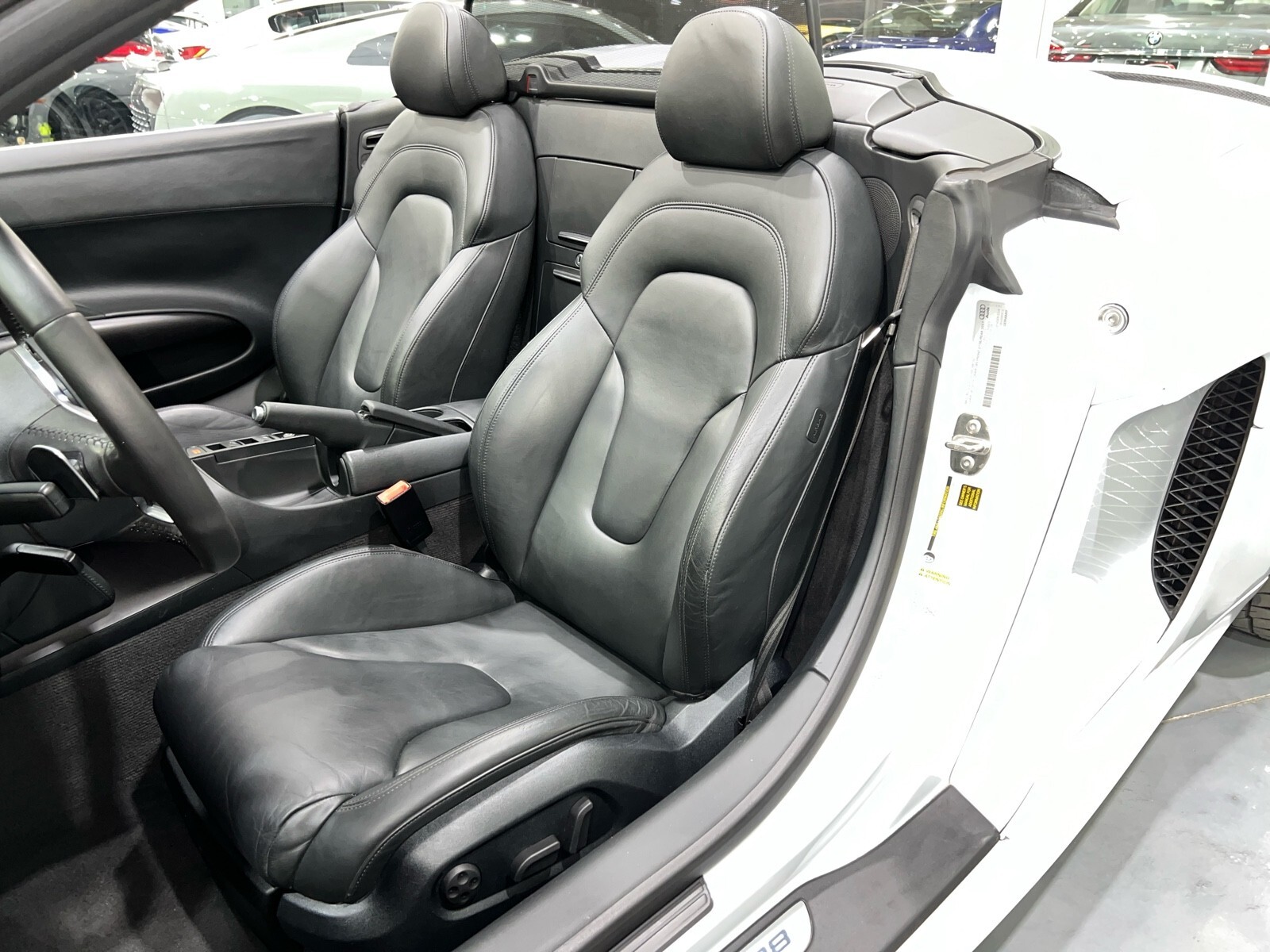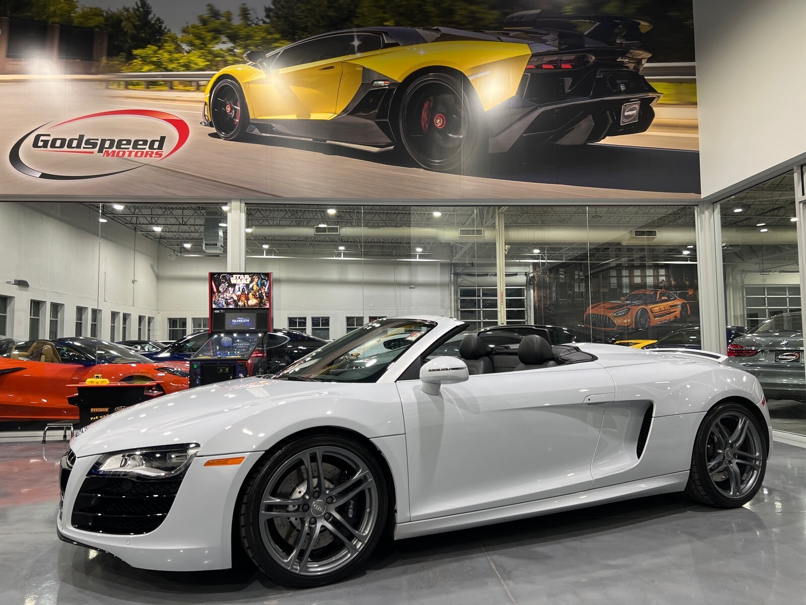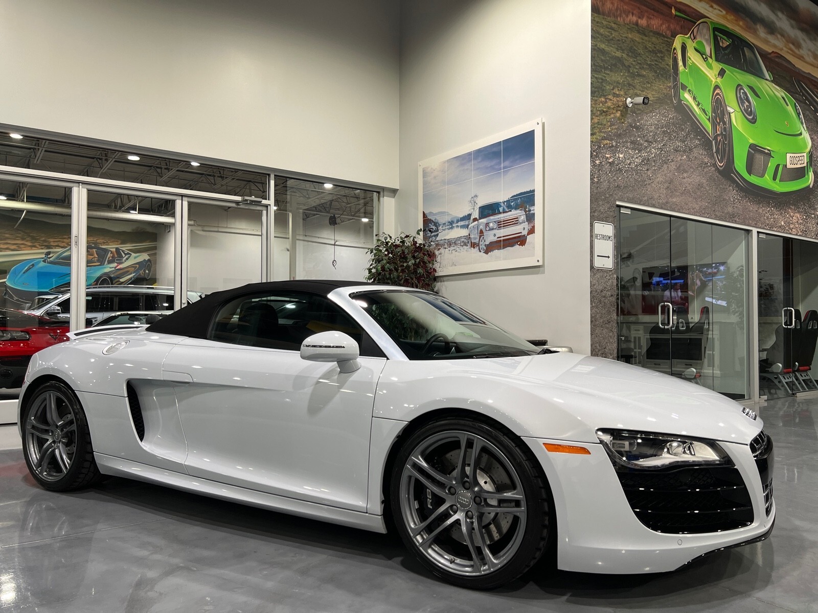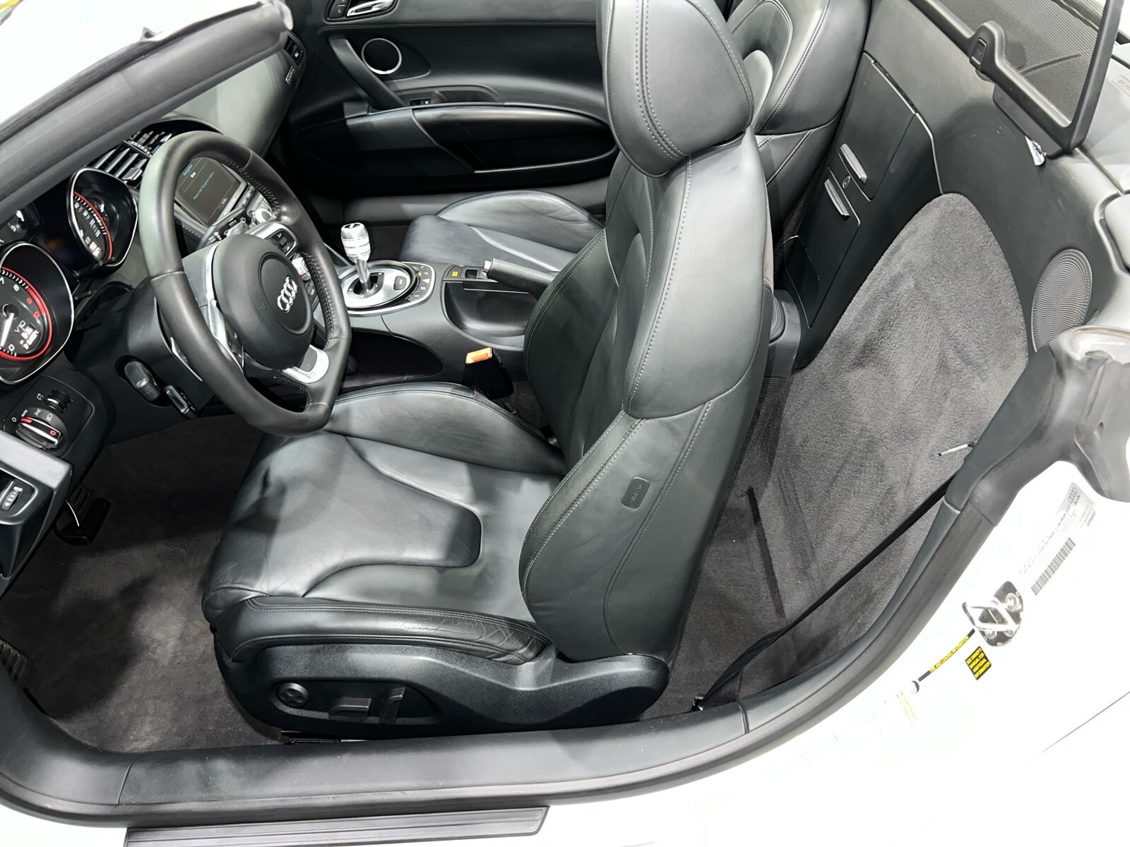 5.2L V10 rated at 525 horsepower! Power-operated convertible top, quattro all-wheel drive, Bang & Olfusen audio, SiriusXM capable, Audi Navigation Plus, Bluetooth, heated seats, rearview camera and much more! $174,550 MSRP when new! Since its debut in 2006, the Audi R8 has forged its position among the ranks of Europe's best sportscars. In 2008, Audi released the Spyder version featuring a convertible top and the desirable 5.2L V10. Godspeed Motors is pleased to offer this 2011 Audi R8 Spyder! The open air experience gives the driver and passenger a front row experience to the symphony coming from the rear tailpipes. Screaming all the way up to 8,000 rpm and beyond, the Lamborghini-built engine is rated at 525 horsepower and is capable of propeling this drop-top to 60 mph in less than 4 seconds! That top needs only 19 seconds to go from a fully-closed cabin to a sunny atmosphere. Comfort and convienence was not compromised, as standard options include: quattro all-wheel drive, Bluetooth, cruise control, 10-way power heated seats, rearview camera, AM/FM/CD, and more! If you're looking for an exciting sports car that is easy to live with everyday, this Audi R8 deserves your consideration! Recent service/maintenance include: FRESH OIL CHANGE CARFAX does show a minor accident. To see more details click on the True 360 report towards the bottom of the CARFAX, or the link below view-report/betlXrWUsEtfjBgwUJPJ **Window sticker is a duplicate version, prices and options might vary** MSRP $172,800.00 INSTALLED OPTIONS [T9PA] Ibis White black soft top $0 [JN] Black, Leather Seating Surfaces $0 [PQK] 19 5 Arm Double Spoke Titanium Finish Forged Aluminum Alloy Wheels P235/35R19 front & P305/30R19 rear summer performance tires $500 [PNC] Audi Navigation System Plus W/Audi Music Interface color screen $0 Original Shipping Charge $1,250 RETAIL PRICE (ORIGINALLY NEW) $174,550.00
