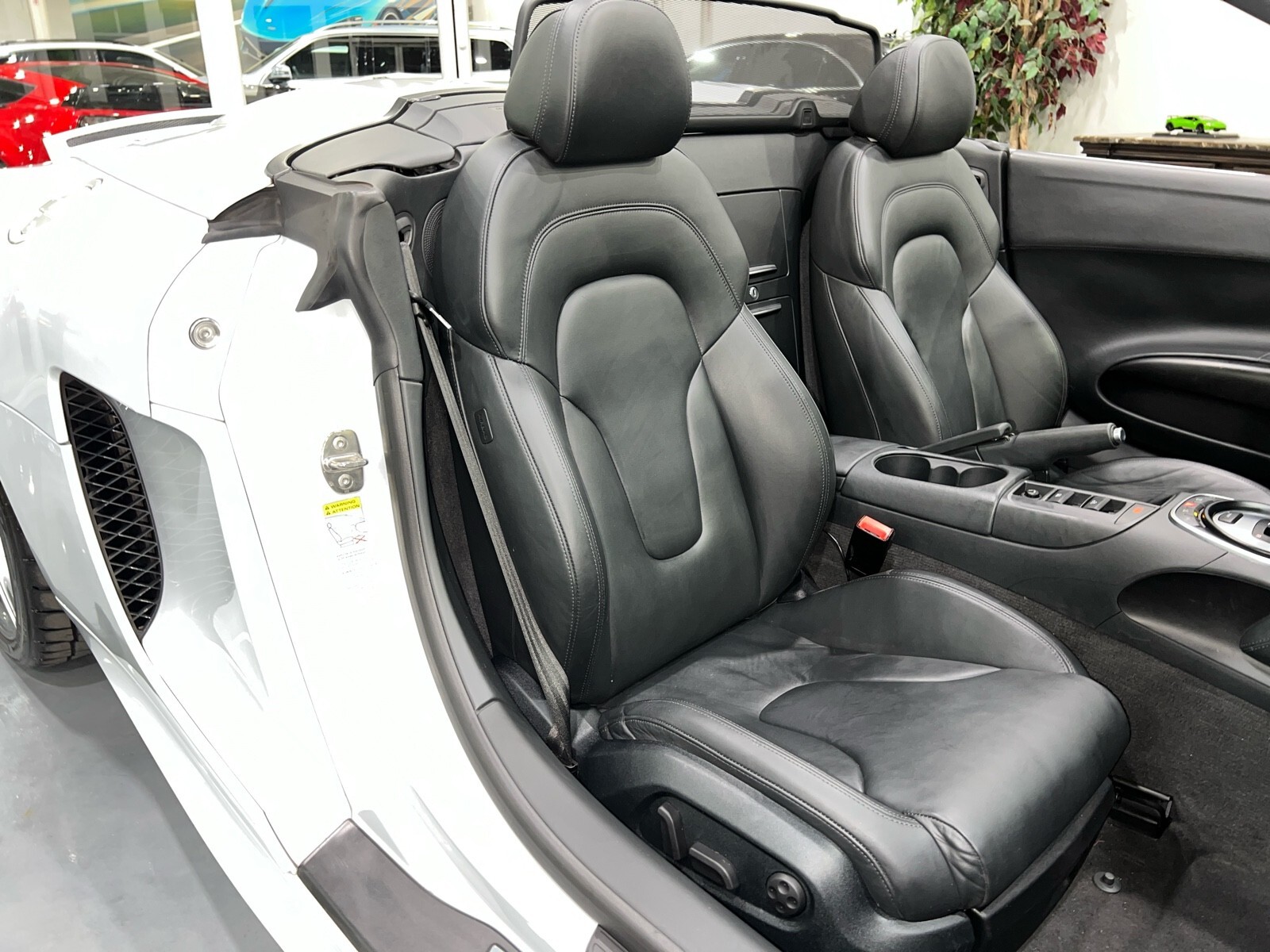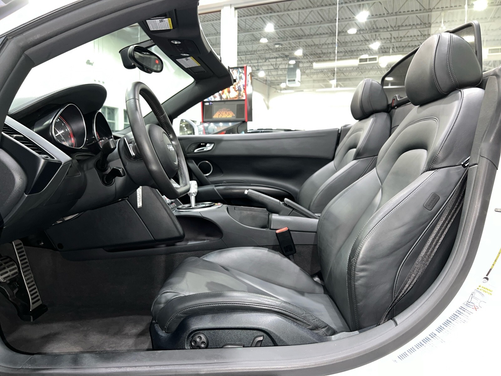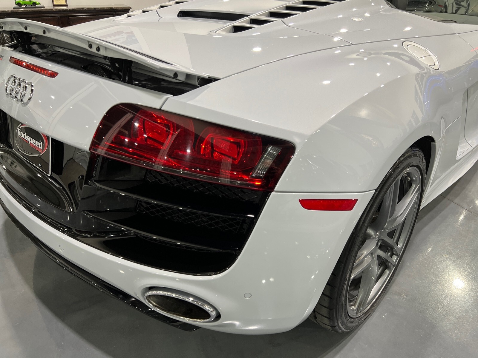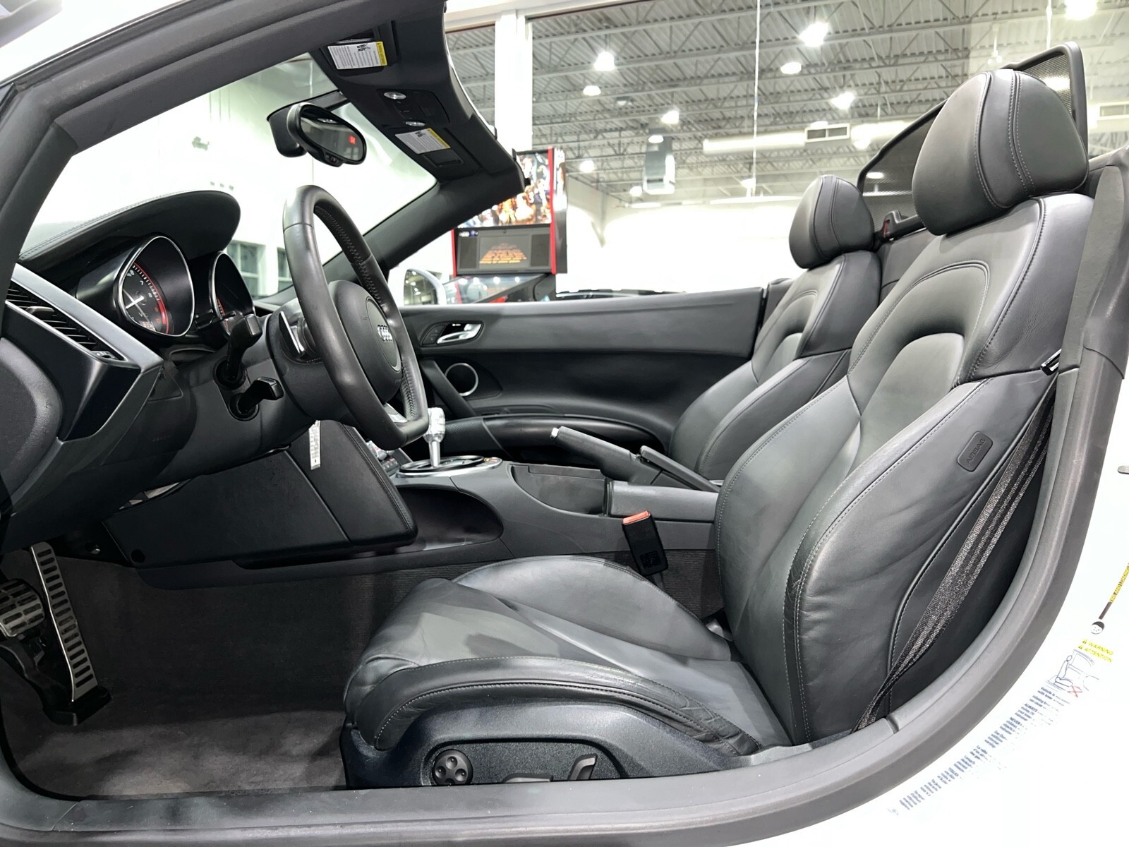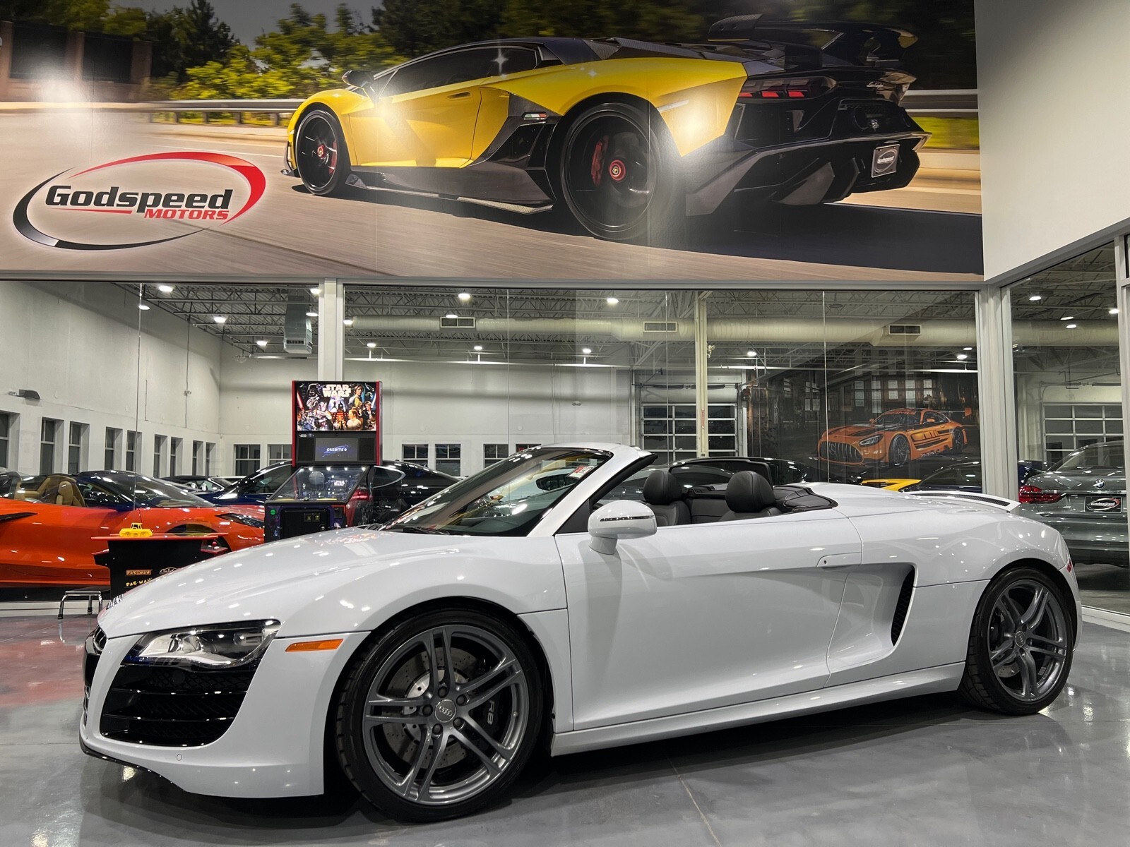 5.2L V10 rated at 525 horsepower! Power-operated convertible top, quattro all-wheel drive, Bang & Olfusen audio, SiriusXM capable, Audi Navigation Plus, Bluetooth, heated seats, rearview camera and much more! $174,550 MSRP when new! Since its debut in 2006, the Audi R8 has forged its position among the ranks of Europe's best sportscars. In 2008, Audi released the Spyder version featuring a convertible top and the desirable 5.2L V10. Godspeed Motors is pleased to offer this 2011 Audi R8 Spyder! The open air experience gives the driver and passenger a front row experience to the symphony coming from the rear tailpipes. Screaming all the way up to 8,000 rpm and beyond, the Lamborghini-built engine is rated at 525 horsepower and is capable of propeling this drop-top to 60 mph in less than 4 seconds! That top needs only 19 seconds to go from a fully-closed cabin to a sunny atmosphere. Comfort and convienence was not compromised, as standard options include: quattro all-wheel drive, Bluetooth, cruise control, 10-way power heated seats, rearview camera, AM/FM/CD, and more! If you're looking for an exciting sports car that is easy to live with everyday, this Audi R8 deserves your consideration! Recent service/maintenance include: FRESH OIL CHANGE CARFAX does show a minor accident. To see more details click on the True 360 report towards the bottom of the CARFAX, or the link below view-report/betlXrWUsEtfjBgwUJPJ **Window sticker is a duplicate version, prices and options might vary** MSRP $172,800.00 INSTALLED OPTIONS [T9PA] Ibis White black soft top $0 [JN] Black, Leather Seating Surfaces $0 [PQK] 19 5 Arm Double Spoke Titanium Finish Forged Aluminum Alloy Wheels P235/35R19 front & P305/30R19 rear summer performance tires $500 [PNC] Audi Navigation System Plus W/Audi Music Interface color screen $0 Original Shipping Charge $1,250 RETAIL PRICE (ORIGINALLY NEW) $174,550.00
