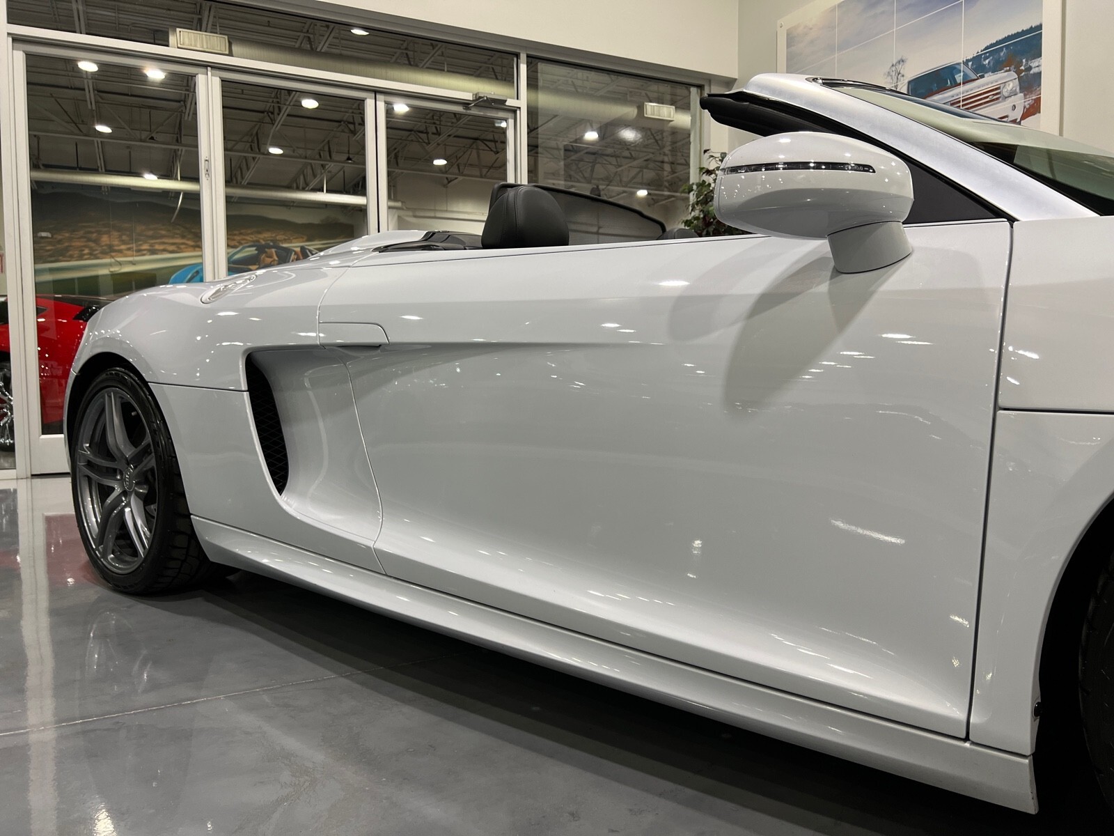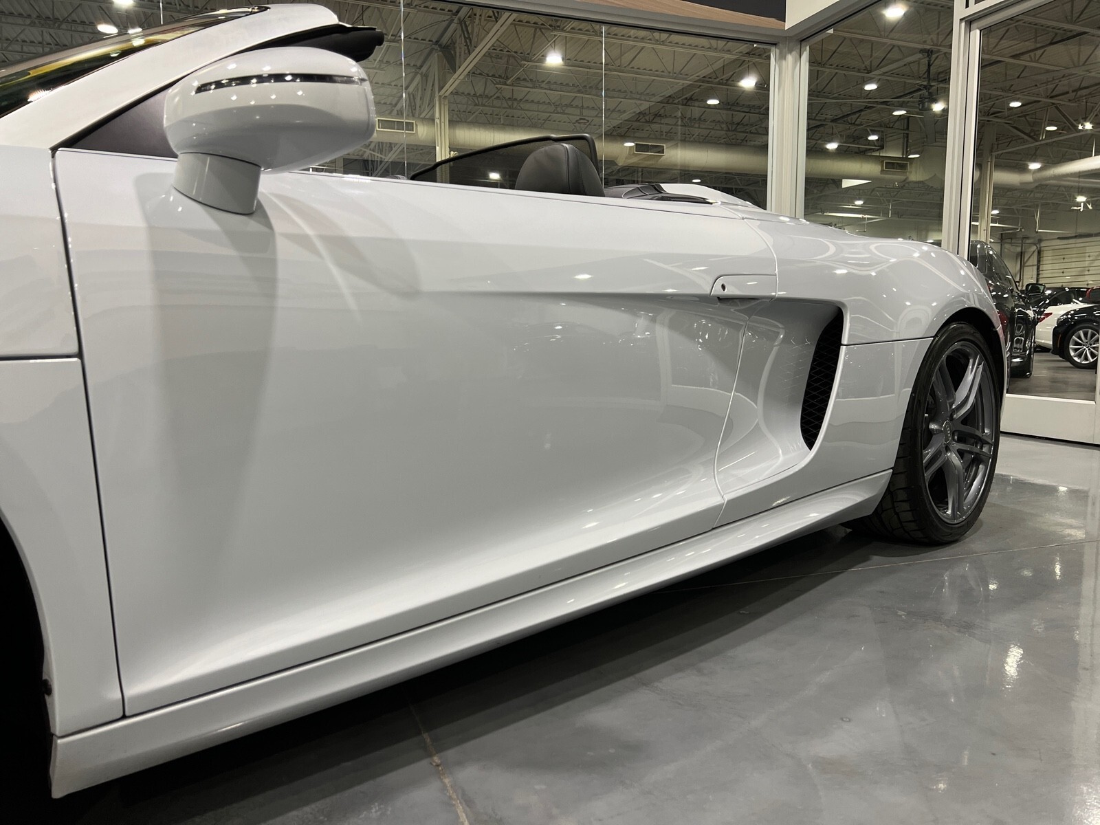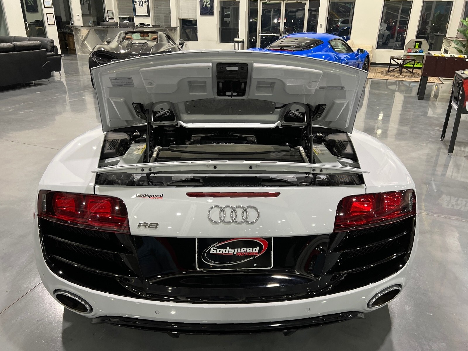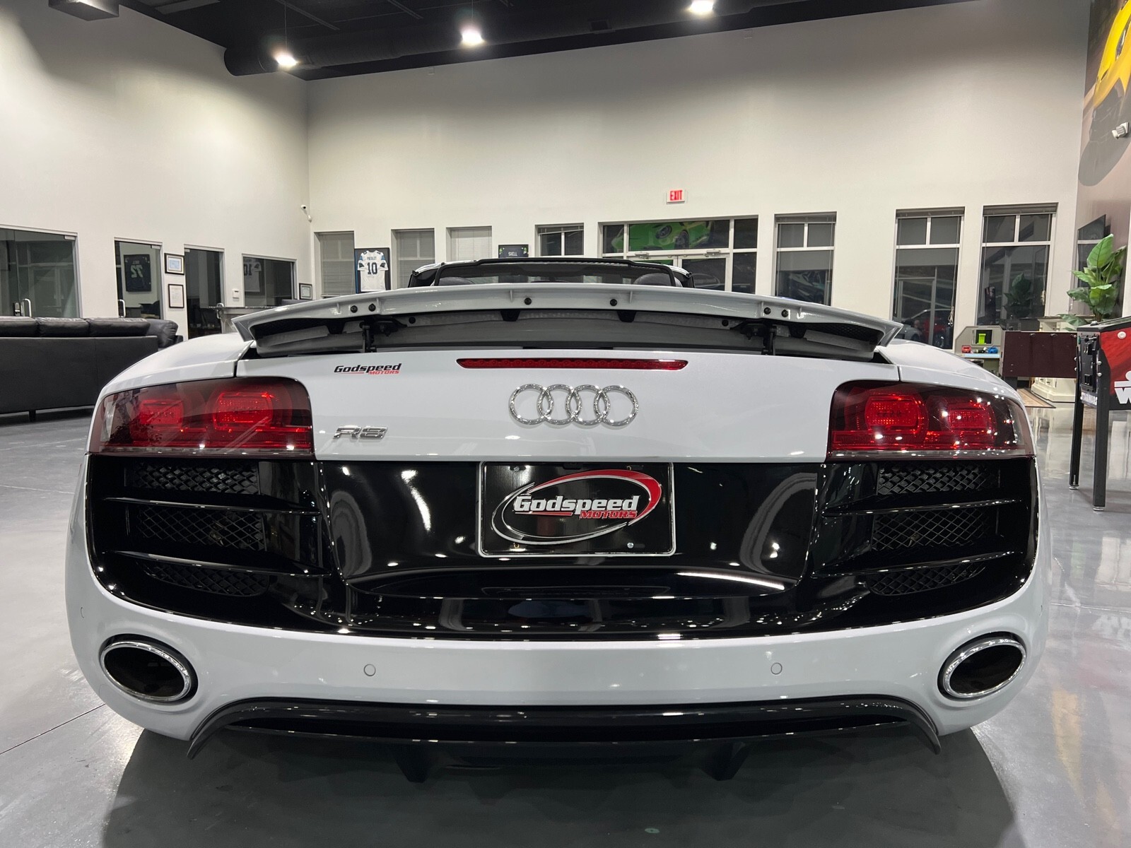5.2L V10 rated at 525 horsepower! Power-operated convertible top, quattro all-wheel drive, Bang & Olfusen audio, SiriusXM capable, Audi Navigation Plus, Bluetooth, heated seats, rearview camera and much more! $174,550 MSRP when new! Since its debut in 2006, the Audi R8 has forged its position among the ranks of Europe's best sportscars. In 2008, Audi released the Spyder version featuring a convertible top and the desirable 5.2L V10. Godspeed Motors is pleased to offer this 2011 Audi R8 Spyder! The open air experience gives the driver and passenger a front row experience to the symphony coming from the rear tailpipes. Screaming all the way up to 8,000 rpm and beyond, the Lamborghini-built engine is rated at 525 horsepower and is capable of propeling this drop-top to 60 mph in less than 4 seconds! That top needs only 19 seconds to go from a fully-closed cabin to a sunny atmosphere. Comfort and convienence was not compromised, as standard options include: quattro all-wheel drive, Bluetooth, cruise control, 10-way power heated seats, rearview camera, AM/FM/CD, and more! If you're looking for an exciting sports car that is easy to live with everyday, this Audi R8 deserves your consideration! Recent service/maintenance include: FRESH OIL CHANGE CARFAX does show a minor accident. To see more details click on the True 360 report towards the bottom of the CARFAX, or the link below view-report/betlXrWUsEtfjBgwUJPJ **Window sticker is a duplicate version, prices and options might vary** MSRP $172,800.00 INSTALLED OPTIONS [T9PA] Ibis White black soft top $0 [JN] Black, Leather Seating Surfaces $0 [PQK] 19 5 Arm Double Spoke Titanium Finish Forged Aluminum Alloy Wheels P235/35R19 front & P305/30R19 rear summer performance tires $500 [PNC] Audi Navigation System Plus W/Audi Music Interface color screen $0 Original Shipping Charge $1,250 RETAIL PRICE (ORIGINALLY NEW) $174,550.00