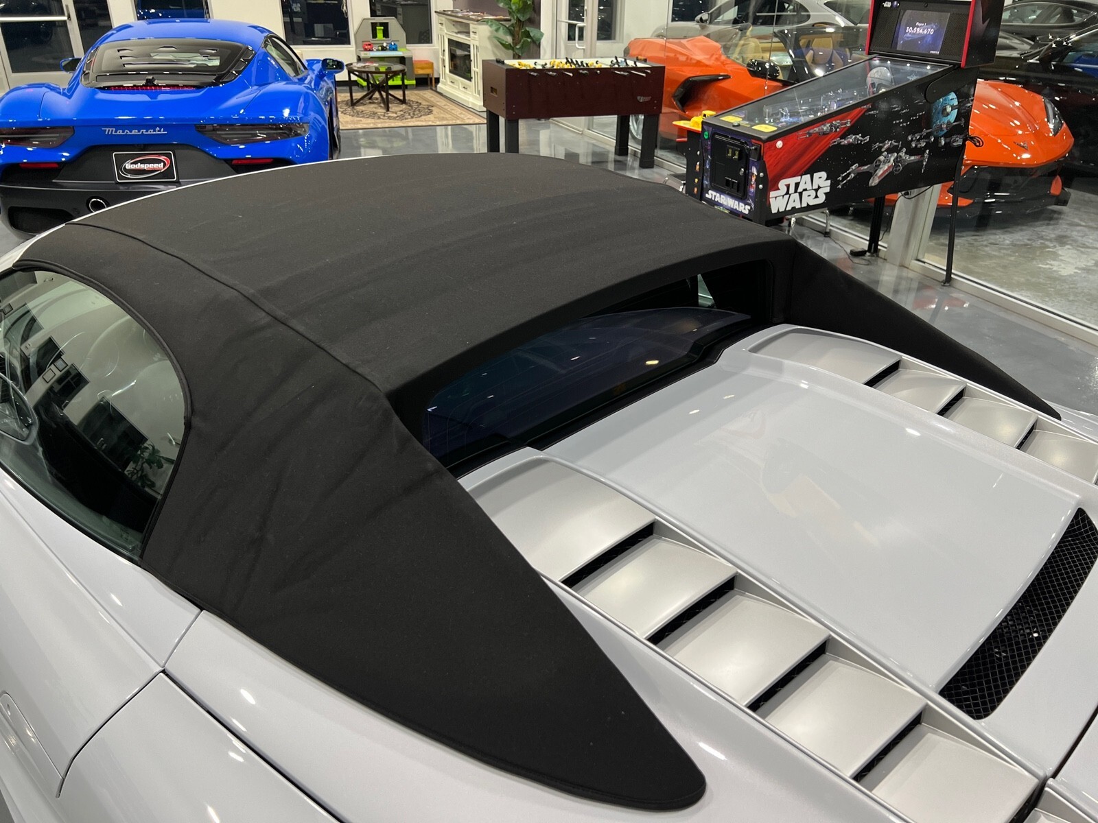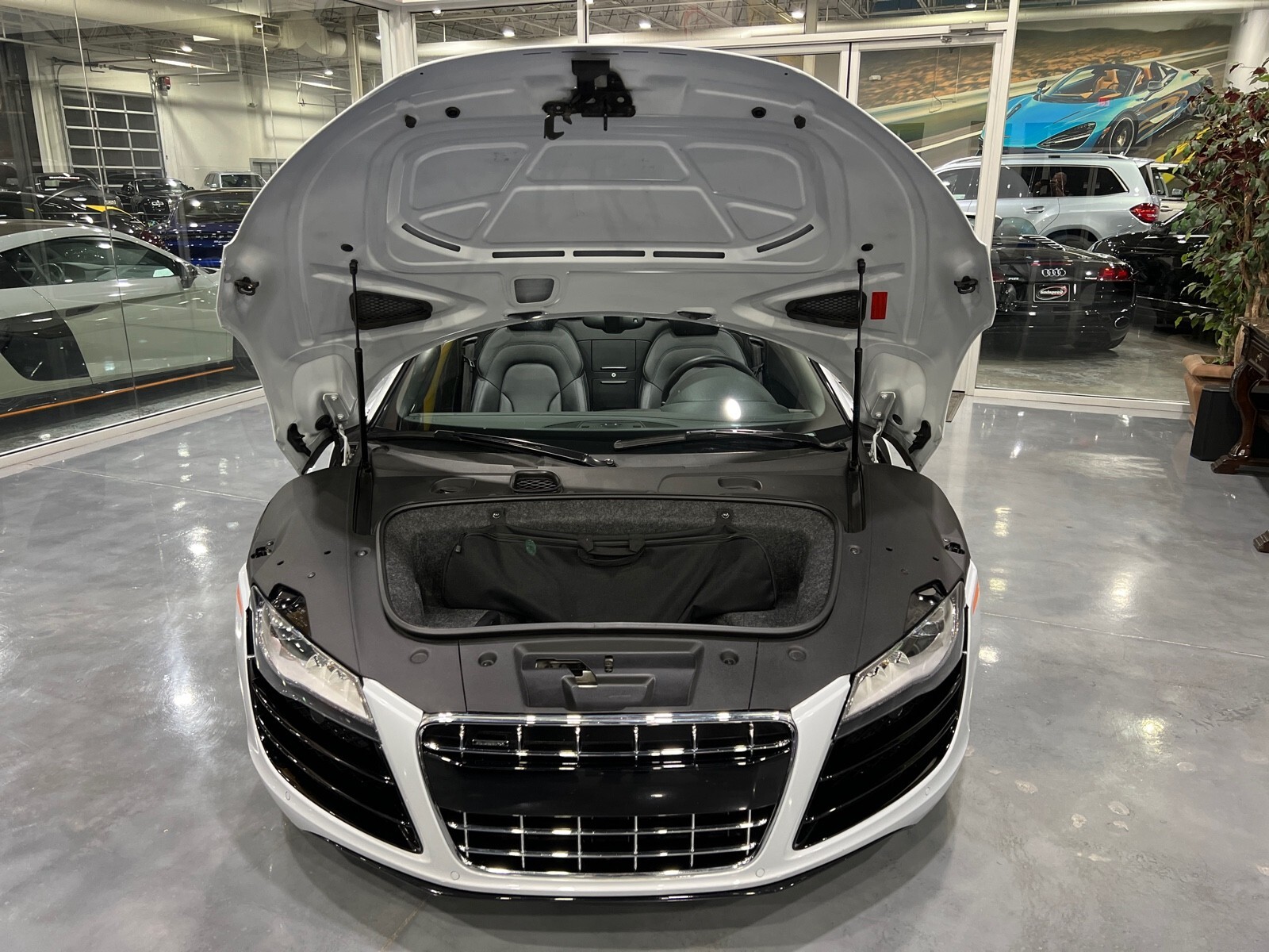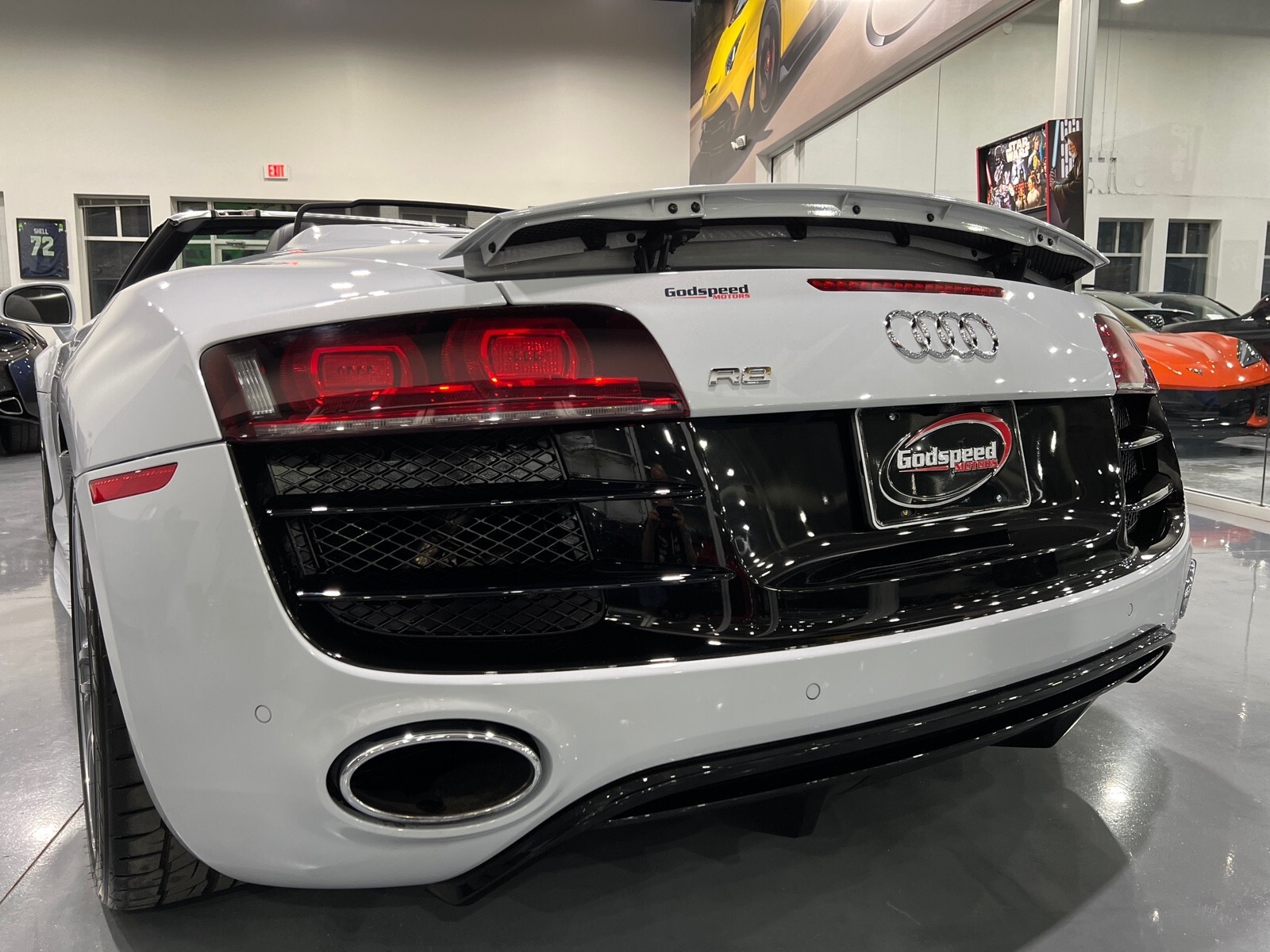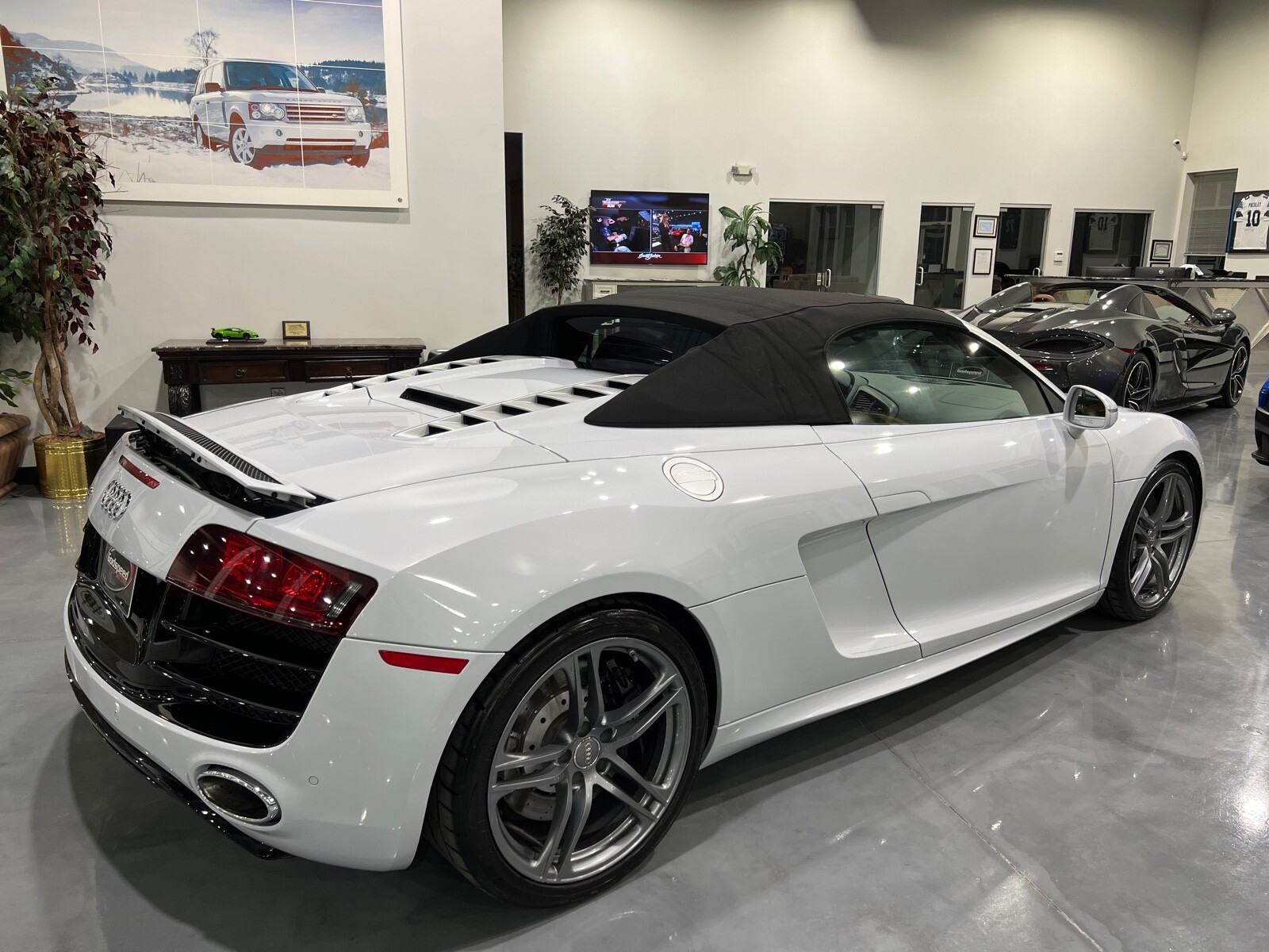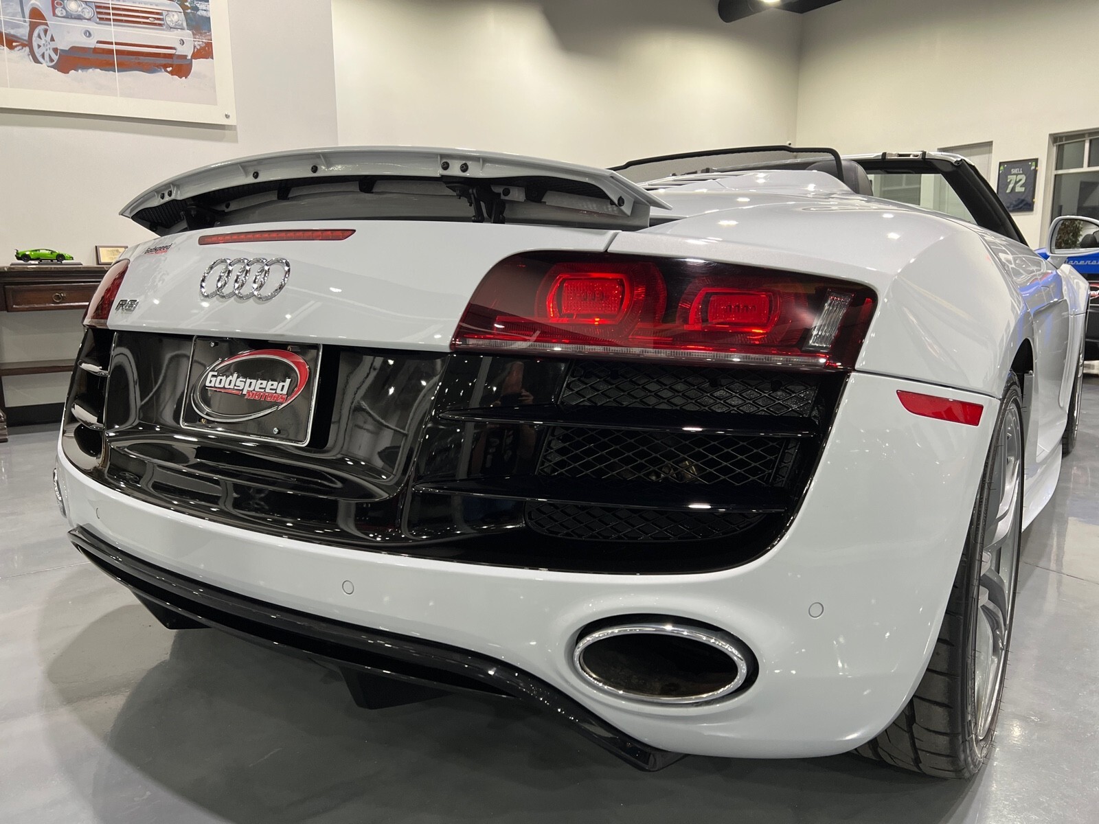 5.2L V10 rated at 525 horsepower! Power-operated convertible top, quattro all-wheel drive, Bang & Olfusen audio, SiriusXM capable, Audi Navigation Plus, Bluetooth, heated seats, rearview camera and much more! $174,550 MSRP when new! Since its debut in 2006, the Audi R8 has forged its position among the ranks of Europe's best sportscars. In 2008, Audi released the Spyder version featuring a convertible top and the desirable 5.2L V10. Godspeed Motors is pleased to offer this 2011 Audi R8 Spyder! The open air experience gives the driver and passenger a front row experience to the symphony coming from the rear tailpipes. Screaming all the way up to 8,000 rpm and beyond, the Lamborghini-built engine is rated at 525 horsepower and is capable of propeling this drop-top to 60 mph in less than 4 seconds! That top needs only 19 seconds to go from a fully-closed cabin to a sunny atmosphere. Comfort and convienence was not compromised, as standard options include: quattro all-wheel drive, Bluetooth, cruise control, 10-way power heated seats, rearview camera, AM/FM/CD, and more! If you're looking for an exciting sports car that is easy to live with everyday, this Audi R8 deserves your consideration! Recent service/maintenance include: FRESH OIL CHANGE CARFAX does show a minor accident. To see more details click on the True 360 report towards the bottom of the CARFAX, or the link below view-report/betlXrWUsEtfjBgwUJPJ **Window sticker is a duplicate version, prices and options might vary** MSRP $172,800.00 INSTALLED OPTIONS [T9PA] Ibis White black soft top $0 [JN] Black, Leather Seating Surfaces $0 [PQK] 19 5 Arm Double Spoke Titanium Finish Forged Aluminum Alloy Wheels P235/35R19 front & P305/30R19 rear summer performance tires $500 [PNC] Audi Navigation System Plus W/Audi Music Interface color screen $0 Original Shipping Charge $1,250 RETAIL PRICE (ORIGINALLY NEW) $174,550.00