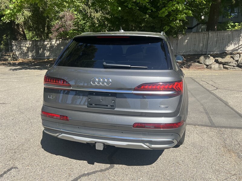 INSTALLED FEATURES: Air filtration, Front air conditioning: automatic climate control, Front air conditioning zones: dual, Rear air conditioning: automatic climate control / independently controlled, Rear air conditioning zones: single, Airbag deactivation: occupant sensing passenger, Front airbags: dual, Side airbags: front, Side curtain airbags: front / rear / third row, Antenna type: diversity / mast, Auxiliary audio input: Bluetooth / USB / iPod/iPhone / jack / memory card slot, Internet radio app: iHeartRadio, Radio: AM/FM / HD radio / touch screen display / voice operated, Radio data system, Satellite radio: SiriusXM, Speed sensitive volume control, Subwoofer: 1, Total speakers: 9, Watts: 180, ABS: 4-wheel, Brake drying, Braking assist, Electronic brakeforce distribution, Electronic parking brake: auto off, Emergency braking preparation, Front brake diameter: 14.8, Front brake type: ventilated disc, Power brakes, Rear brake diameter: 13.8, Rear brake type: ventilated disc, Regenerative braking system, Armrests: rear center with cupholders / rear folding, Cargo area floor mat: carpet, Center console trim: aluminum / wood, Dash trim: wood, Door trim: wood, Floor mat material: carpet, Floor material: carpet, Floor mats: front / rear, Interior accents: aluminum / woodgrain, Shift knob trim: alloy / leather, Steering wheel trim: leather, Assist handle: front / rear, Cargo area light, Center console: front console with armrest and storage, Cruise control, Cupholders: front / rear / third row, Easy entry: manual rear seat, Memorized settings: 2 driver / driver seat / side mirrors / steering wheel, Multi-function remote: panic alarm / proximity entry system / trunk release, One-touch windows: 4, Overhead console: front, Power outlet(s): 12V cargo area / 12V front / 12V rear, Power steering: variable/speed-proportional, Power windows: lockout button, Push-button start, Reading lights: front / rear, Rearview mirror: auto-dimming, Steering wheel: power tilt and telescopic, Steering wheel mounted controls: audio / cruise control / multi-function / paddle shifter / phone / voice control, Storage: cargo tie-down anchors and hooks / cooled compartment / door pockets / front seatback, Touch-sensitive controls, Universal remote transmitter: Homelink - garage door opener, Vanity mirrors: dual illuminating, 4WD type: full time, Axle ratio: 3.20, Drive mode selector, Alternator: 180 amps, Auto start/stop, Battery: lithium ion / maintenance-free, Battery rating: 420 CCA, Battery saver, Mild hybrid system, Body side moldings: chrome, Bumper detail: rear protector, Door handle color: body-color, Exhaust: dual tip / integrated, Exhaust tip color: metallic, Fender lip moldings: body-color, Front bumper color: body-color, Grille color: chrome, Mirror color: body-color, Rear bumper color: body-color, Rear spoiler: roofline, Rear spoiler color: body-color, Rear trunk/liftgate: liftgate / power operated / sensor-activated, Window trim: aluminum, Starter type: starter/belt alternator, Connected in-car apps: Amazon Alexa / Google POIs / Google search, Infotainment: Audi MMI Connect, Infotainment screen size: 8.6 in. and 10.1 in. (dual), Smartphone integration: Android Auto / wireless Apple CarPlay, Clock, Compass, Customizable instrument cluster, Digital odometer, External temperature display, Fuel economy display: MPG / range, Gauge: tachometer, Instrument cluster screen size: 12.3 in., Multi-function display, Trip odometer, Warnings and reminders: coolant temperature warning / lamp failure / low fuel level / low oil pressure / low washer fluid / maintenance due, Daytime running lights: LED, Exterior entry lights: approach lamps, Headlights: LED / auto delay off / auto high beam dimmer / auto on/off / self-leveling / wiper activated, Taillights: LED, Side mirror adjustments: power / power folding / reverse gear tilt, Side mirrors: heated / integrated turn signals, Moonroof / Sunroof: anti-trapping / one-touch open/close / power panoramic / power sunshade / tilt/slide, Roof rails: aluminum, Automatic emergency braking: front / front pedestrian / rear, Automatic hazard warning lights, Camera system: rearview, Child safety door locks, Child seat anchors: LATCH system, Crumple zones: front / rear, Impact sensor: door unlock / fuel cut-off / post-collision safety system, Lane deviation sensors, Parking sensors: front / rear, Pre-collision warning system: audible warning / pedestrian detection / visual warning, Rearview monitor: in dash, Emergency locking retractors: front / rear / third row, Front seatbelts: 3-point, Rear seatbelts: 3-point, Seatbelt force limiters: front, Seatbelt pretensioners: front, Seatbelt warning sensor: front, Third row seatbelts: 3-point, Driver seat: heated, Driver seat power adjustments: 4-way power lumbar / height / reclining / 12, Front headrests: adjustable / 2, Front seat type: bucket, Passenger seat: heated, Passenger seat power adjustments: height / reclining / 8, Rear headrests: adjustable / 3, Rear seat: sliding, Rear seat folding: flat / split, Rear seat manual adjustments: reclining, Rear seat type: 35-30-35 split bench, Third row headrests: adjustable / 2, Third row seat folding: flat / power / split, Third row seat type: 50-50 split bench, Upholstery: leather, Anti-theft system: alarm / anti-tow sensor / interior motion sensor / perimeter alarm / vehicle immobilizer, Power door locks: anti-lockout / auto-locking, Hill holder control, Off-road driving assist: hill descent, Stability control, Traction control, Steering ratio: 15.8, Front shock type: gas, Front spring type: coil, Front stabilizer bar, Front struts, Front suspension classification: independent, Front suspension type: multi-link, Rear shock type: gas, Rear spring type: coil, Rear stabilizer bar, Rear suspension classification: independent, Rear suspension type: multi-link, Driver assistance app: roadside assistance, Electronic messaging assistance: voice operated / with read function, Hands-free phone call integrat