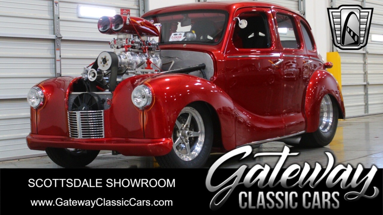 Gateway Classic Cars of Scottsdale is honored to present for sale, on consignment, this utterly wild 1951 Austin Devon. Check out this stunning 1951 Austin Devon A40 Pro Street, a true classic that combines timeless design with modern performance. This beauty is dressed in an eye-catching 12-layer Emron Candy Apple Red exterior color, with a reported 8 coats of color and 4 coats of clear, guaranteed to turn heads wherever you go. The red and black interior does a great job of complementing the exterior, creating a harmonious and stylish look that is sure to impress.