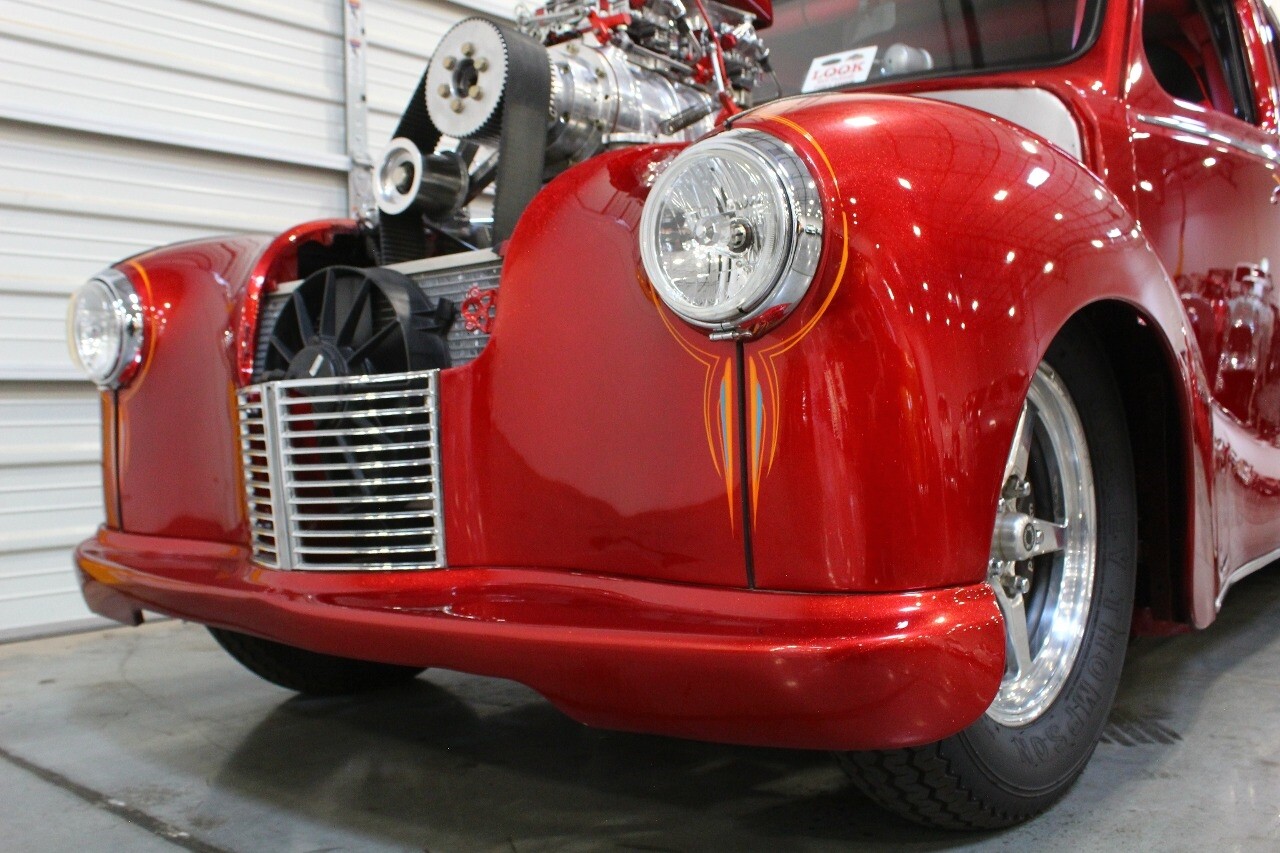 Under the hood, you'll find a powerful 355 CID Roller Motor engine that delivers an exhilarating driving experience. Paired with a Full Race Power Glide transmission, this Austin Devon A40 Pro Street offers smooth and responsive handling, making it a joy to drive on the track, city streets and open highways.
