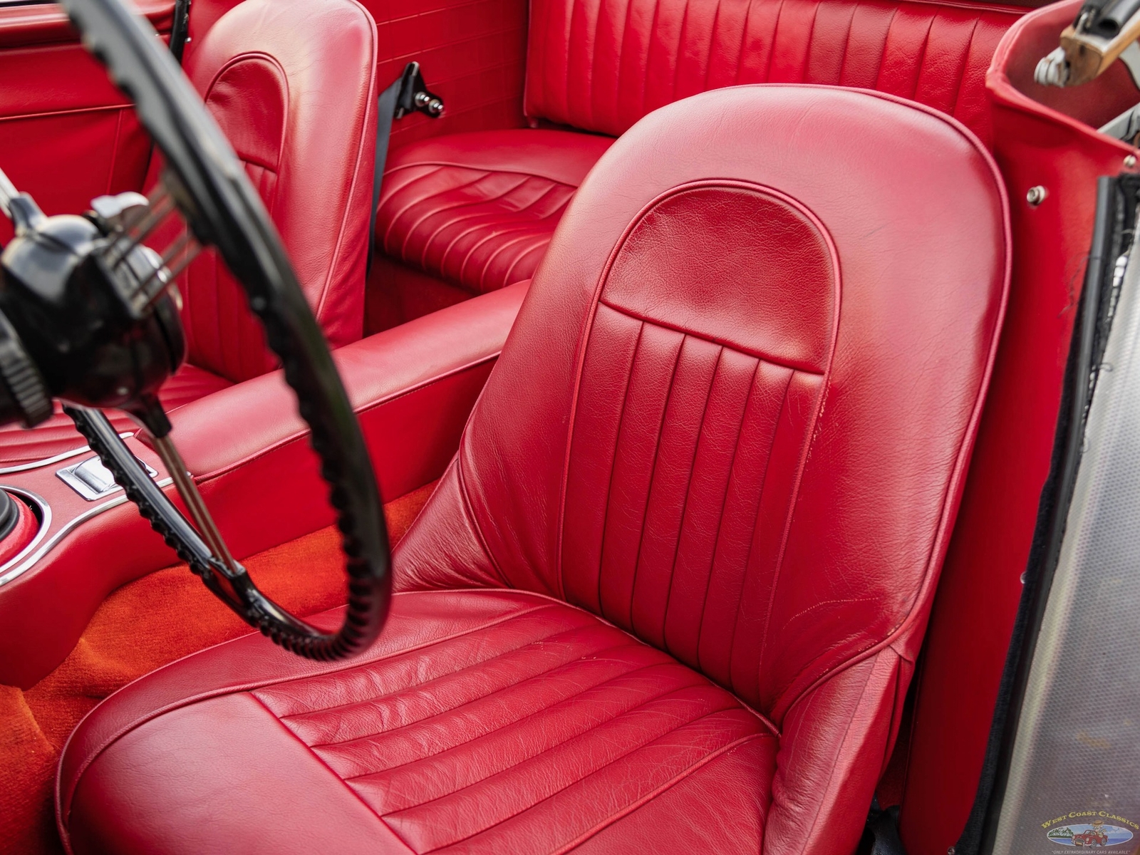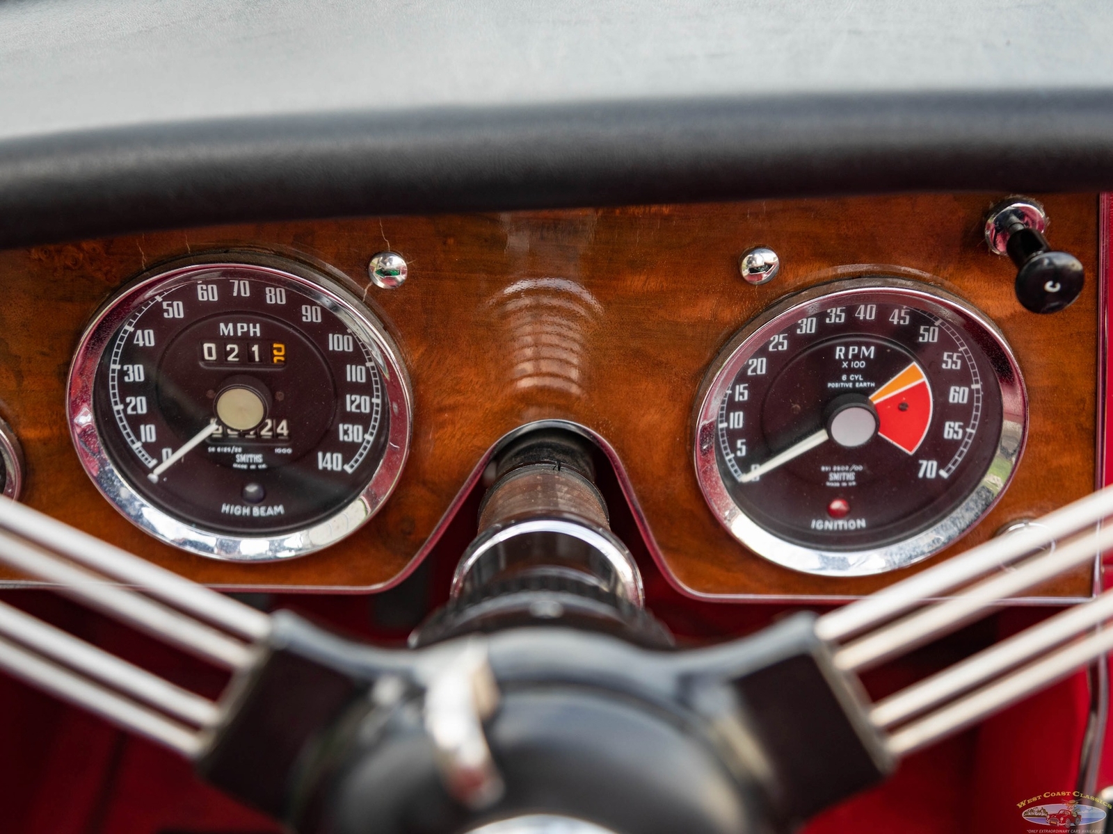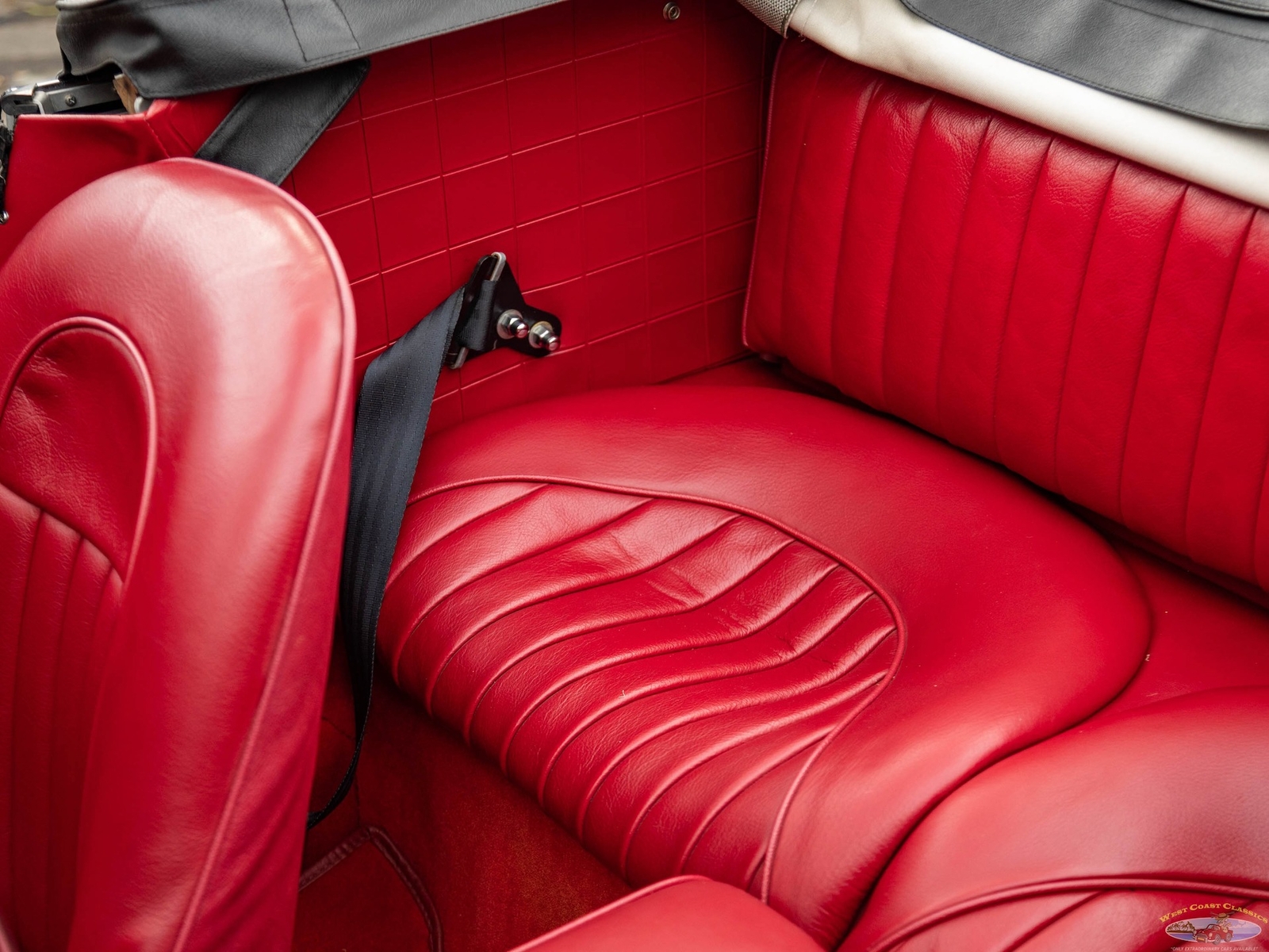 The car looks extremely impressive and is certainly of 'show quality' presented in this highly striking color combination with completely original specifications throughout including the original 'Smiths' gauges which are all in correct working order! The matching Black soft top is also obviously in as new shape, both functionally and otherwise and the cars chrome wire 'knock off' wheels are all in as new condition also with no curb rash or marks and the spare wire wheel and knock off mallet are in their right places in the trunk!