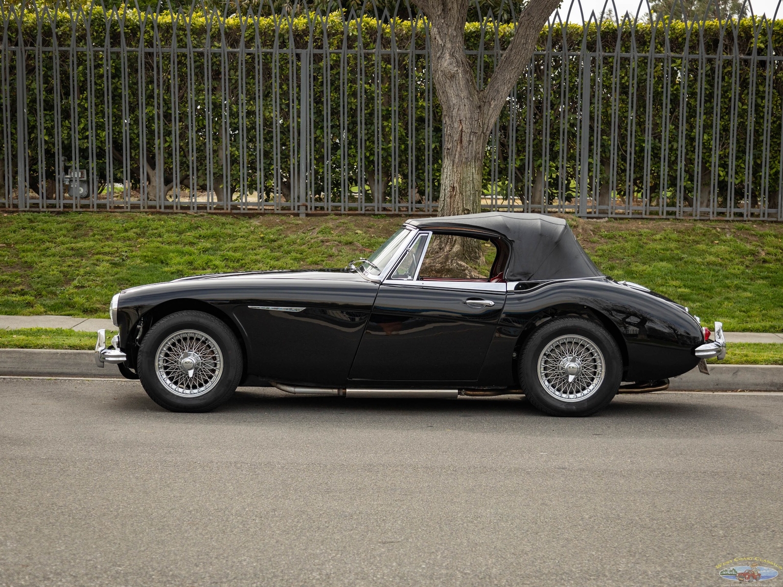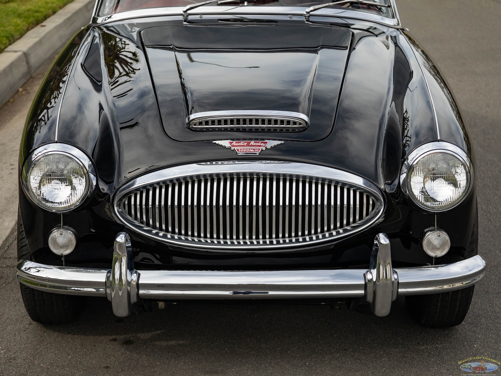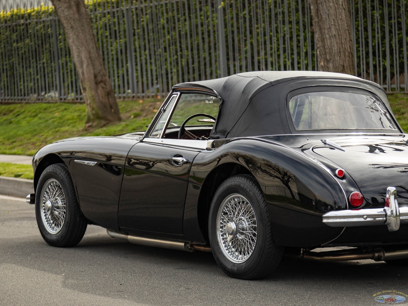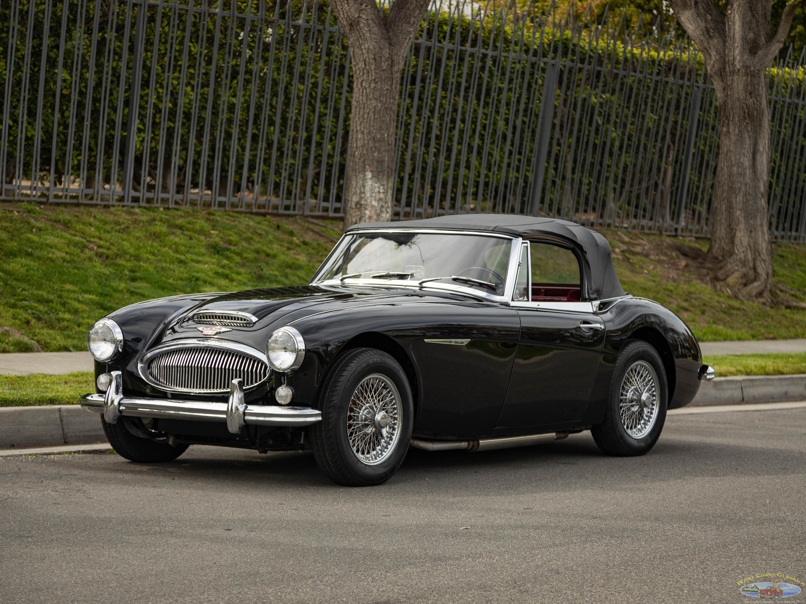 According to its accompanying BMIHT Certificate, this Austin-Healey 3000 was built between 23 April and 5 May 1964. It was dispatched to New Orleans, Louisiana, on 27 May and was equipped with overdrive, wire wheels wrapped with whitewall tires, a heater, adjustable steering wheel, and black tonneau cover. Presented today in its stunning and original color combination of Black with Red interior, this car was the subject of a professional frame-off restoration in 2004 and has been well maintained since.