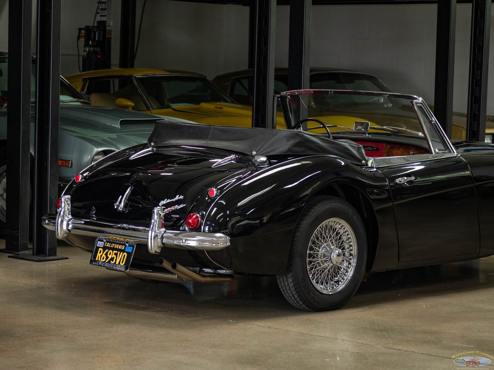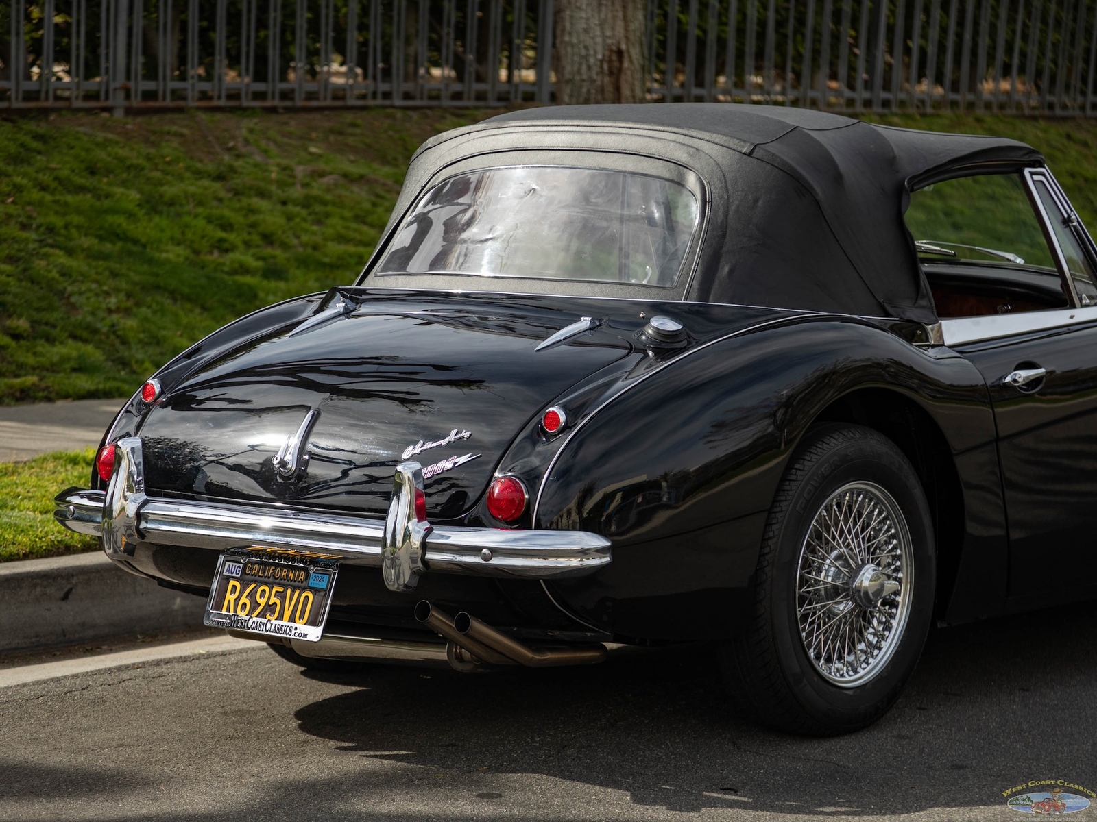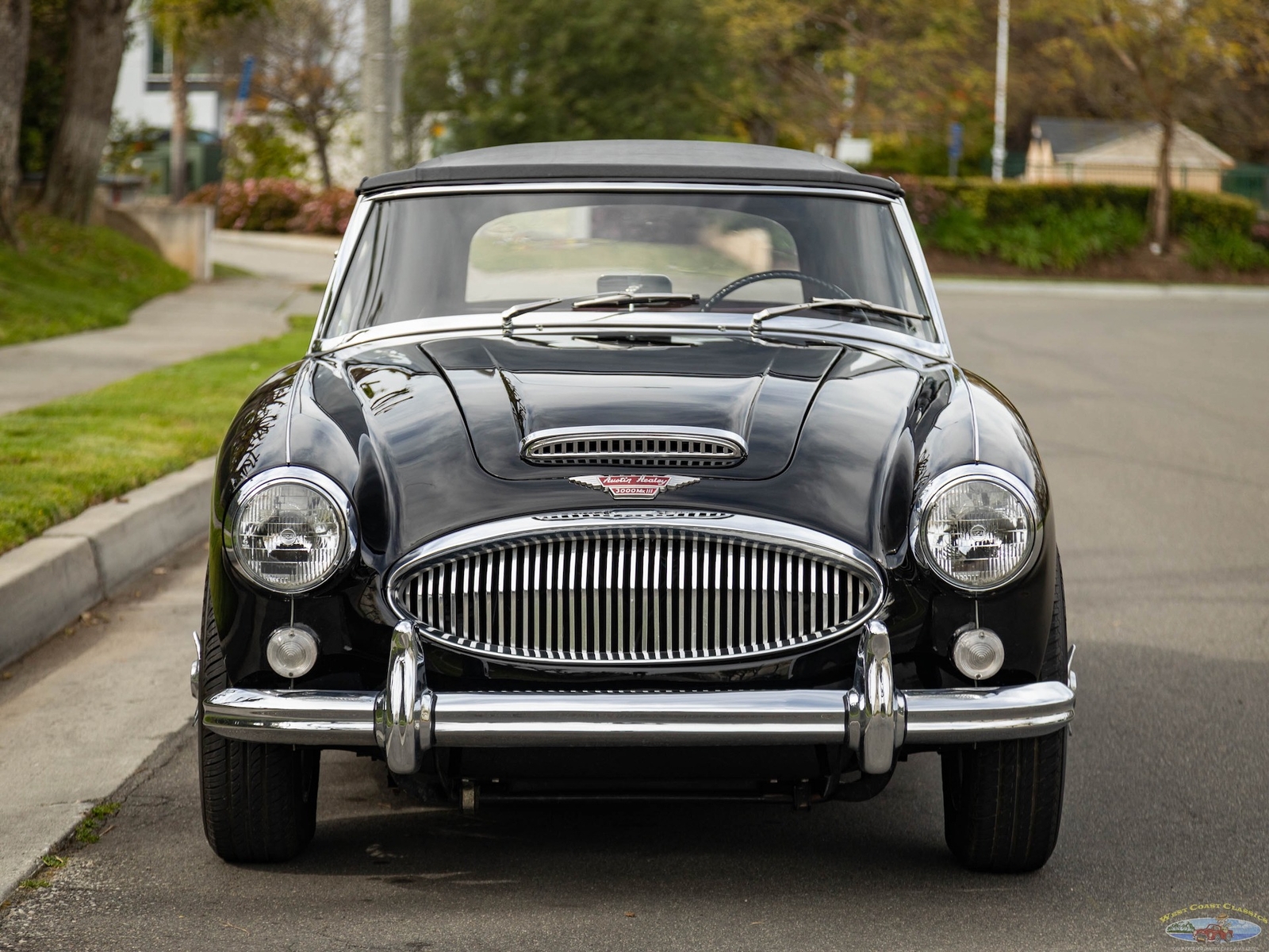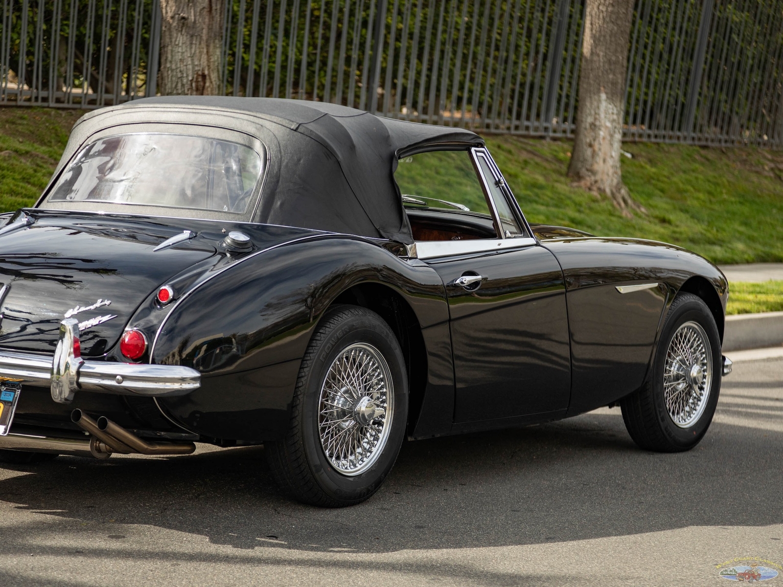 According to its accompanying BMIHT Certificate, this Austin-Healey 3000 was built between 23 April and 5 May 1964. It was dispatched to New Orleans, Louisiana, on 27 May and was equipped with overdrive, wire wheels wrapped with whitewall tires, a heater, adjustable steering wheel, and black tonneau cover. Presented today in its stunning and original color combination of Black with Red interior, this car was the subject of a professional frame-off restoration in 2004 and has been well maintained since.