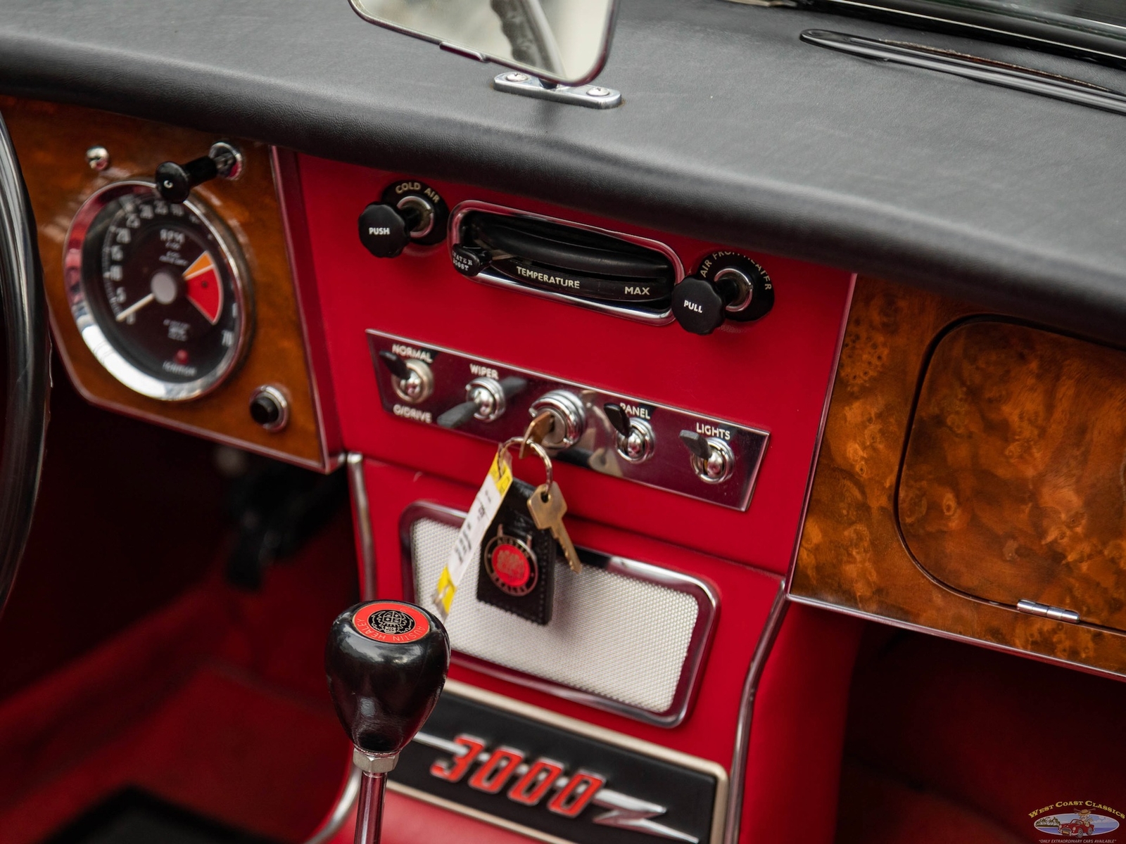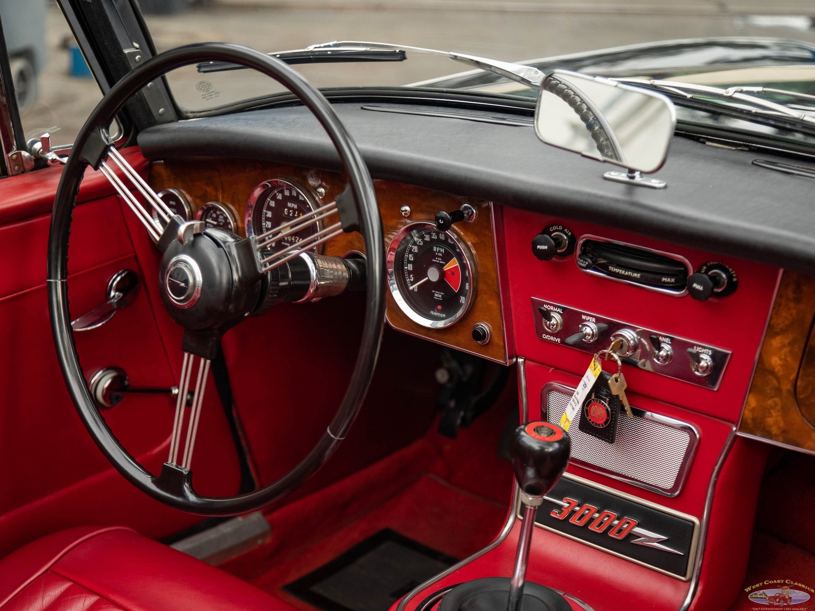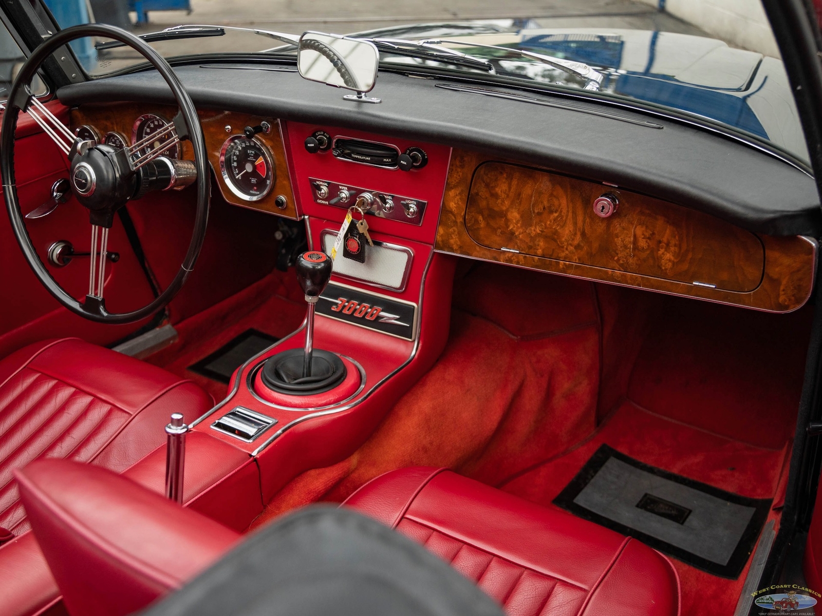 The Austin Healey 3000 was the final development of the Austin Healey theme with the original layout of the legendary 100-6, one of the most famous and perfect of sports car shapes ever created, basically retained but with an enlarged engine capacity of 2.9L compared to the earlier 2.6L engine, front disc brakes and a plush interior along with creature comforts such as a curved windshield, a proper fully convertible top, wind up windows, a proper fold down hood, push button door handles and even a lockable glove box!