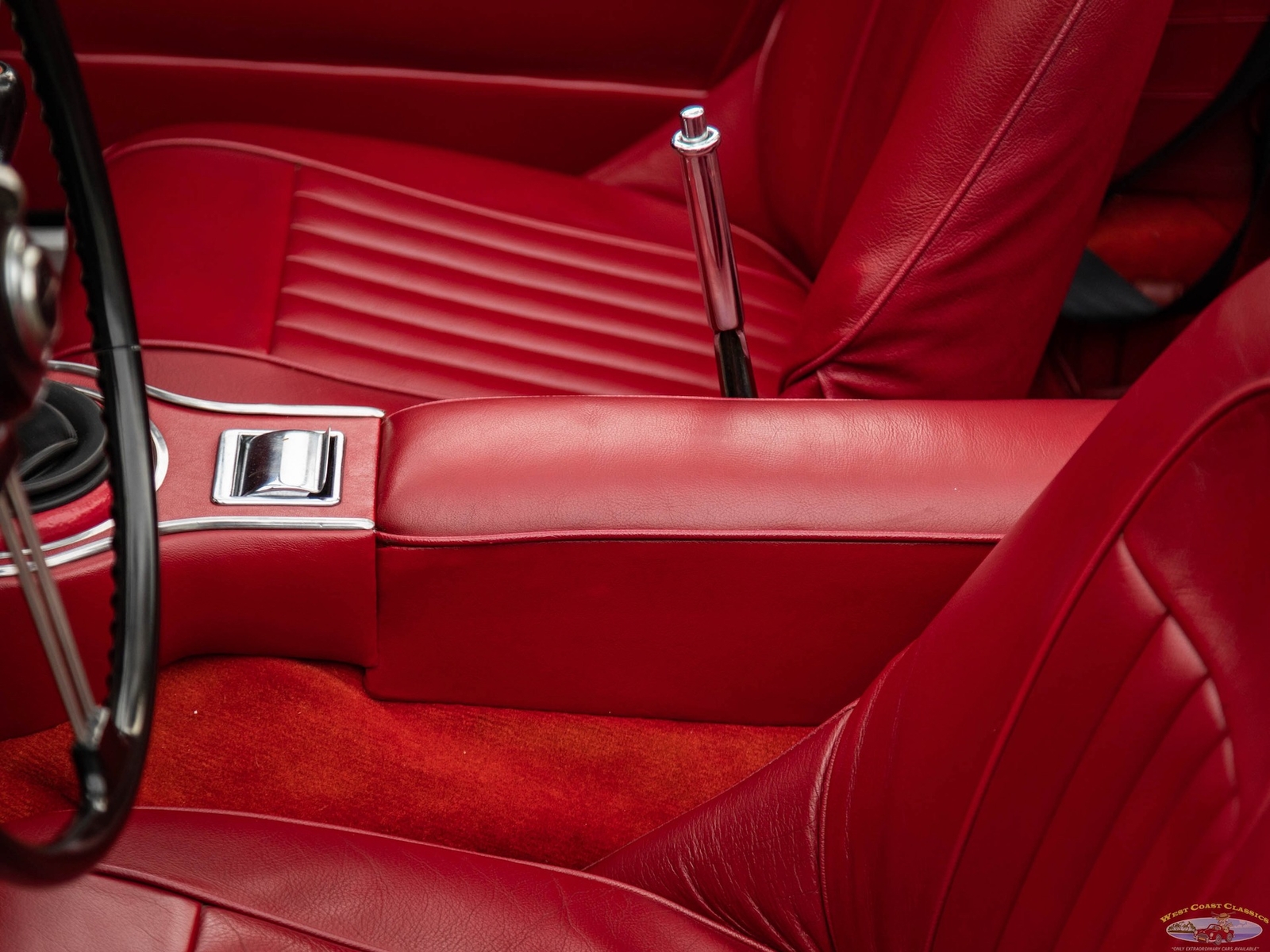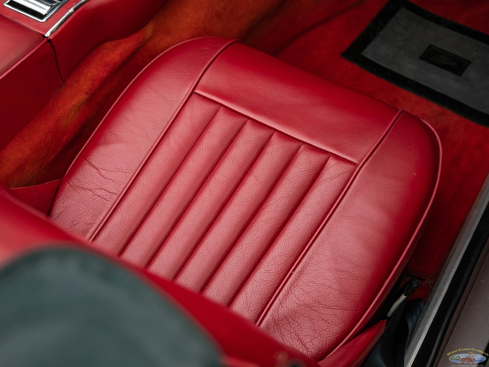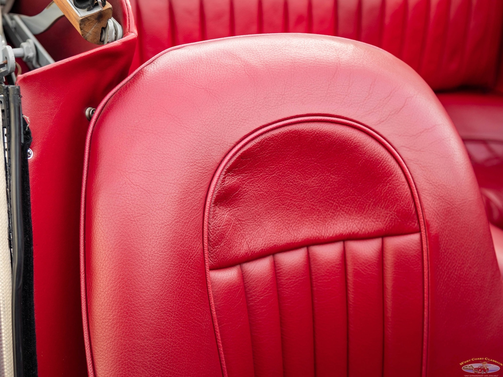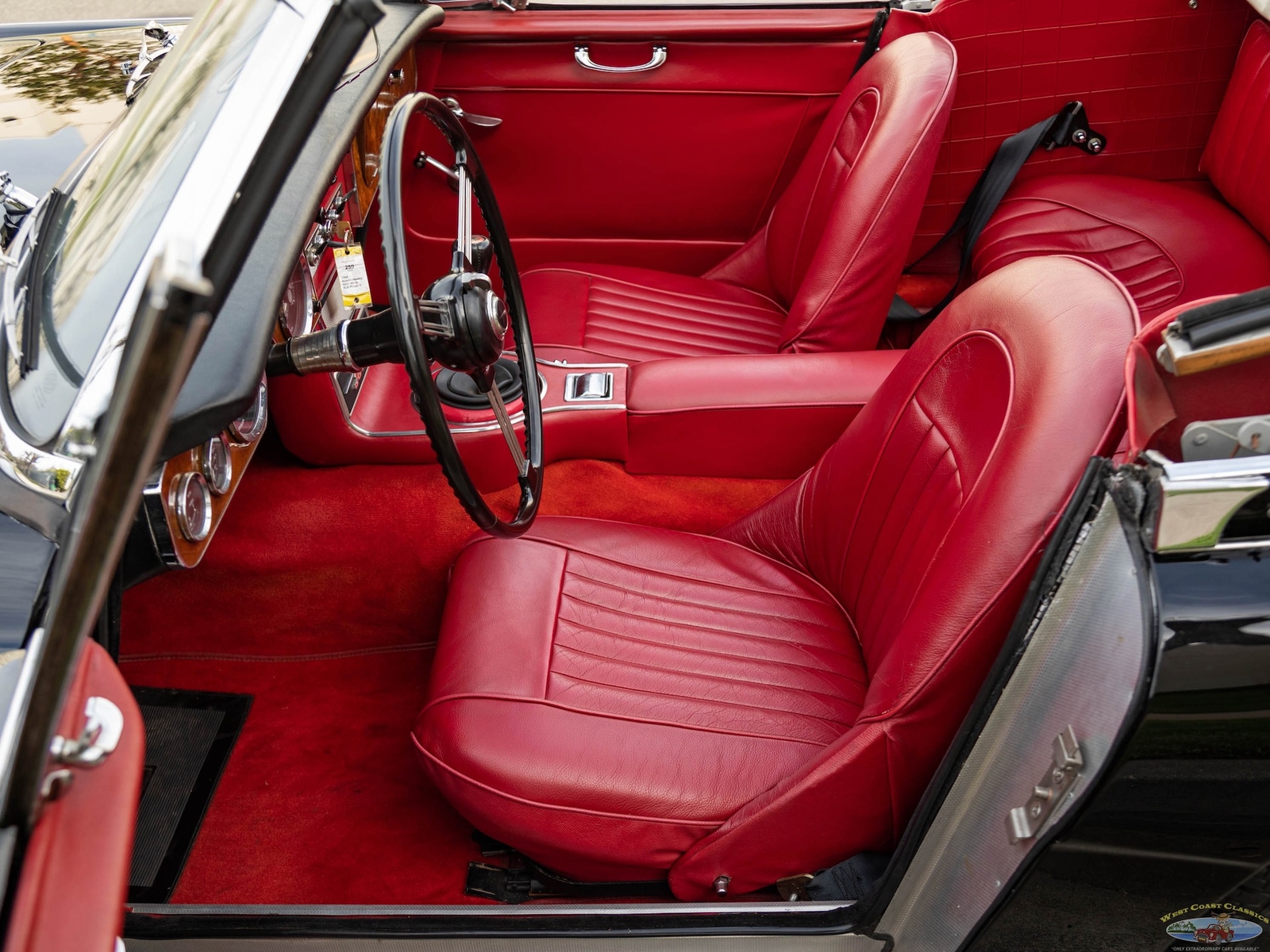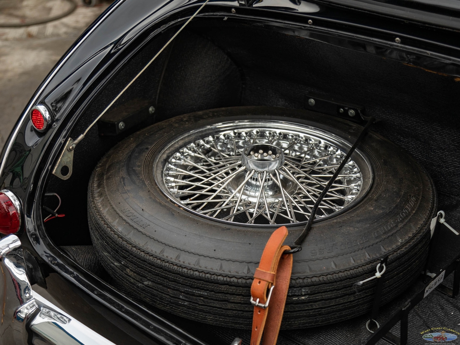 This particular example was obviously always garaged and has no signs of body damage or rust and was recently frame off restored in its very striking 'Black over Red' color combination with a matching all new leather interior and apart from its already striking appearance, also boasts a lovely walnut dash and to top it off 4 x 72 spoke Dayton chrome knock off wire wheels with a spare wire wheel and mallet in the trunk!