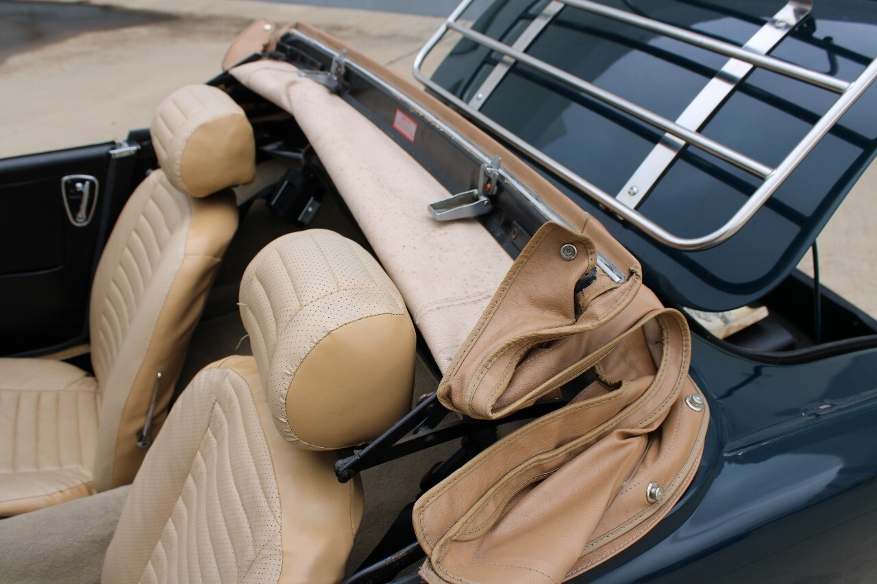 Having the manual convertible top enhances the car's versatility and appeal, offering the freedom to enjoy open-air drives on sunny days. The car is also equipped with radial tires, a feature that not only adds to its retro appeal but also lends an element of modern practicality. For your safety, seatbelts have been installed, underscoring the careful balance between maintaining the car's historical integrity and adhering to contemporary safety standards.