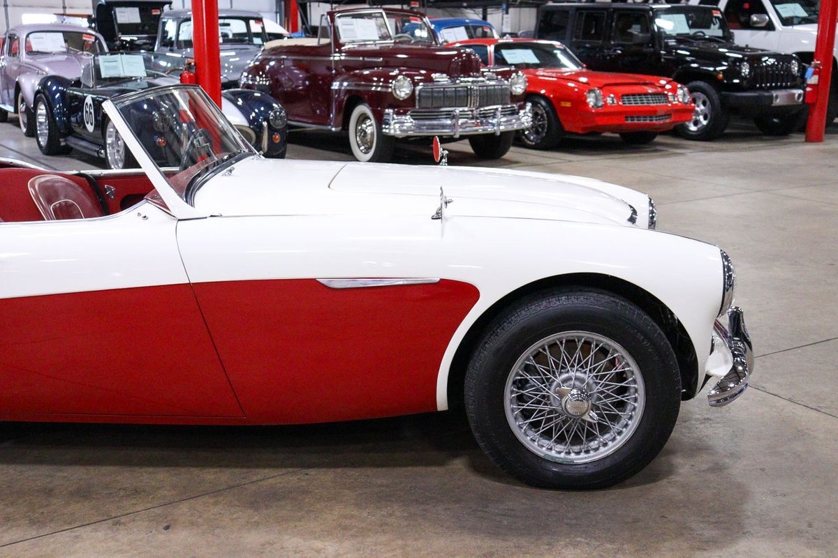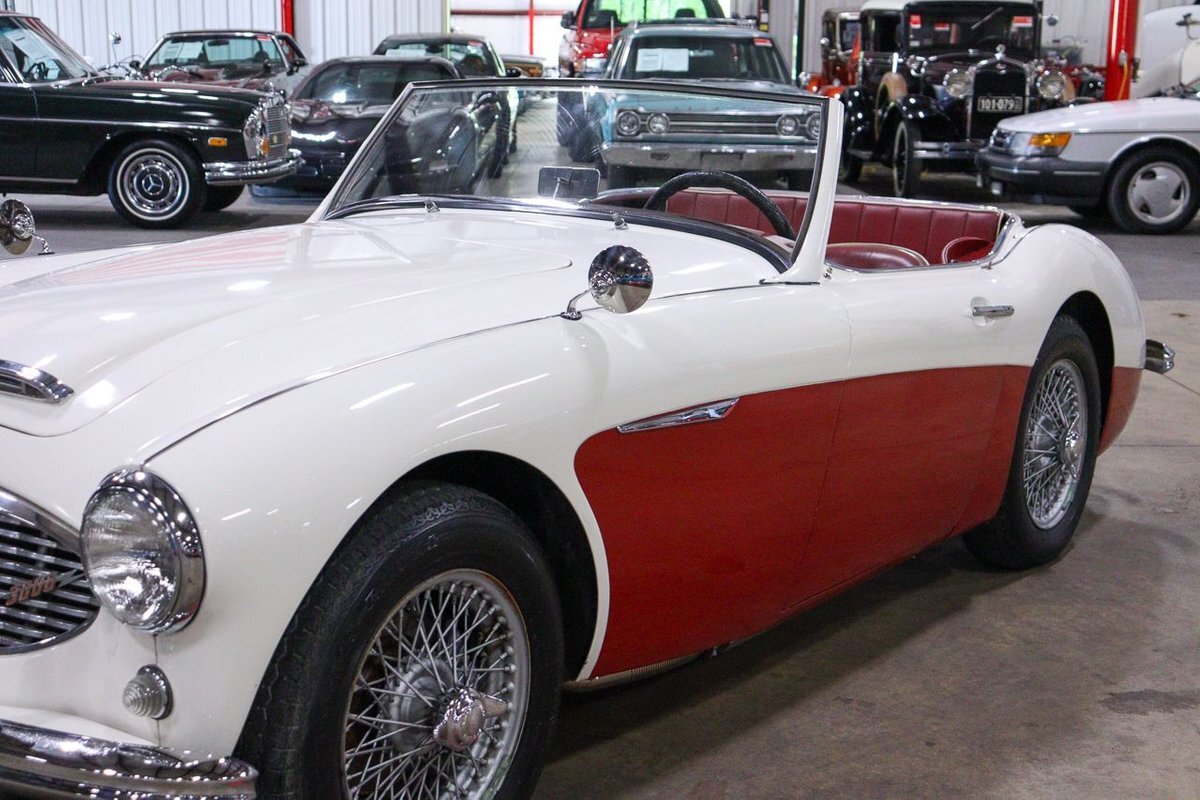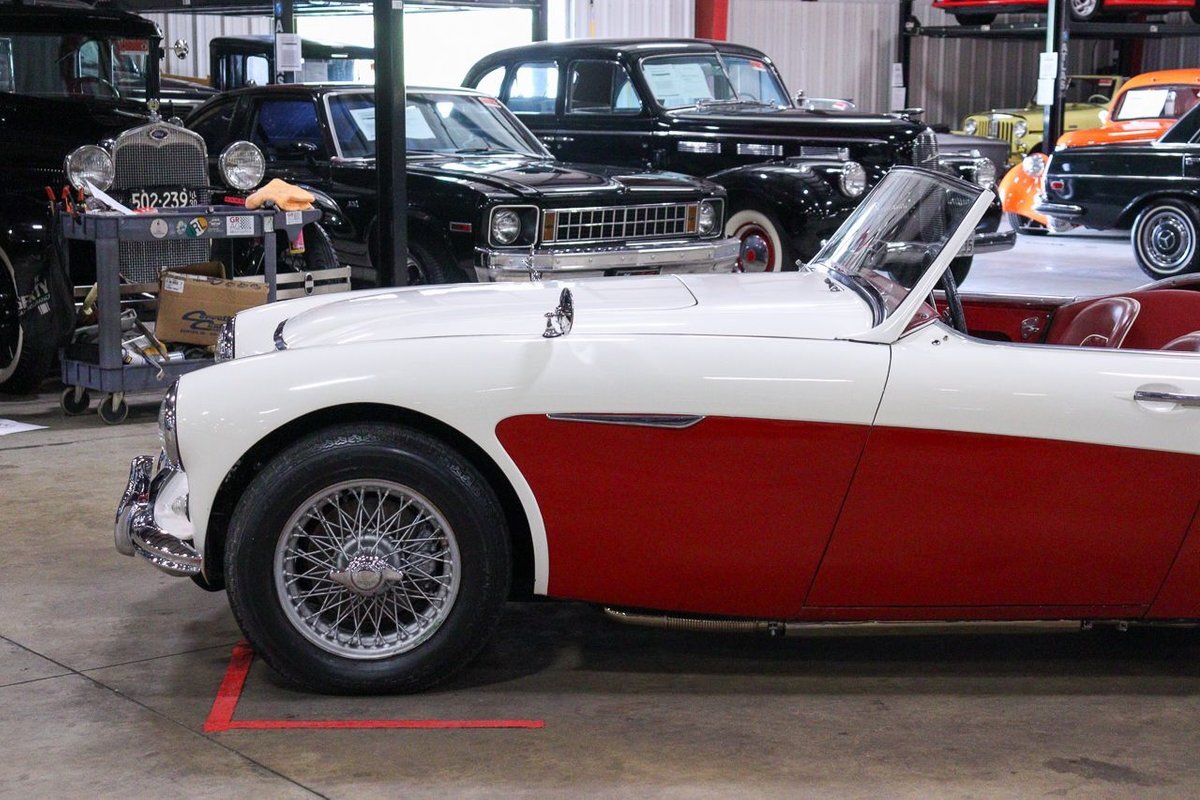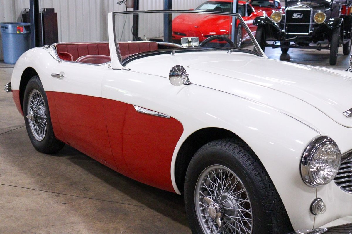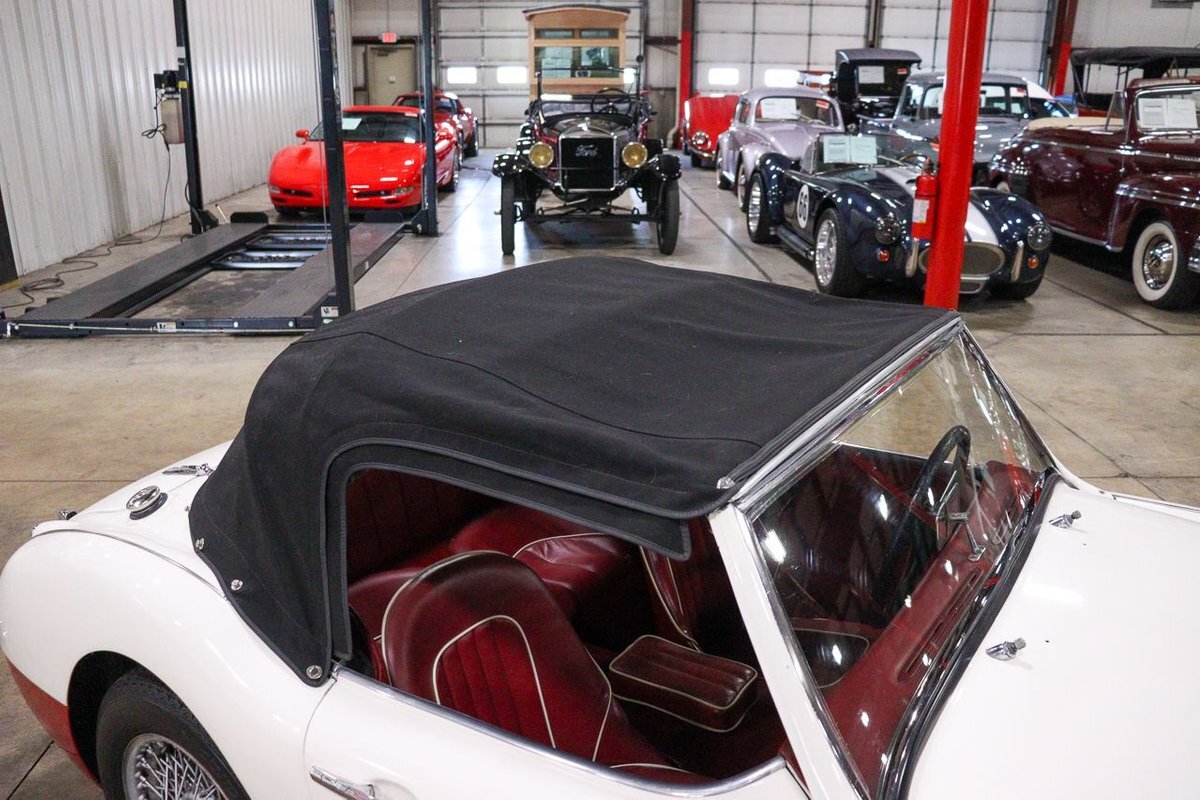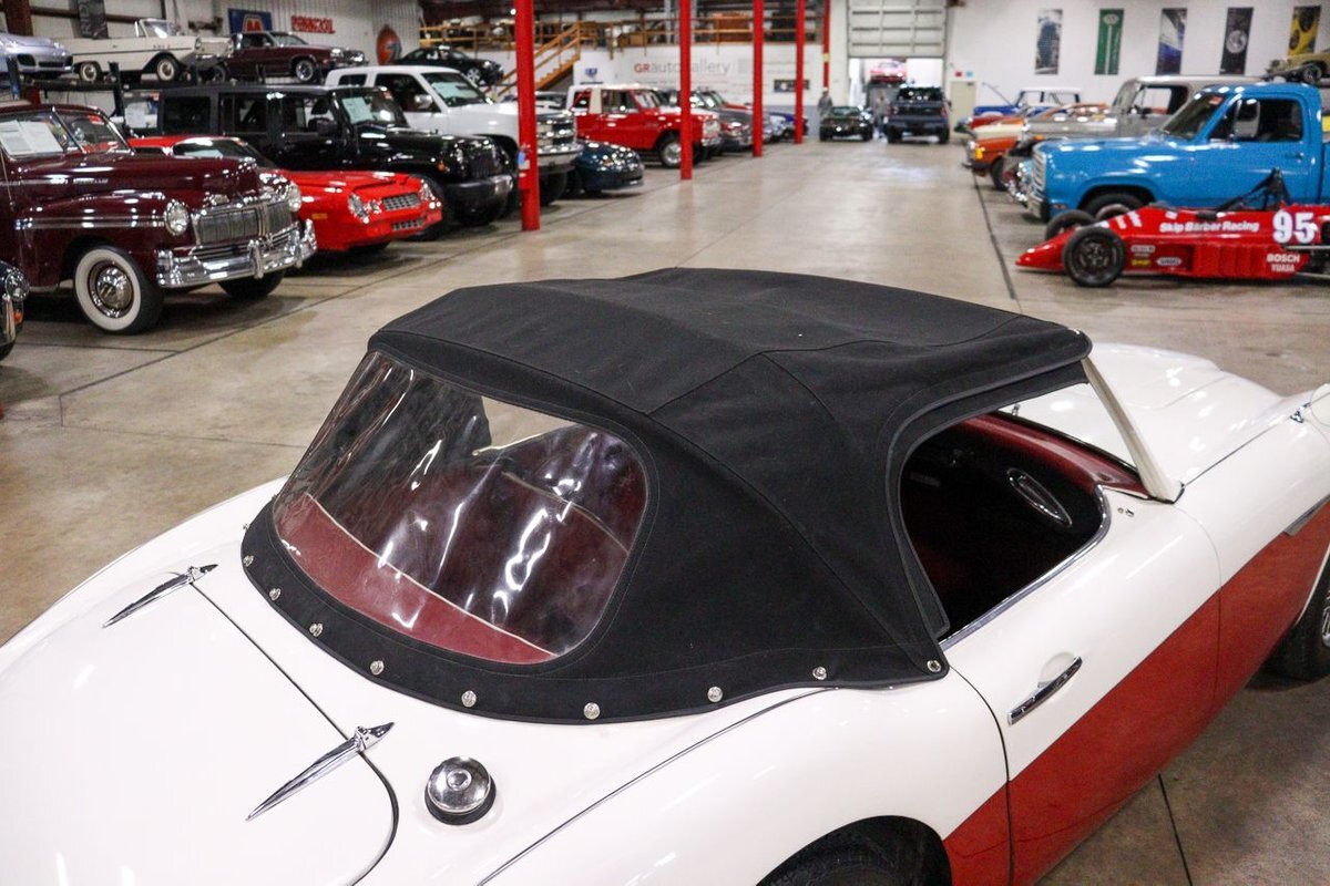 GR Auto Gallery is pleased to offer an iconic British Roadster. This 1961 Austin Healey 3000 Roaster is powered by its 3.0 liter overhead cam inline six cylinder engine fed by dual SU carbs, 4 speed manual transmission with overdrive and rear wheel drive. It is presented in Old English White with Tartan Red coves, over a red interior with white piping and black canvas top. Highlights include: Knock off wire wheels, original "banjo" style steering wheel, original gauges, bent shifter, heater, full tonneau cover, newer stainless steel exhaust, newer fuel tank, etc.