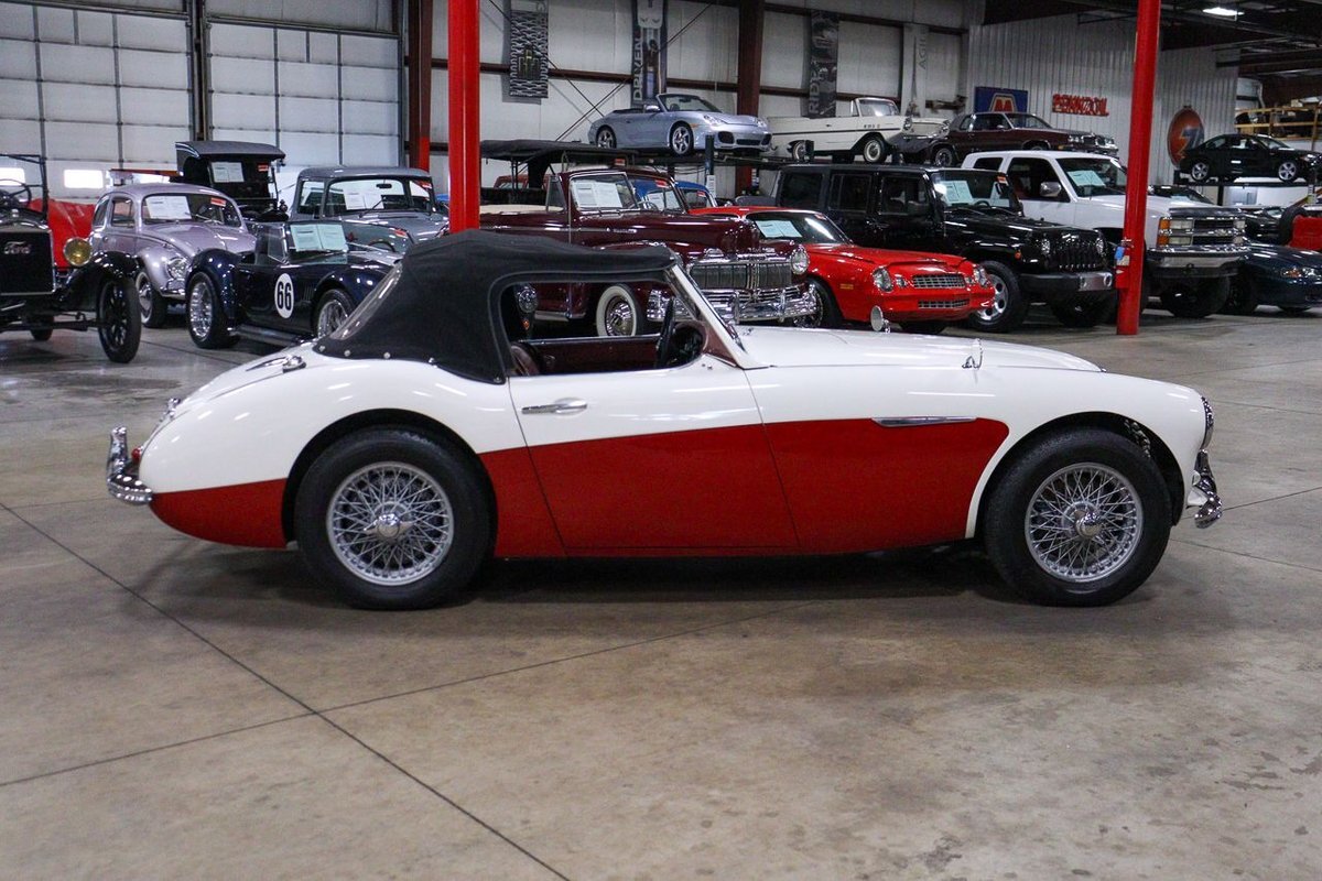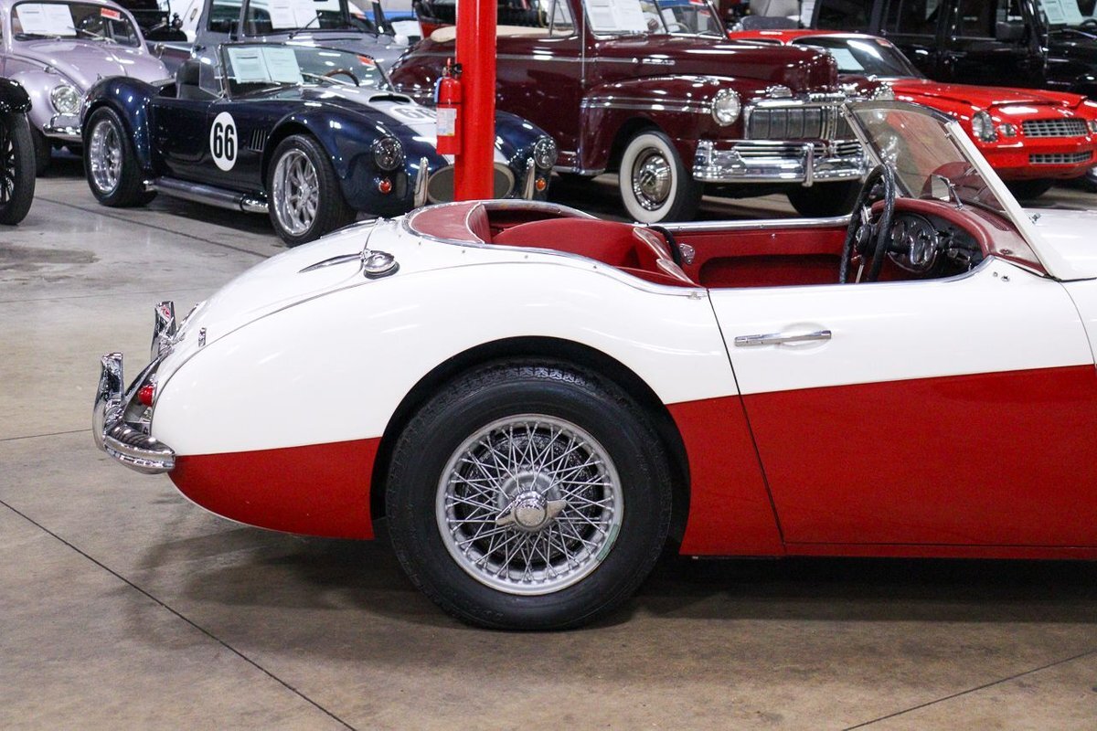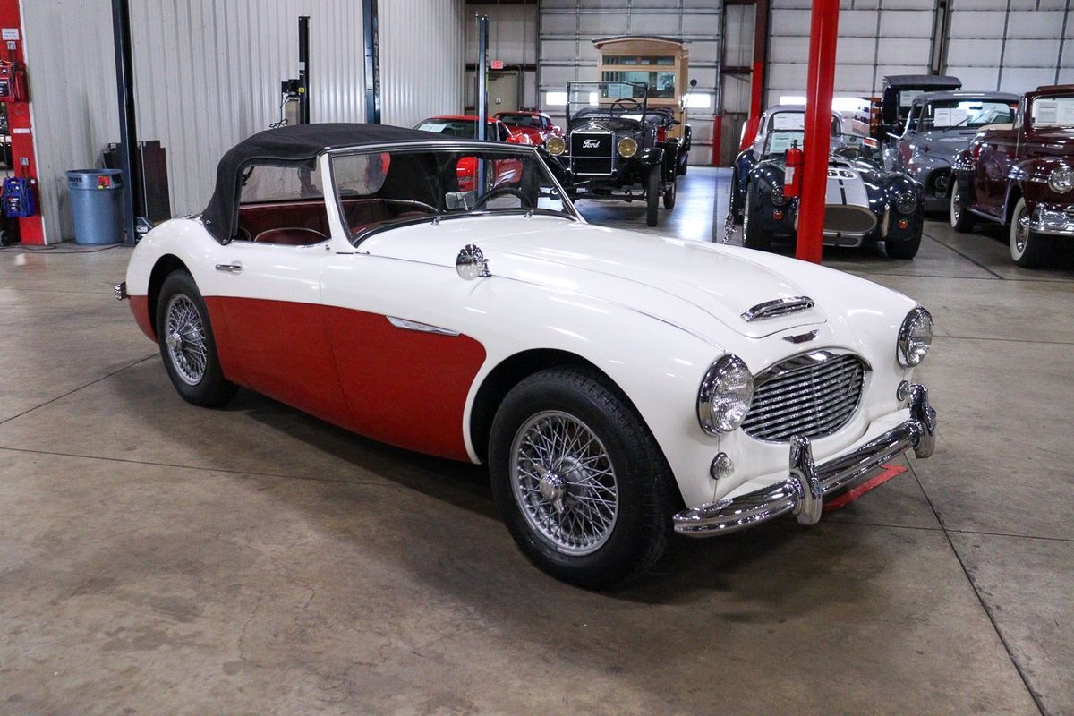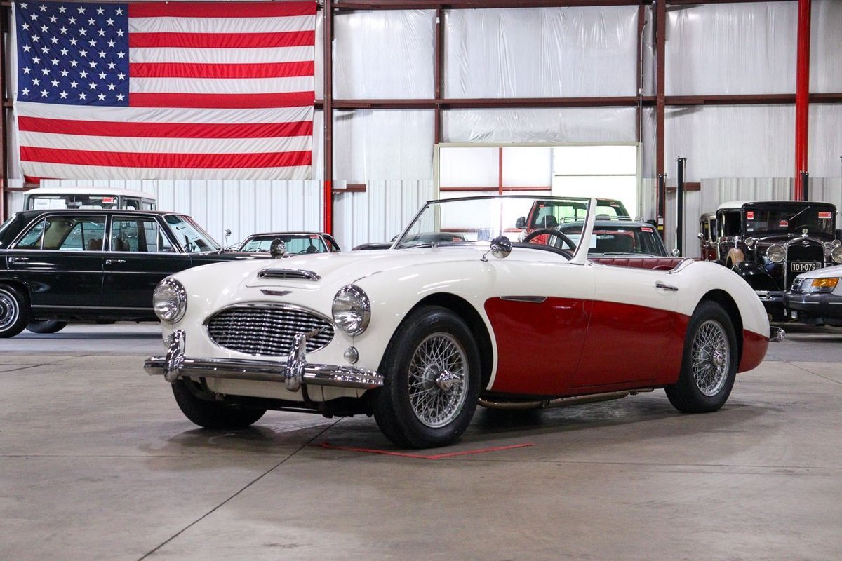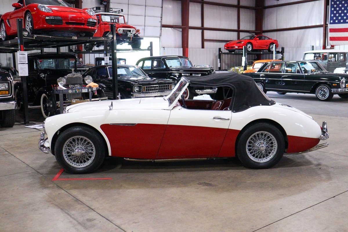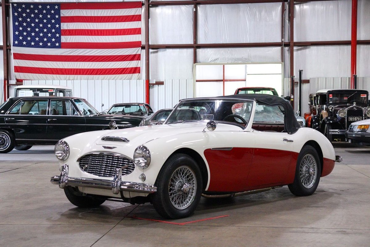 GR Auto Gallery is pleased to offer an iconic British Roadster. This 1961 Austin Healey 3000 Roaster is powered by its 3.0 liter overhead cam inline six cylinder engine fed by dual SU carbs, 4 speed manual transmission with overdrive and rear wheel drive. It is presented in Old English White with Tartan Red coves, over a red interior with white piping and black canvas top. Highlights include: Knock off wire wheels, original "banjo" style steering wheel, original gauges, bent shifter, heater, full tonneau cover, newer stainless steel exhaust, newer fuel tank, etc.