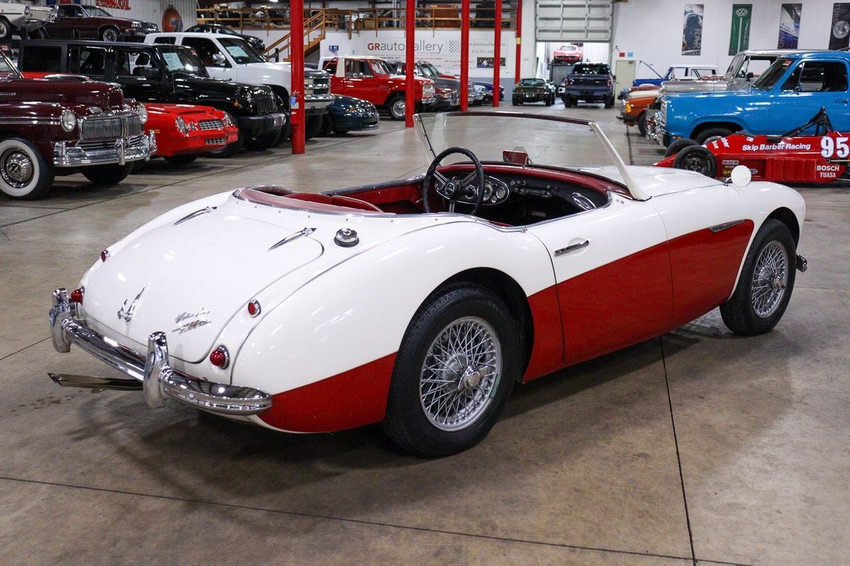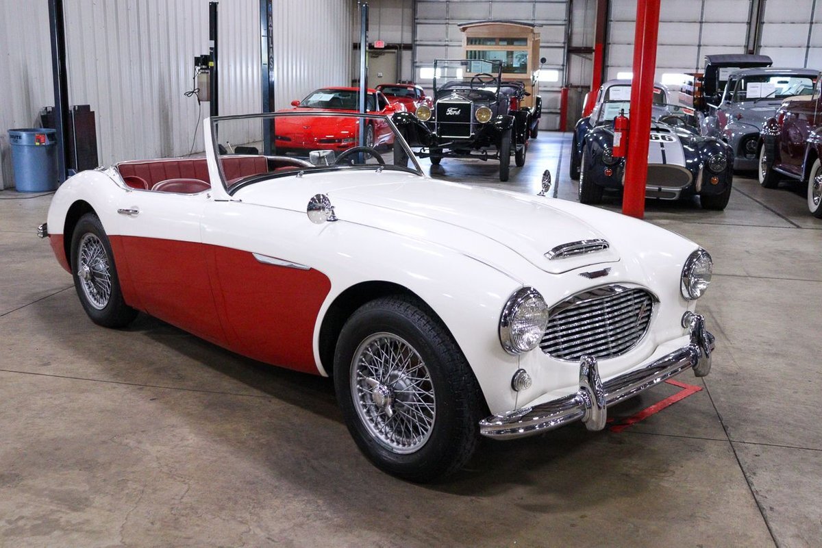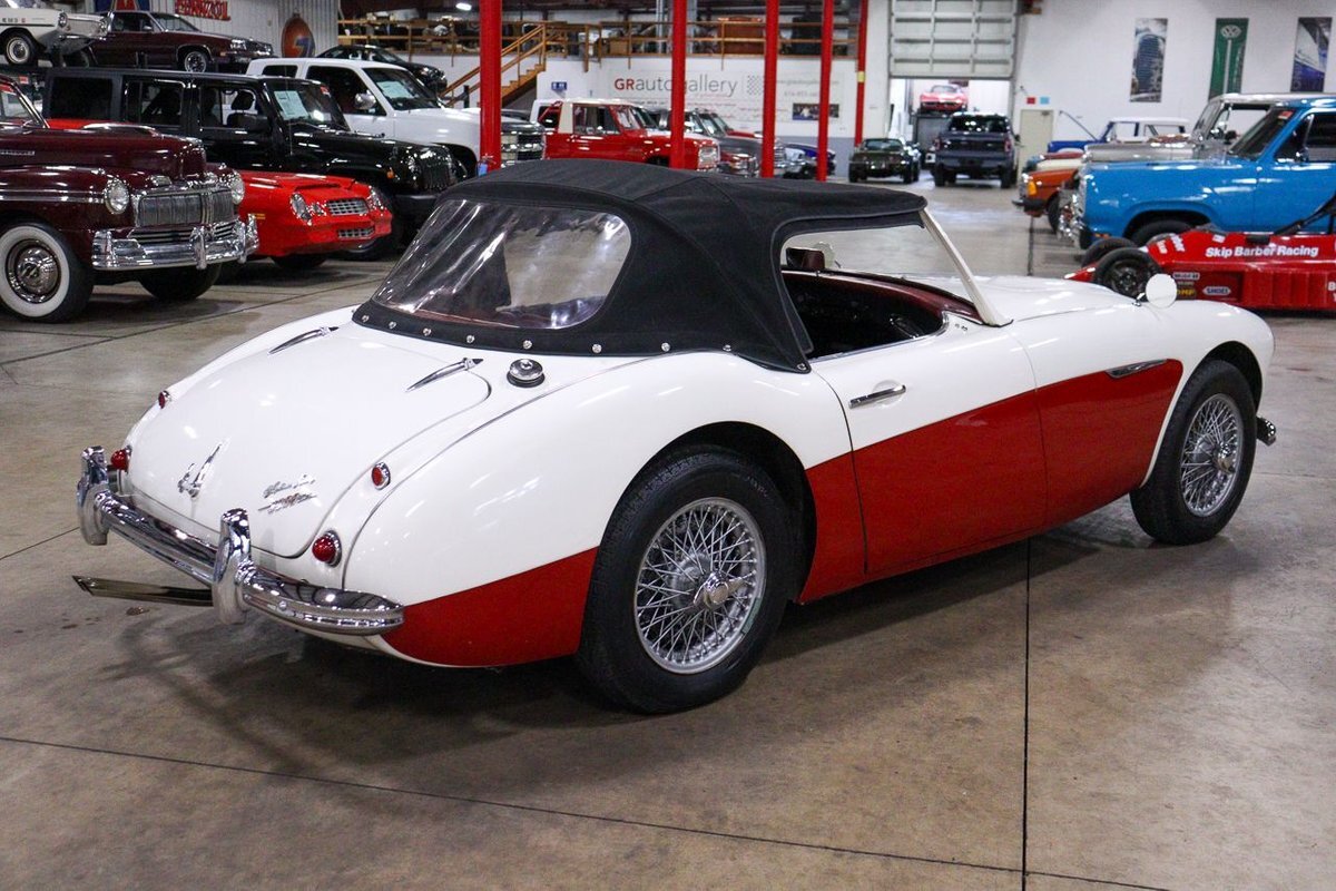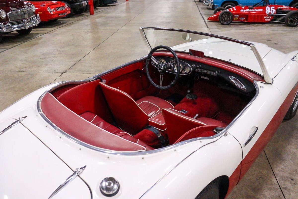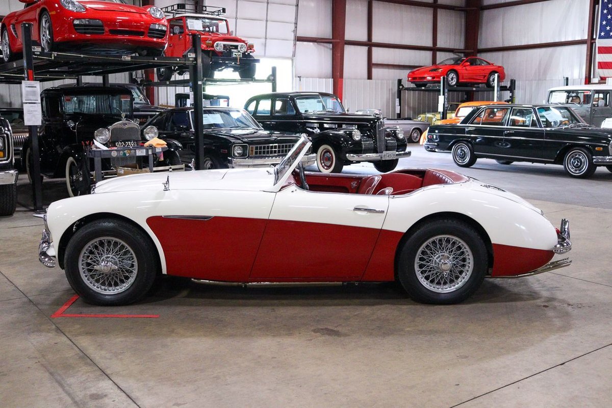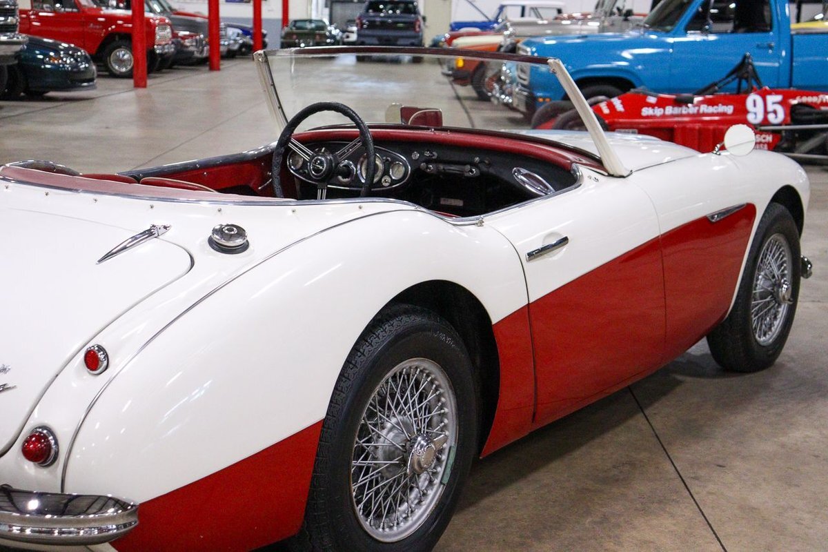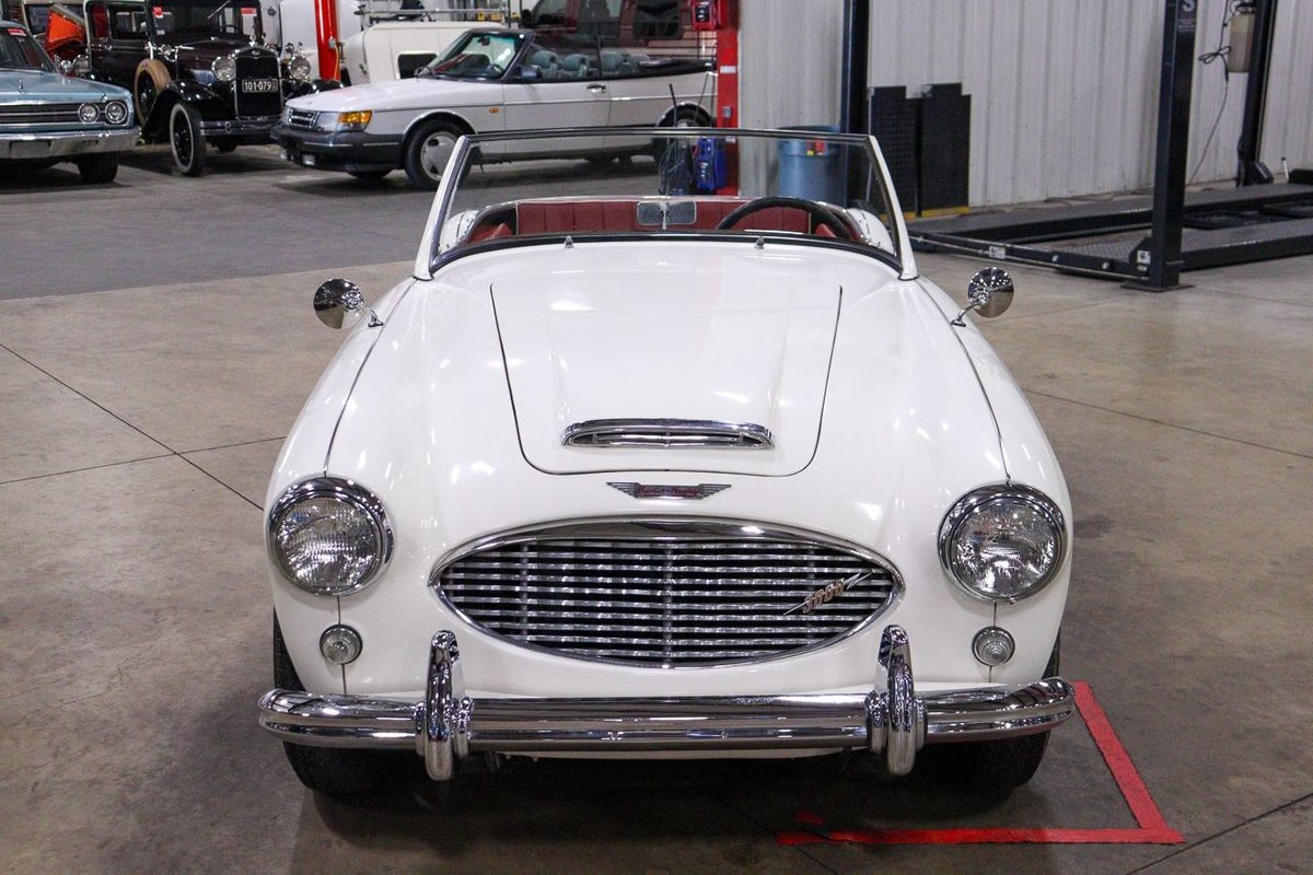 GR Auto Gallery is pleased to offer an iconic British Roadster. This 1961 Austin Healey 3000 Roaster is powered by its 3.0 liter overhead cam inline six cylinder engine fed by dual SU carbs, 4 speed manual transmission with overdrive and rear wheel drive. It is presented in Old English White with Tartan Red coves, over a red interior with white piping and black canvas top. Highlights include: Knock off wire wheels, original "banjo" style steering wheel, original gauges, bent shifter, heater, full tonneau cover, newer stainless steel exhaust, newer fuel tank, etc.