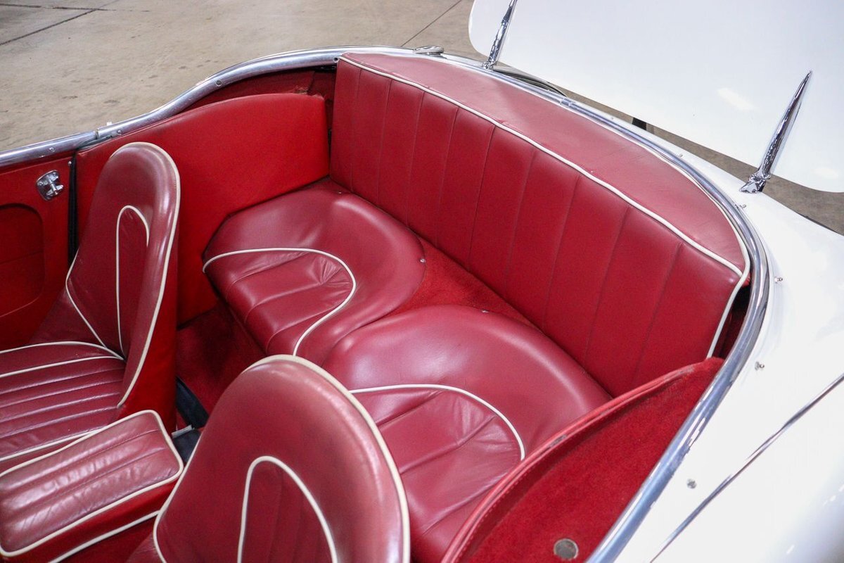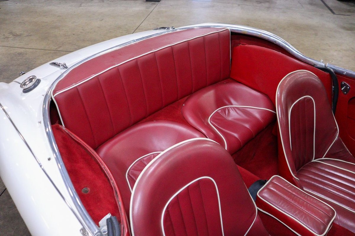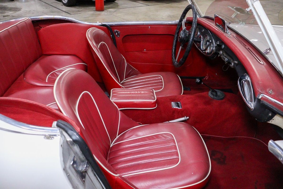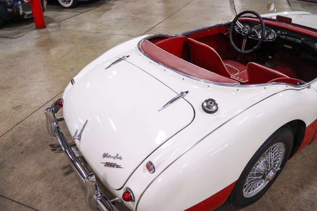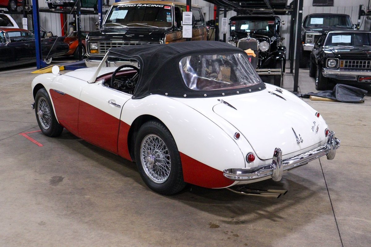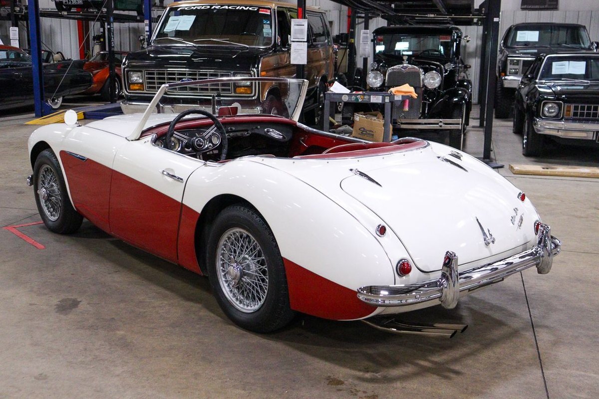 GR Auto Gallery is pleased to offer an iconic British Roadster. This 1961 Austin Healey 3000 Roaster is powered by its 3.0 liter overhead cam inline six cylinder engine fed by dual SU carbs, 4 speed manual transmission with overdrive and rear wheel drive. It is presented in Old English White with Tartan Red coves, over a red interior with white piping and black canvas top. Highlights include: Knock off wire wheels, original "banjo" style steering wheel, original gauges, bent shifter, heater, full tonneau cover, newer stainless steel exhaust, newer fuel tank, etc.
