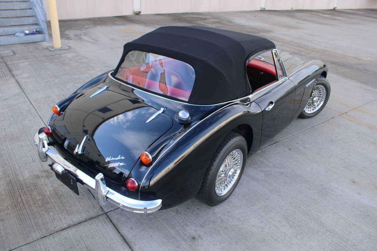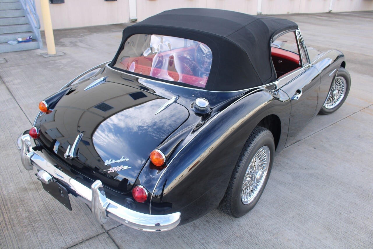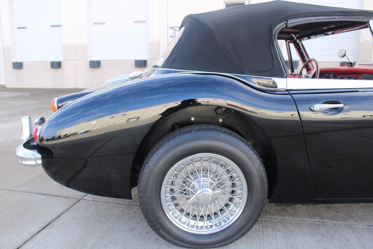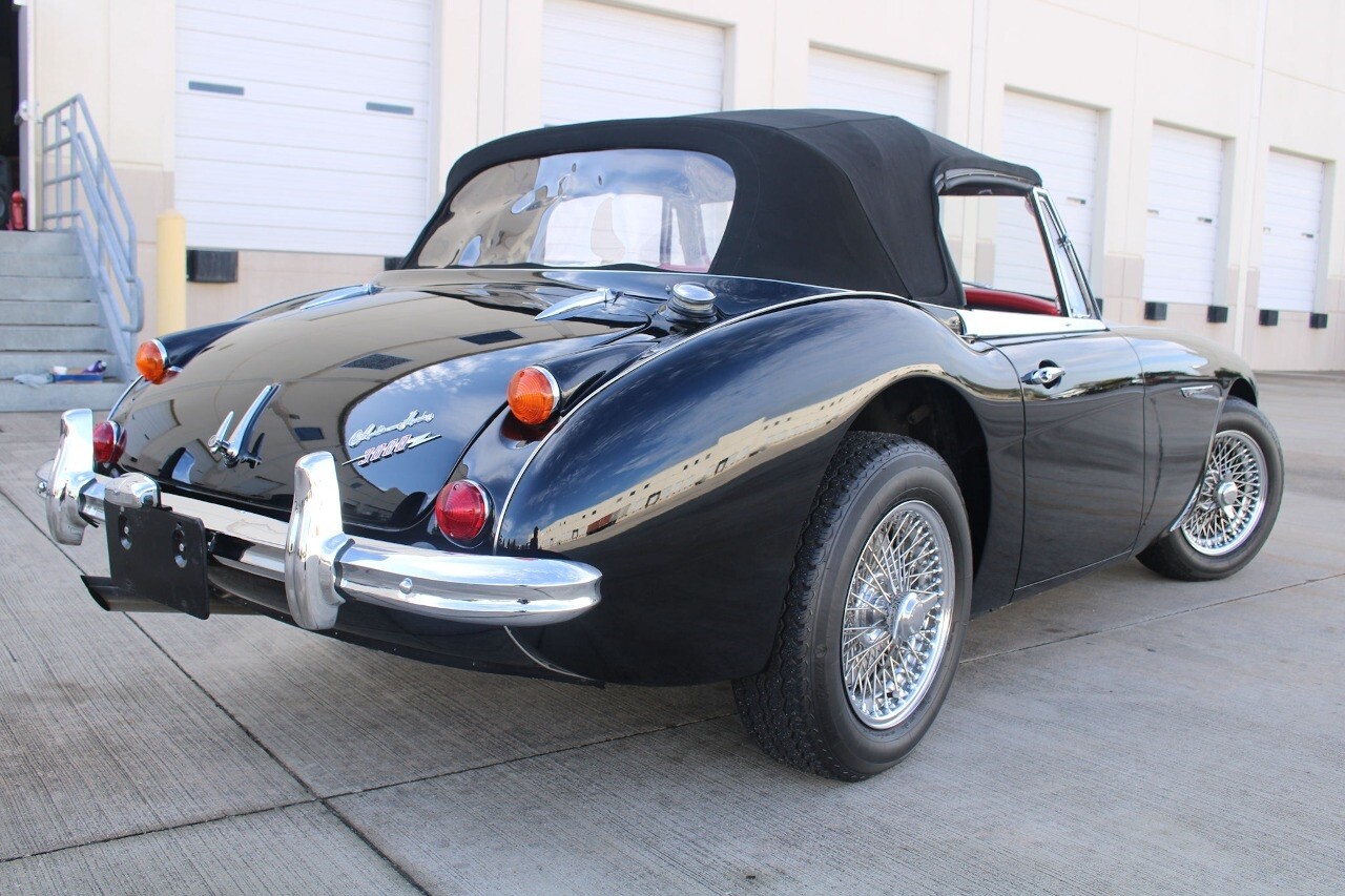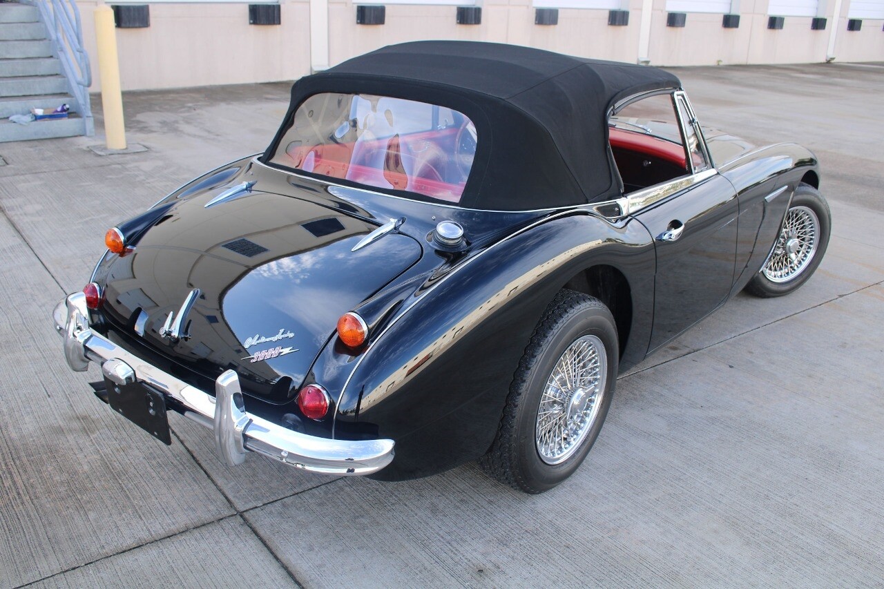 Gateway Classic Cars Houston Showroom is excited to offer this fine example of the last generation of the "Big Healey" for sale. This gorgeous black over red Austin-Healey 3000 Mark III BJ8 convertible is powered by a 2.9L inline six-cylinder engine, which is paired with a 4-speed manual transmission with overdrive. Respected Austin-Healey restoration authority British Motor Corporation performed a thorough restoration of this car (BMC has since seen its owner, Knut Holzer's retirement, and is now British Restorations, Inc.). The car comes with all roadside accessories, along with a restoration CD with scores of photos documenting the restoration process, and a folder full of information gathered on this car, including a British Motor Industry Heritage Trust Certificate. The paint looks amazing, the chrome sparkles, and the vibrant red interior looks virtually unused. Not only that, but the leather smells wonderful, and the exotic wood dash adds just the right vintage touch to go with its Smiths gauges. It rides on beautiful wire knock-off wheels (a proper disengagement tool is included for them), which are wrapped with radial tires that have plenty of tread life left. Occupants will appreciate the seat belts and the AM/FM radio (hidden behind the "3000" panel in the console center stack) during the many cruises that this car will no doubt be taken on by its new owner and a lucky friend. This "Big Healey" comes with additional features and accessories, such as the front badge bar with Lucas driving lamps, RAC and St. Christopher badges, a full tonneau cover, spare tire assembly with leather tie down, lead hammer, and wood knock-off protector. [ omitted ].