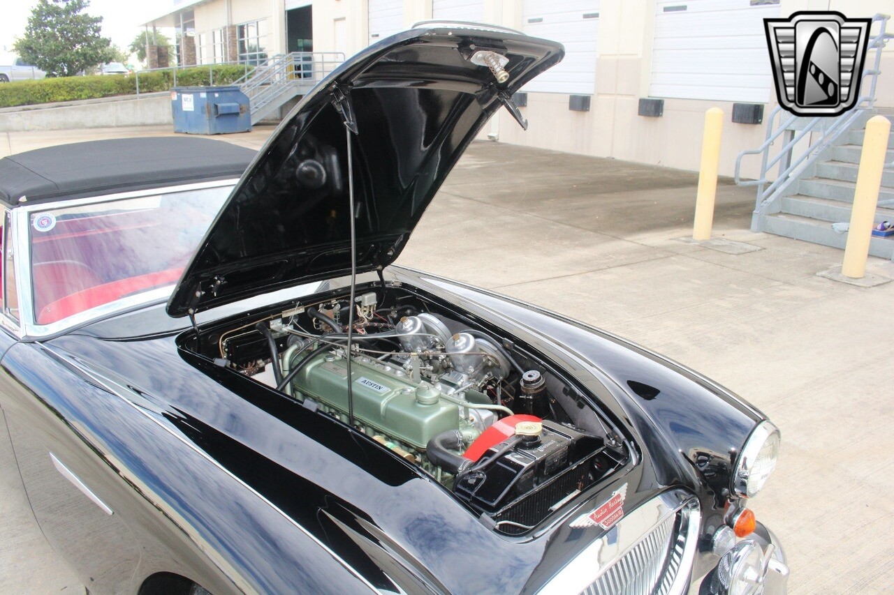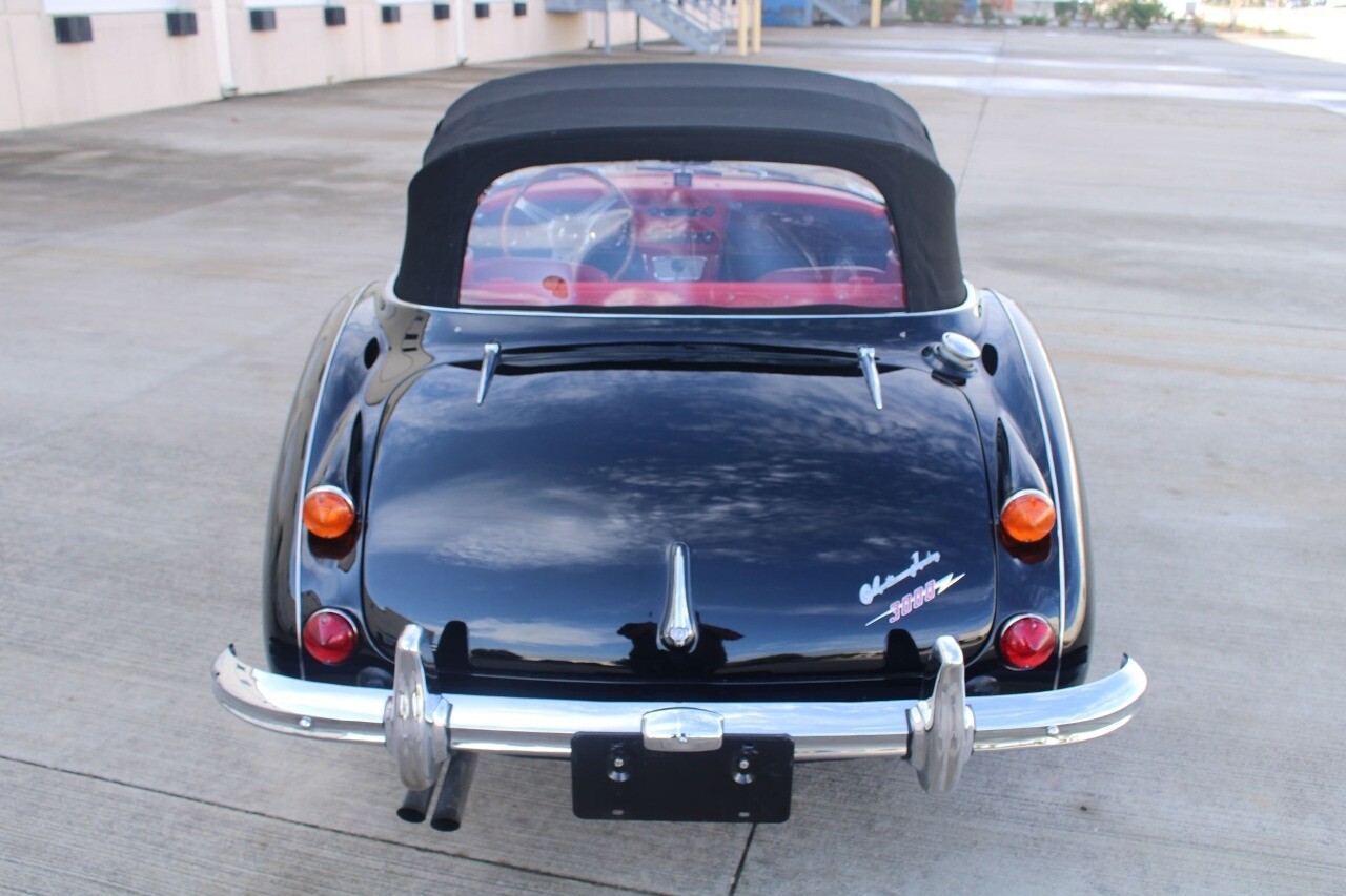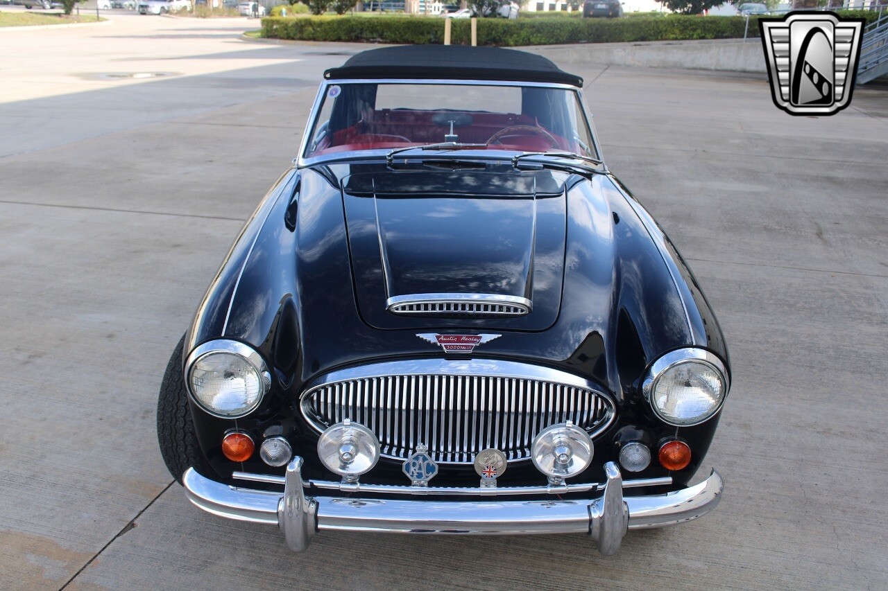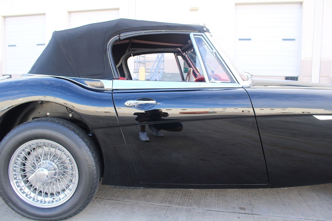 Gateway Classic Cars Houston Showroom is excited to offer this fine example of the last generation of the "Big Healey" for sale. This gorgeous black over red Austin-Healey 3000 Mark III BJ8 convertible is powered by a 2.9L inline six-cylinder engine, which is paired with a 4-speed manual transmission with overdrive. Respected Austin-Healey restoration authority British Motor Corporation performed a thorough restoration of this car (BMC has since seen its owner, Knut Holzer's retirement, and is now British Restorations, Inc.). The car comes with all roadside accessories, along with a restoration CD with scores of photos documenting the restoration process, and a folder full of information gathered on this car, including a British Motor Industry Heritage Trust Certificate. The paint looks amazing, the chrome sparkles, and the vibrant red interior looks virtually unused. Not only that, but the leather smells wonderful, and the exotic wood dash adds just the right vintage touch to go with its Smiths gauges. It rides on beautiful wire knock-off wheels (a proper disengagement tool is included for them), which are wrapped with radial tires that have plenty of tread life left. Occupants will appreciate the seat belts and the AM/FM radio (hidden behind the "3000" panel in the console center stack) during the many cruises that this car will no doubt be taken on by its new owner and a lucky friend. This "Big Healey" comes with additional features and accessories, such as the front badge bar with Lucas driving lamps, RAC and St. Christopher badges, a full tonneau cover, spare tire assembly with leather tie down, lead hammer, and wood knock-off protector. [ omitted ].