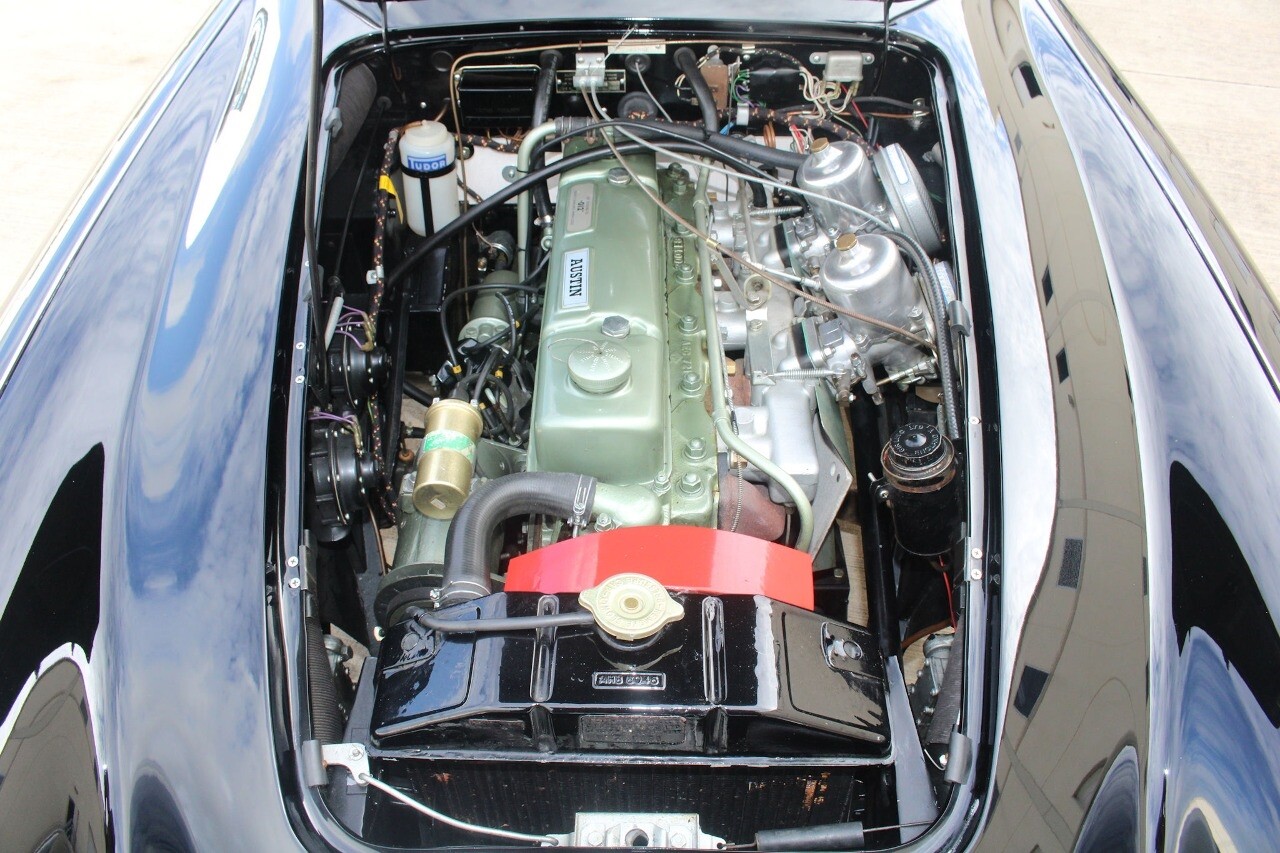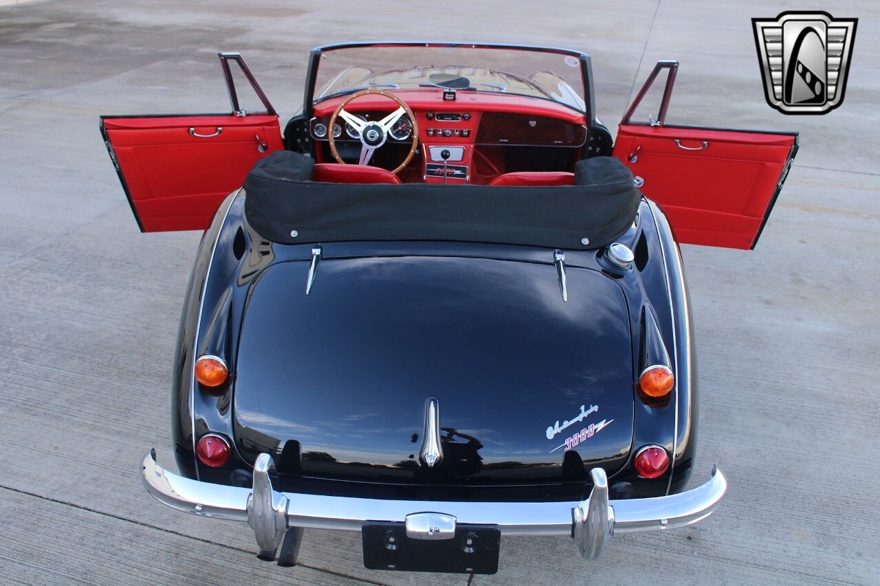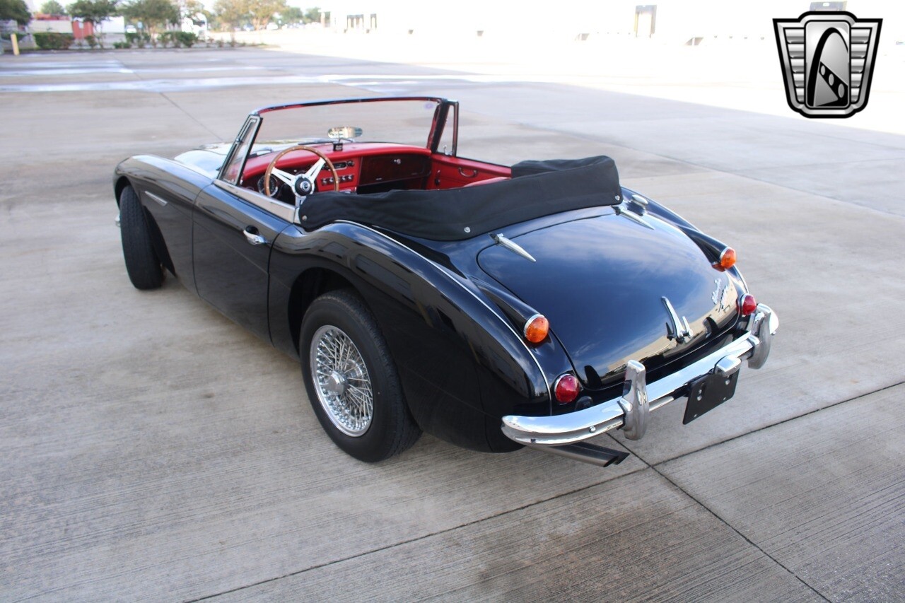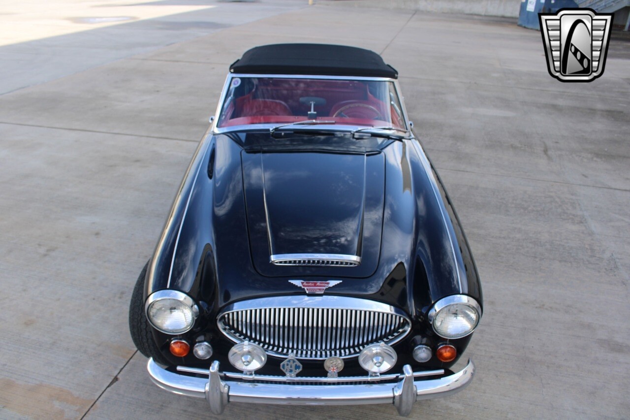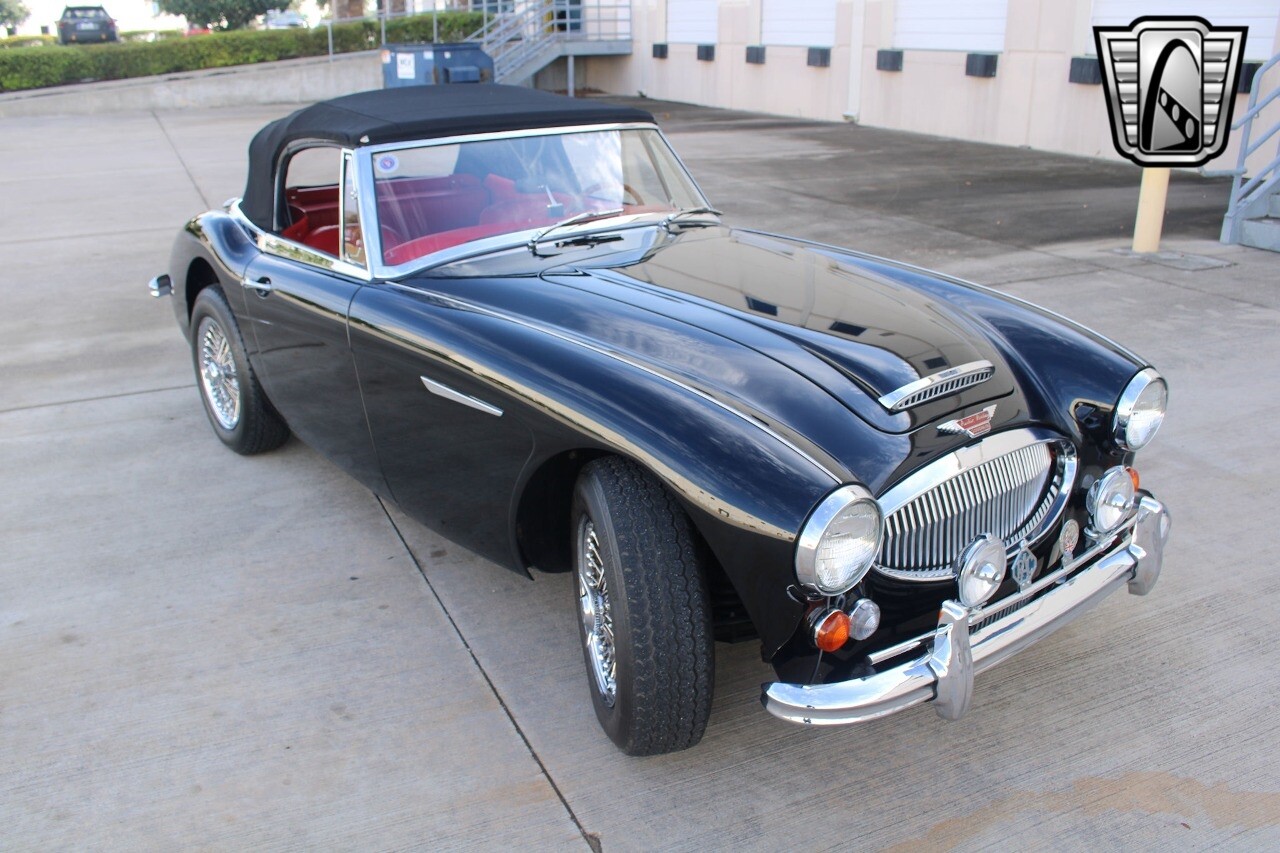 Gateway Classic Cars Houston Showroom is excited to offer this fine example of the last generation of the "Big Healey" for sale. This gorgeous black over red Austin-Healey 3000 Mark III BJ8 convertible is powered by a 2.9L inline six-cylinder engine, which is paired with a 4-speed manual transmission with overdrive. Respected Austin-Healey restoration authority British Motor Corporation performed a thorough restoration of this car (BMC has since seen its owner, Knut Holzer's retirement, and is now British Restorations, Inc.). The car comes with all roadside accessories, along with a restoration CD with scores of photos documenting the restoration process, and a folder full of information gathered on this car, including a British Motor Industry Heritage Trust Certificate. The paint looks amazing, the chrome sparkles, and the vibrant red interior looks virtually unused. Not only that, but the leather smells wonderful, and the exotic wood dash adds just the right vintage touch to go with its Smiths gauges. It rides on beautiful wire knock-off wheels (a proper disengagement tool is included for them), which are wrapped with radial tires that have plenty of tread life left. Occupants will appreciate the seat belts and the AM/FM radio (hidden behind the "3000" panel in the console center stack) during the many cruises that this car will no doubt be taken on by its new owner and a lucky friend. This "Big Healey" comes with additional features and accessories, such as the front badge bar with Lucas driving lamps, RAC and St. Christopher badges, a full tonneau cover, spare tire assembly with leather tie down, lead hammer, and wood knock-off protector. [ omitted ].
