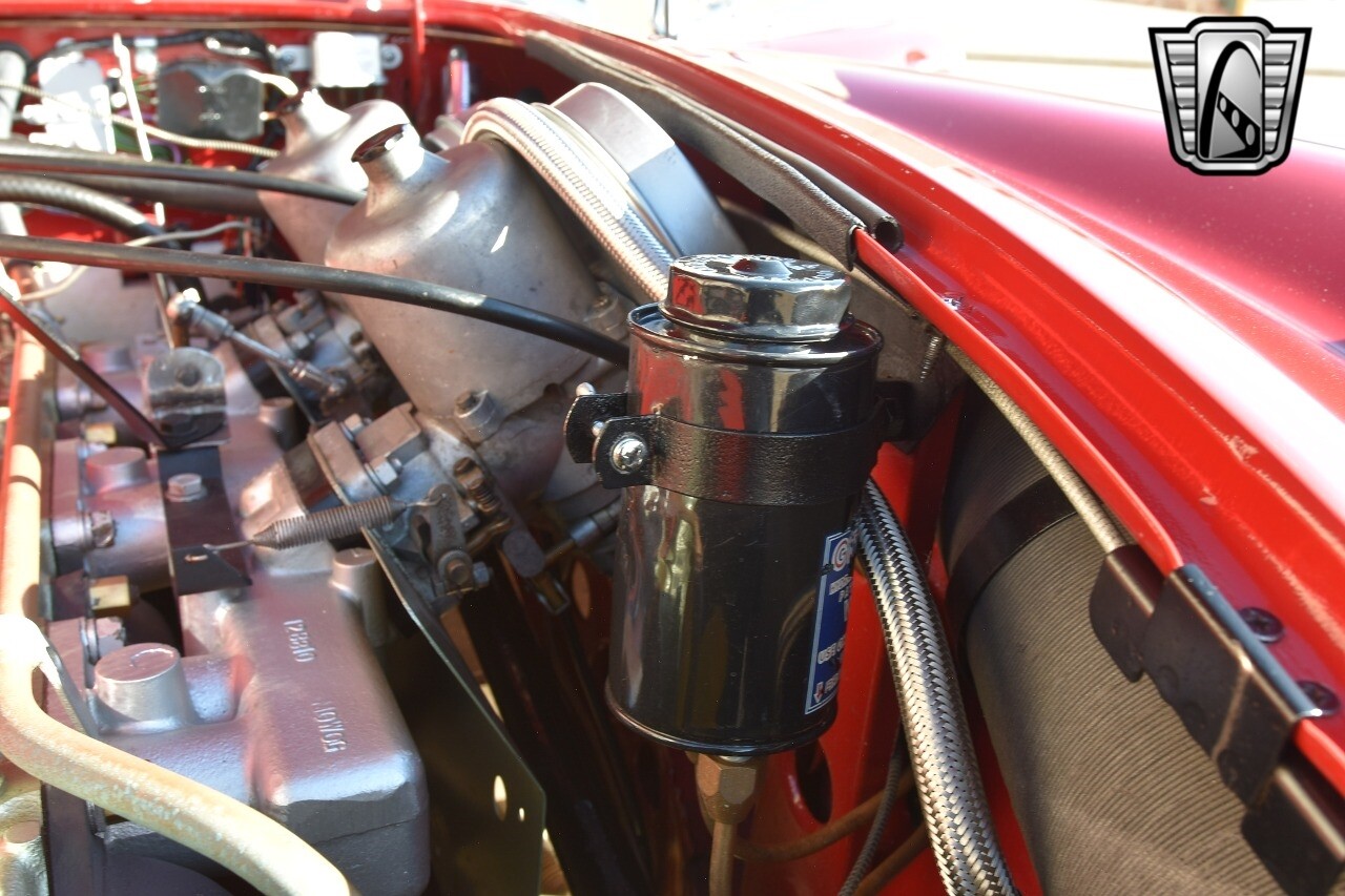 The interior of this Austin-Healey 3000 is just as impressive as its exterior. The cabin is adorned with a luxurious tan leather, offering a wonderful contrast to the bold red exterior. The seats are comfortable and supportive, making even long journeys a pleasure.