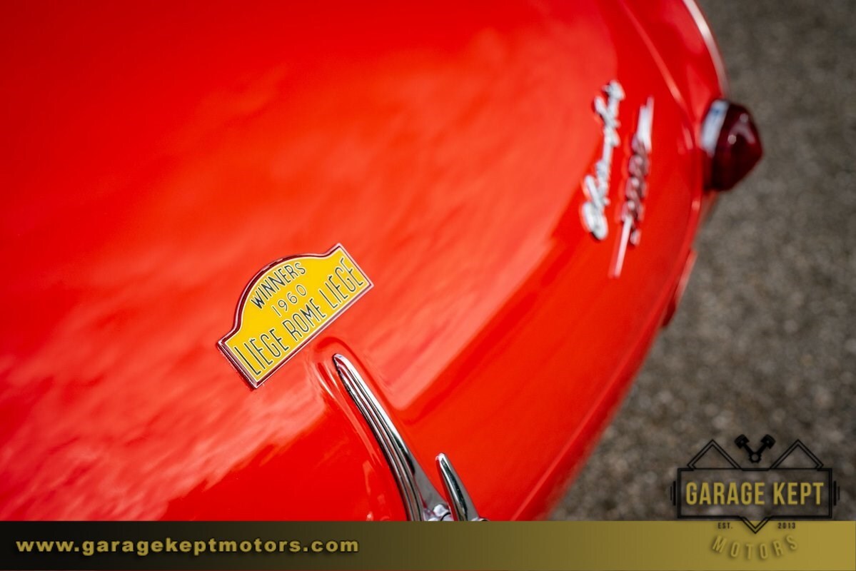 When looking at this car it's immediately evident that it was restored in a Rallye-style, as evidenced by the vented front "wings", deletion of the bumpers front and rear, the addition of leather hood straps, extra lights that have been added to the front of the car, and the addition of larger tail lights. All that's missing is a "gumball" with a number, and a fancy Rallye decal. This car is clearly the result of a careful restoration, as the paint and body work are tidy. Rich red, and deep black paint evenly cover the carefully aligned body panels, and give a nod to the two tone Austin Healey competition cars of days past.