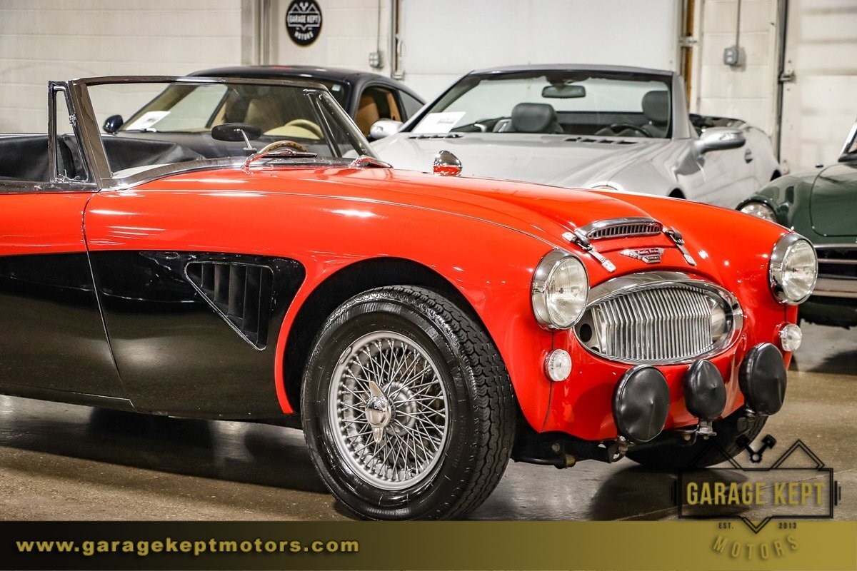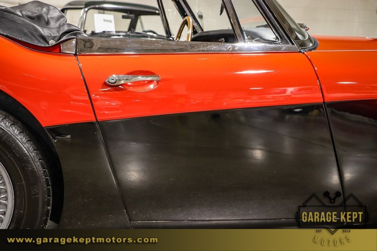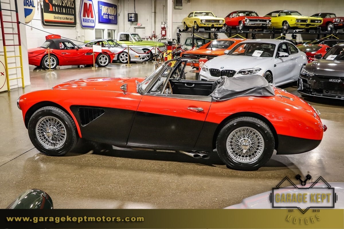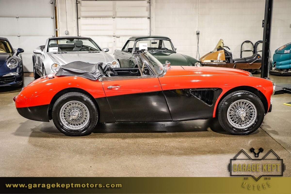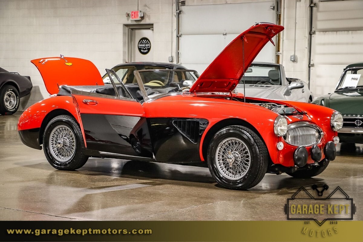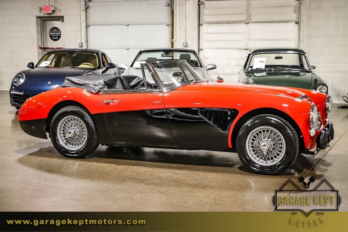 After a 15 year production run, the body style of the Austin Healey 100/100-6/3000 moved from a production car, to another cog in the wheel of British motoring history. Circuit racing at places like LeMans or Sebring, Rallye Racing in locations like Monte Carlo, or enjoyed by everyday blokes in places like London, the Austin Healey 3000 enjoyed a storied history in the early days, as well as now. It's another British Roadster which seemed to have a face - a smiling one at that, which all sorts of car enthusiasts recognize. To those who are very familiar with the Healey 3000 cars, the Mark III BJ8 like the car you see here, is a desirable variant, which offered a pair of SU carburetors, an upgraded dashboard with wood trim, and slightly different exterior lighting from that of the Mark II. The BJ8, known by some as the Big Healey, was active and successful in circuit racing and rallying, and this car certainly gives a nod to racing Healeys of the past. This particular car is finished in a striking two tone red and black exterior, with a black interior, capped with a black soft top.