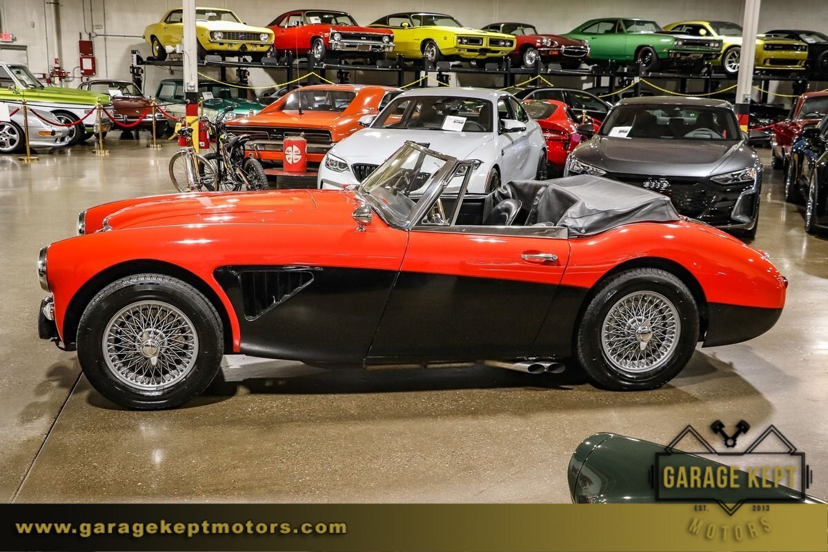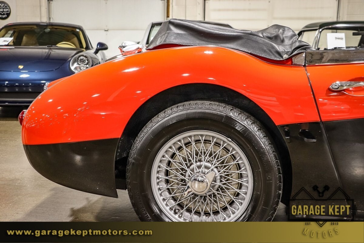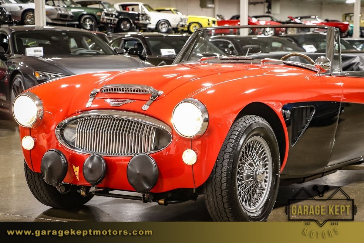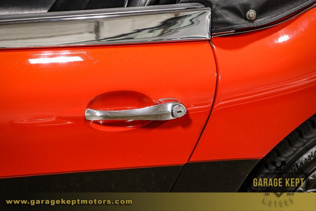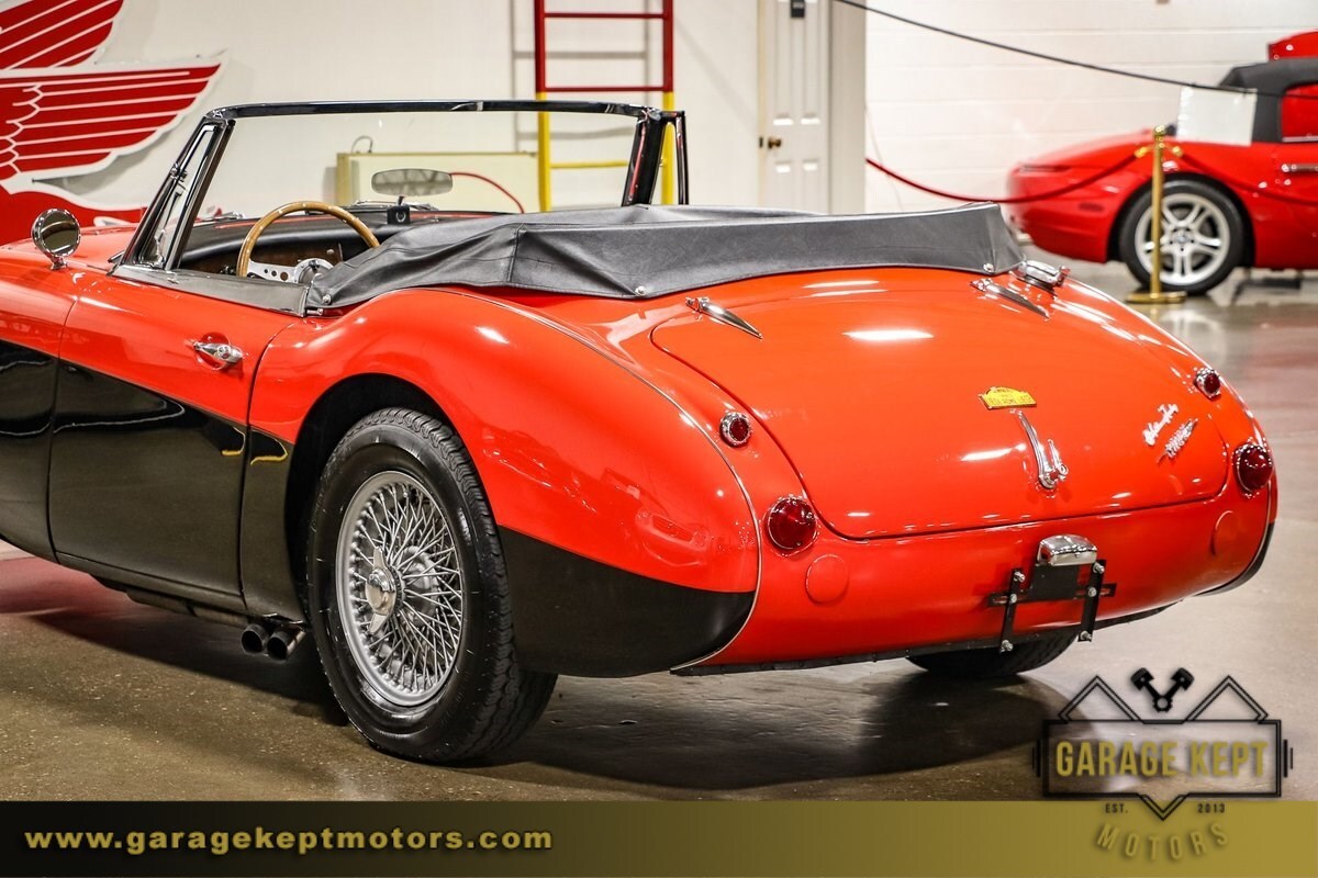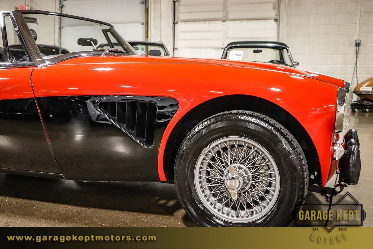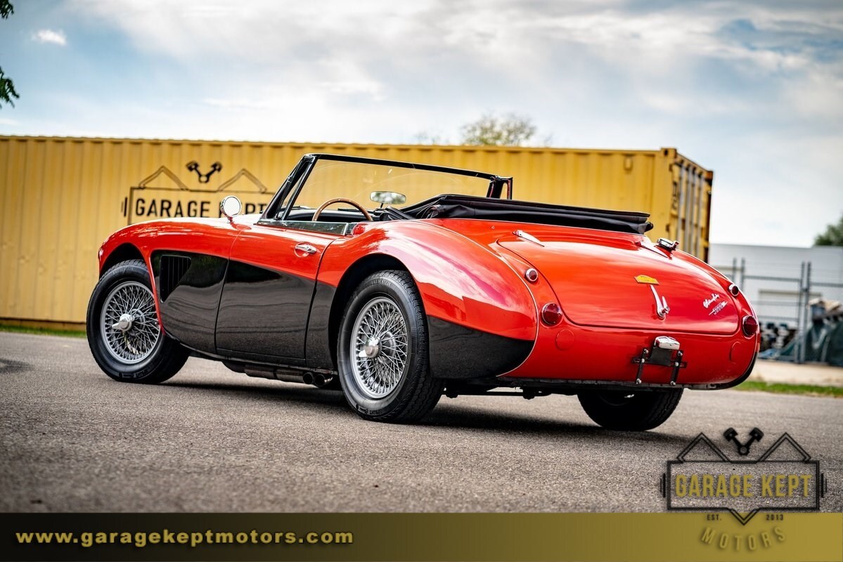 After a 15 year production run, the body style of the Austin Healey 100/100-6/3000 moved from a production car, to another cog in the wheel of British motoring history. Circuit racing at places like LeMans or Sebring, Rallye Racing in locations like Monte Carlo, or enjoyed by everyday blokes in places like London, the Austin Healey 3000 enjoyed a storied history in the early days, as well as now. It's another British Roadster which seemed to have a face - a smiling one at that, which all sorts of car enthusiasts recognize. To those who are very familiar with the Healey 3000 cars, the Mark III BJ8 like the car you see here, is a desirable variant, which offered a pair of SU carburetors, an upgraded dashboard with wood trim, and slightly different exterior lighting from that of the Mark II. The BJ8, known by some as the Big Healey, was active and successful in circuit racing and rallying, and this car certainly gives a nod to racing Healeys of the past. This particular car is finished in a striking two tone red and black exterior, with a black interior, capped with a black soft top.