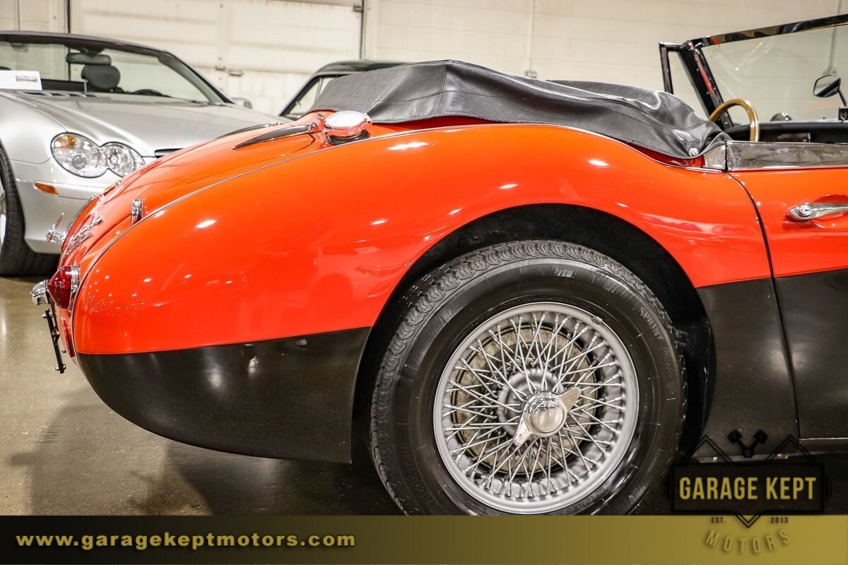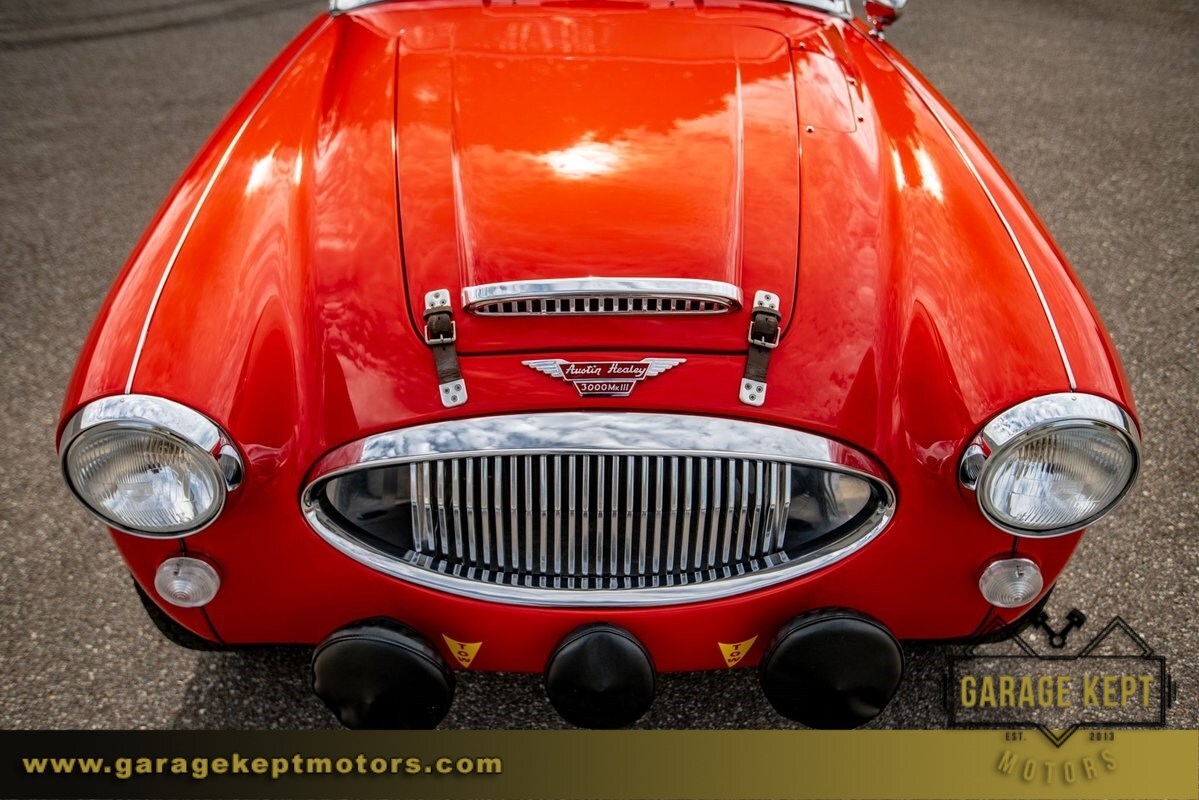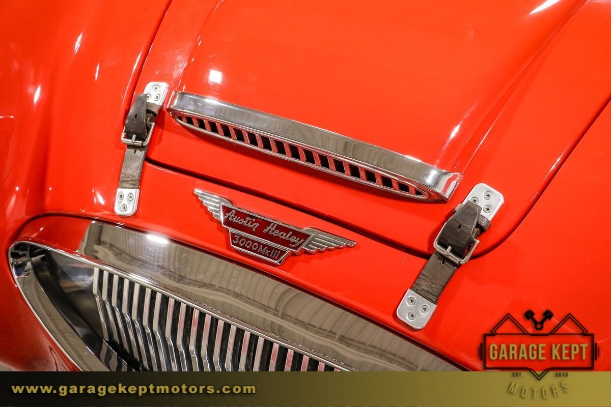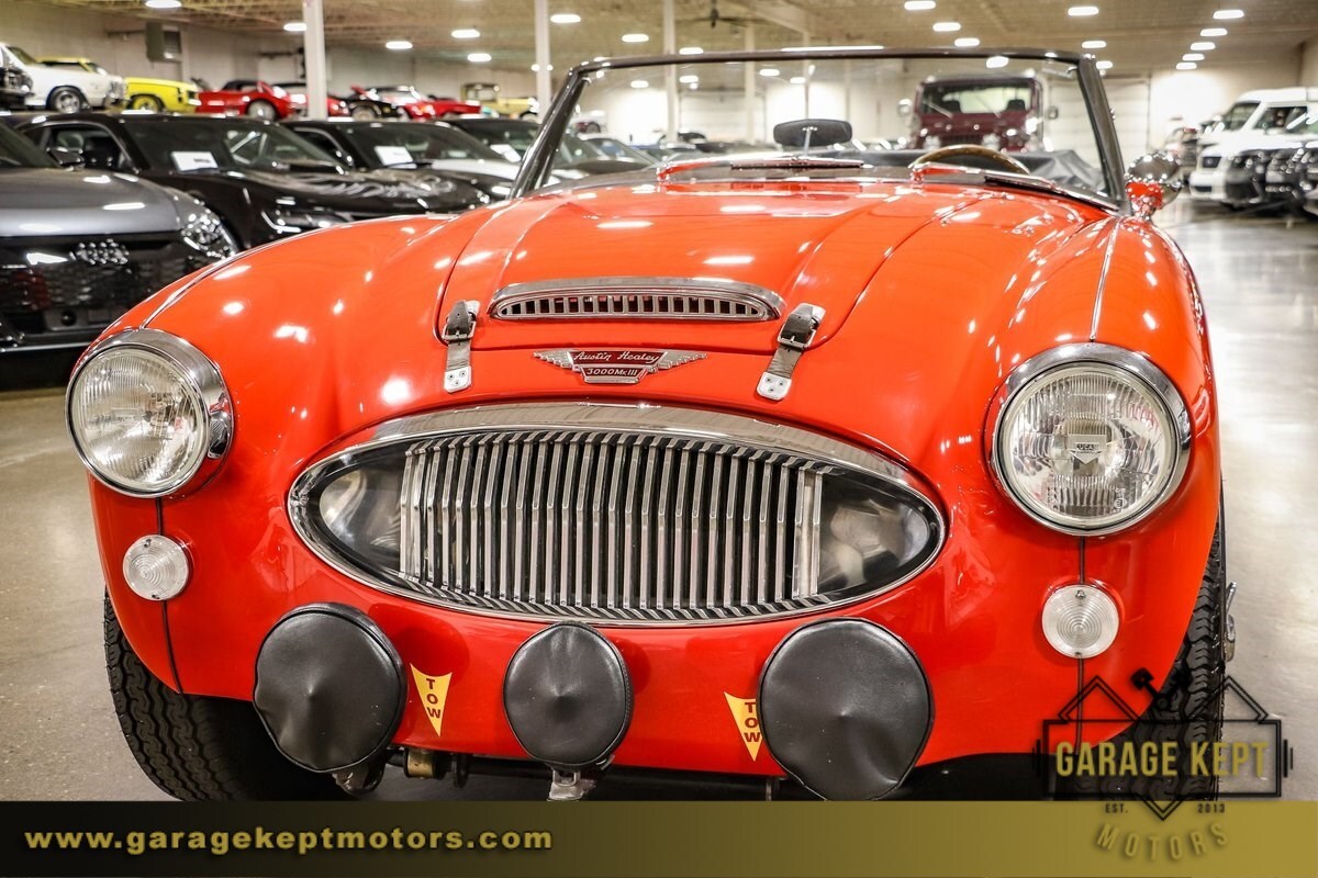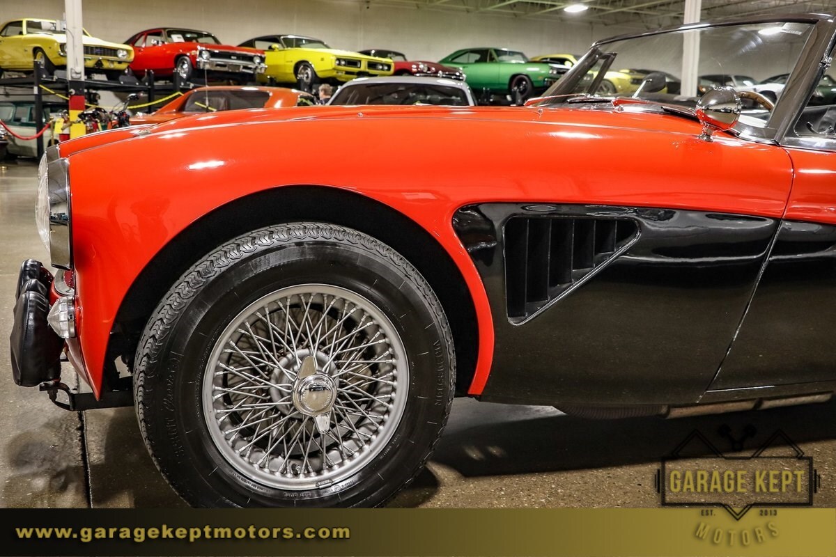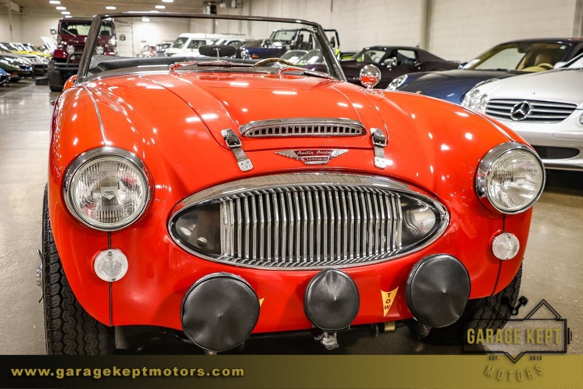 After a 15 year production run, the body style of the Austin Healey 100/100-6/3000 moved from a production car, to another cog in the wheel of British motoring history. Circuit racing at places like LeMans or Sebring, Rallye Racing in locations like Monte Carlo, or enjoyed by everyday blokes in places like London, the Austin Healey 3000 enjoyed a storied history in the early days, as well as now. It's another British Roadster which seemed to have a face - a smiling one at that, which all sorts of car enthusiasts recognize. To those who are very familiar with the Healey 3000 cars, the Mark III BJ8 like the car you see here, is a desirable variant, which offered a pair of SU carburetors, an upgraded dashboard with wood trim, and slightly different exterior lighting from that of the Mark II. The BJ8, known by some as the Big Healey, was active and successful in circuit racing and rallying, and this car certainly gives a nod to racing Healeys of the past. This particular car is finished in a striking two tone red and black exterior, with a black interior, capped with a black soft top.