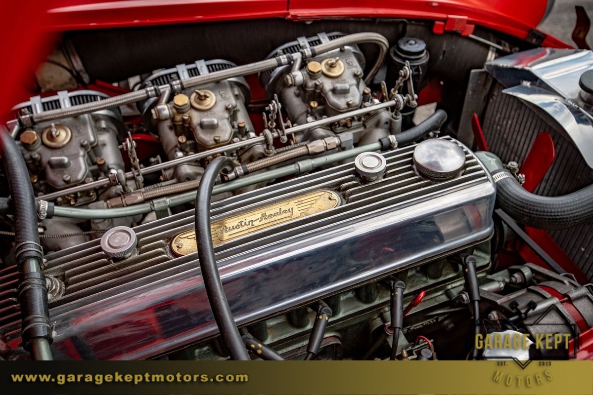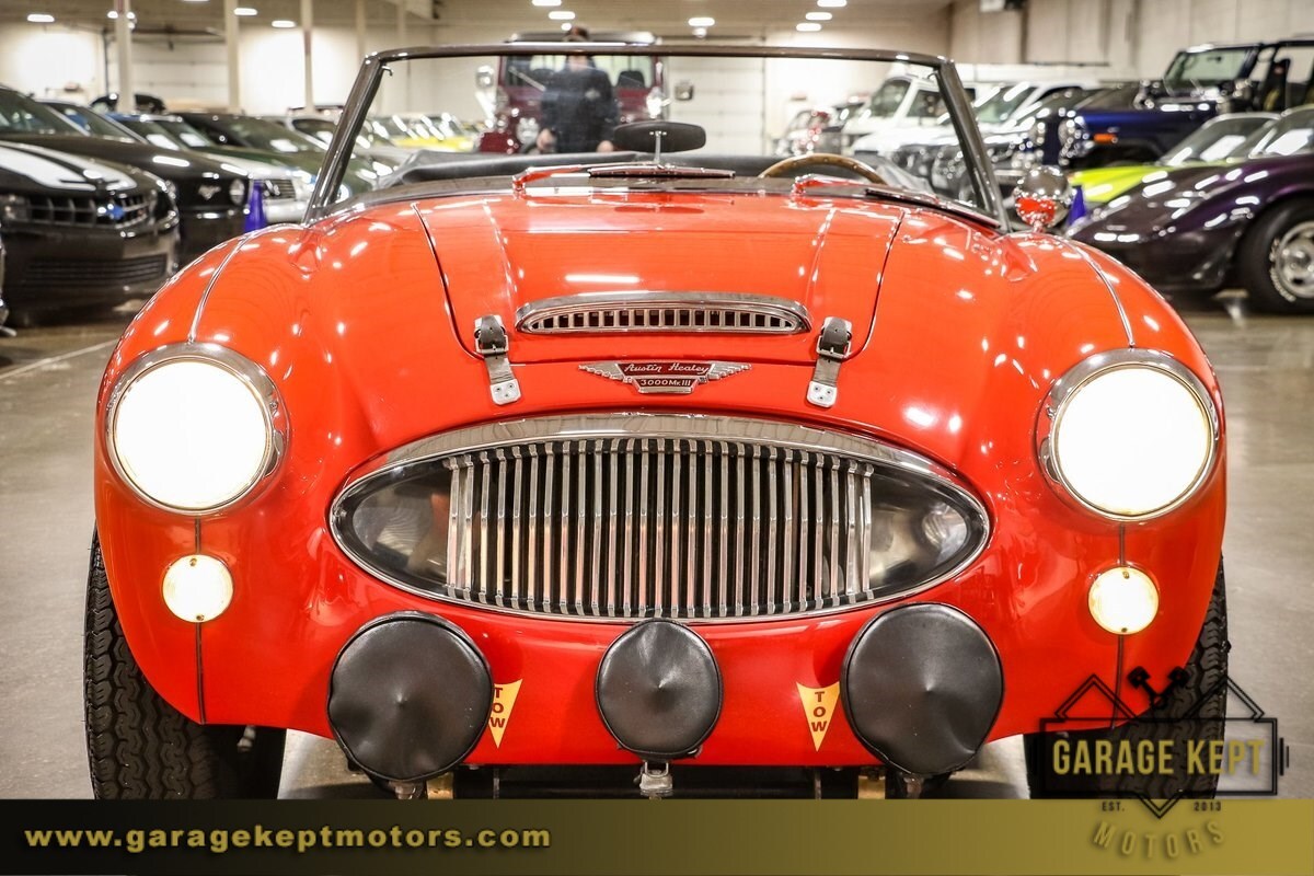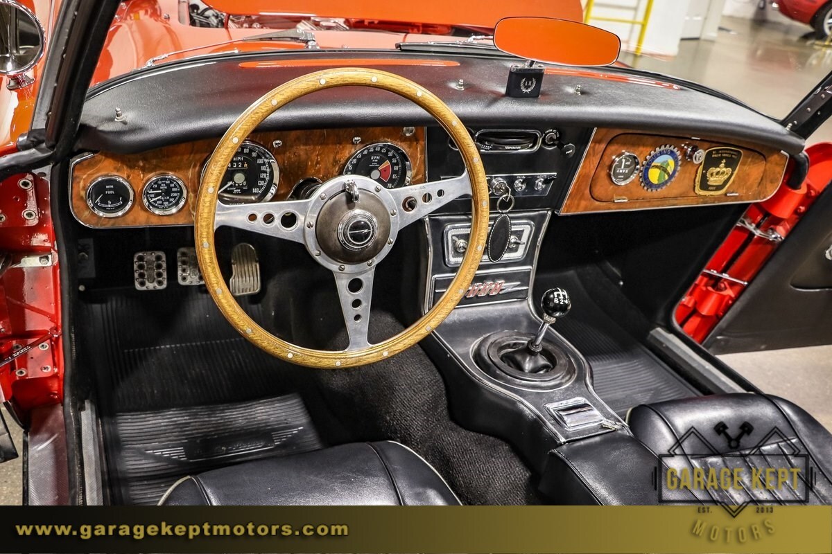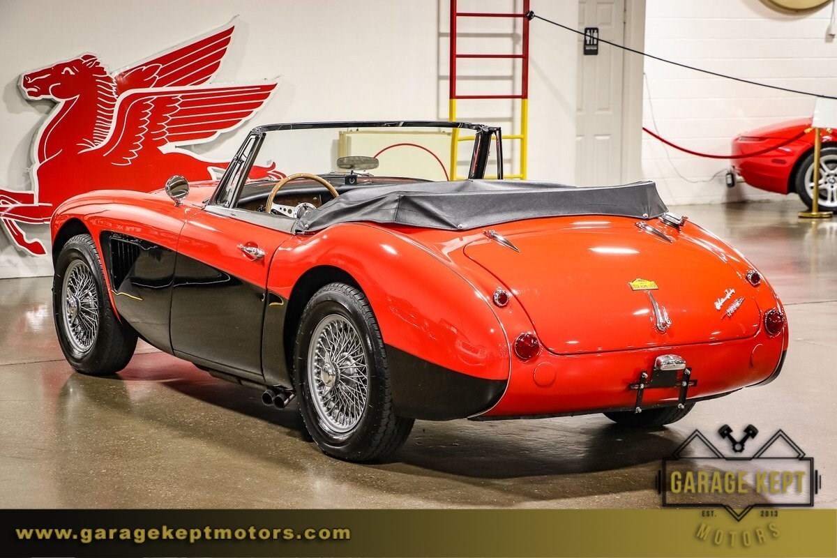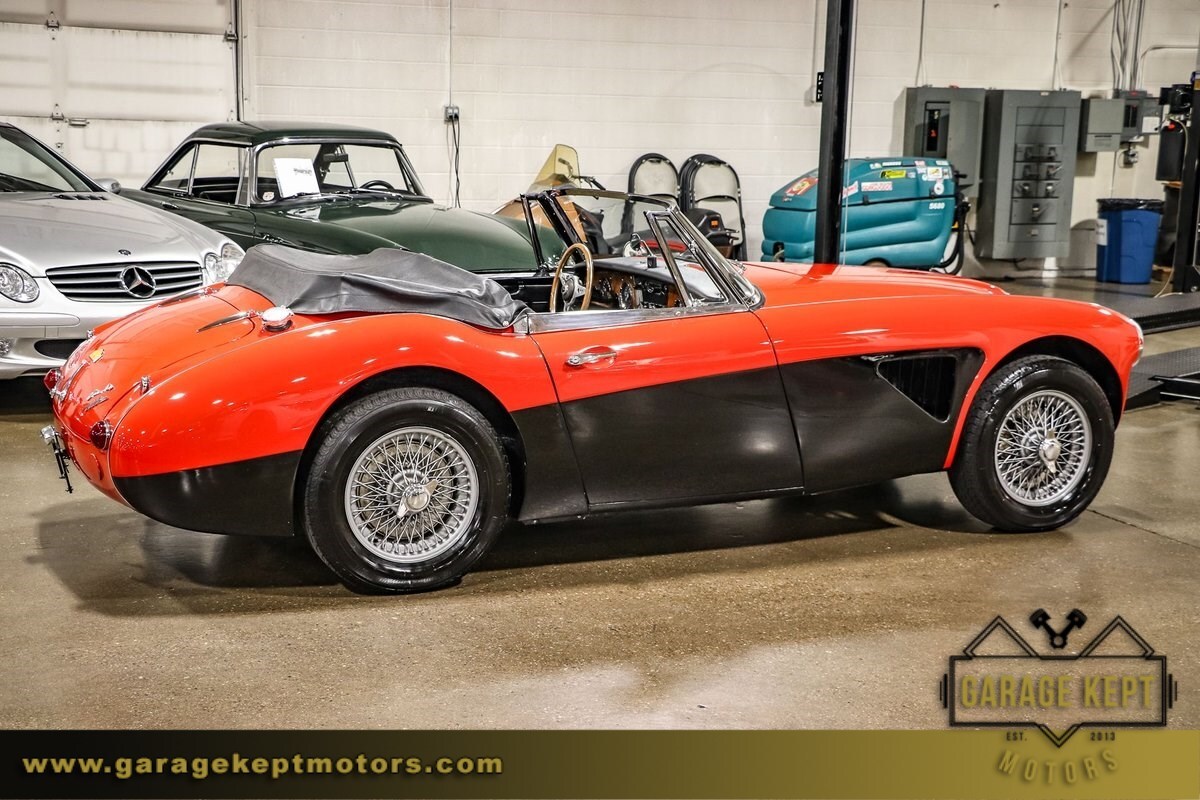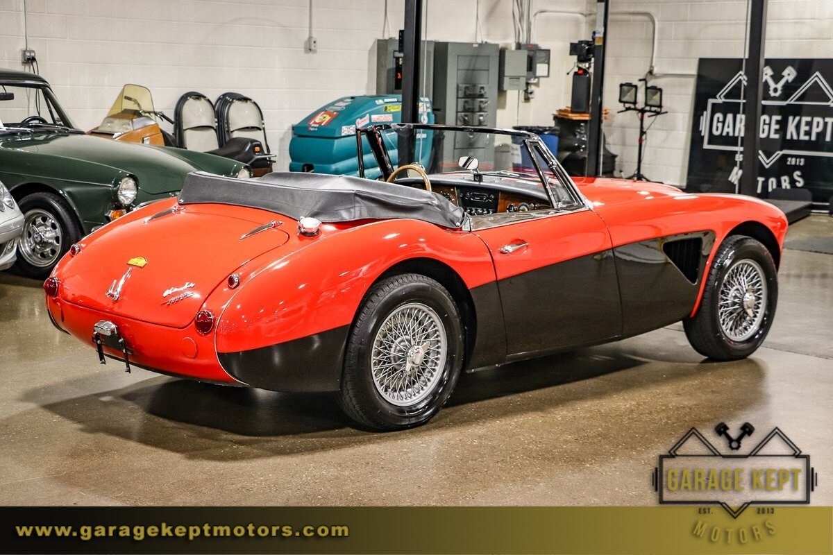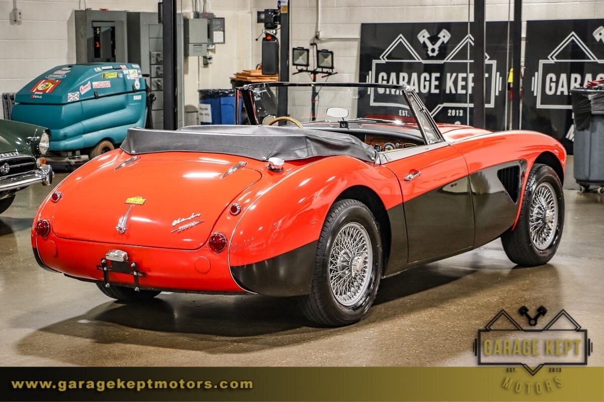 After a 15 year production run, the body style of the Austin Healey 100/100-6/3000 moved from a production car, to another cog in the wheel of British motoring history. Circuit racing at places like LeMans or Sebring, Rallye Racing in locations like Monte Carlo, or enjoyed by everyday blokes in places like London, the Austin Healey 3000 enjoyed a storied history in the early days, as well as now. It's another British Roadster which seemed to have a face - a smiling one at that, which all sorts of car enthusiasts recognize. To those who are very familiar with the Healey 3000 cars, the Mark III BJ8 like the car you see here, is a desirable variant, which offered a pair of SU carburetors, an upgraded dashboard with wood trim, and slightly different exterior lighting from that of the Mark II. The BJ8, known by some as the Big Healey, was active and successful in circuit racing and rallying, and this car certainly gives a nod to racing Healeys of the past. This particular car is finished in a striking two tone red and black exterior, with a black interior, capped with a black soft top.