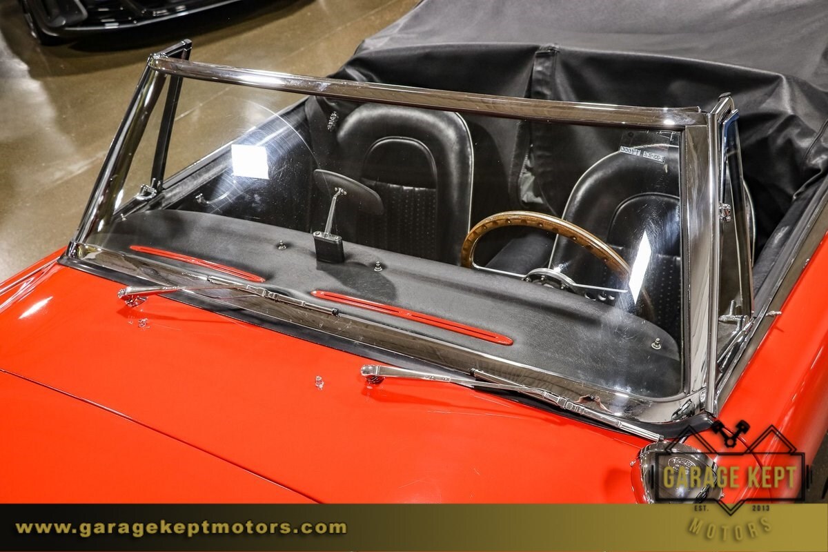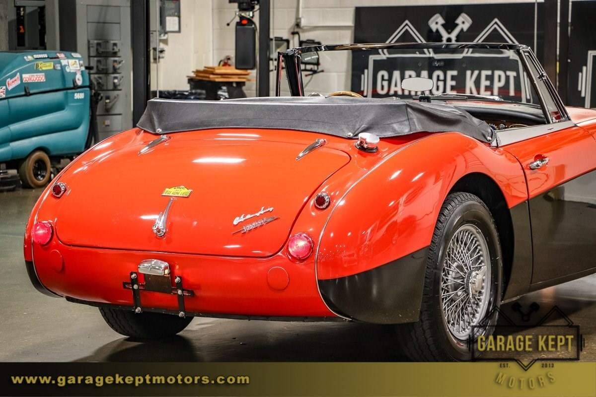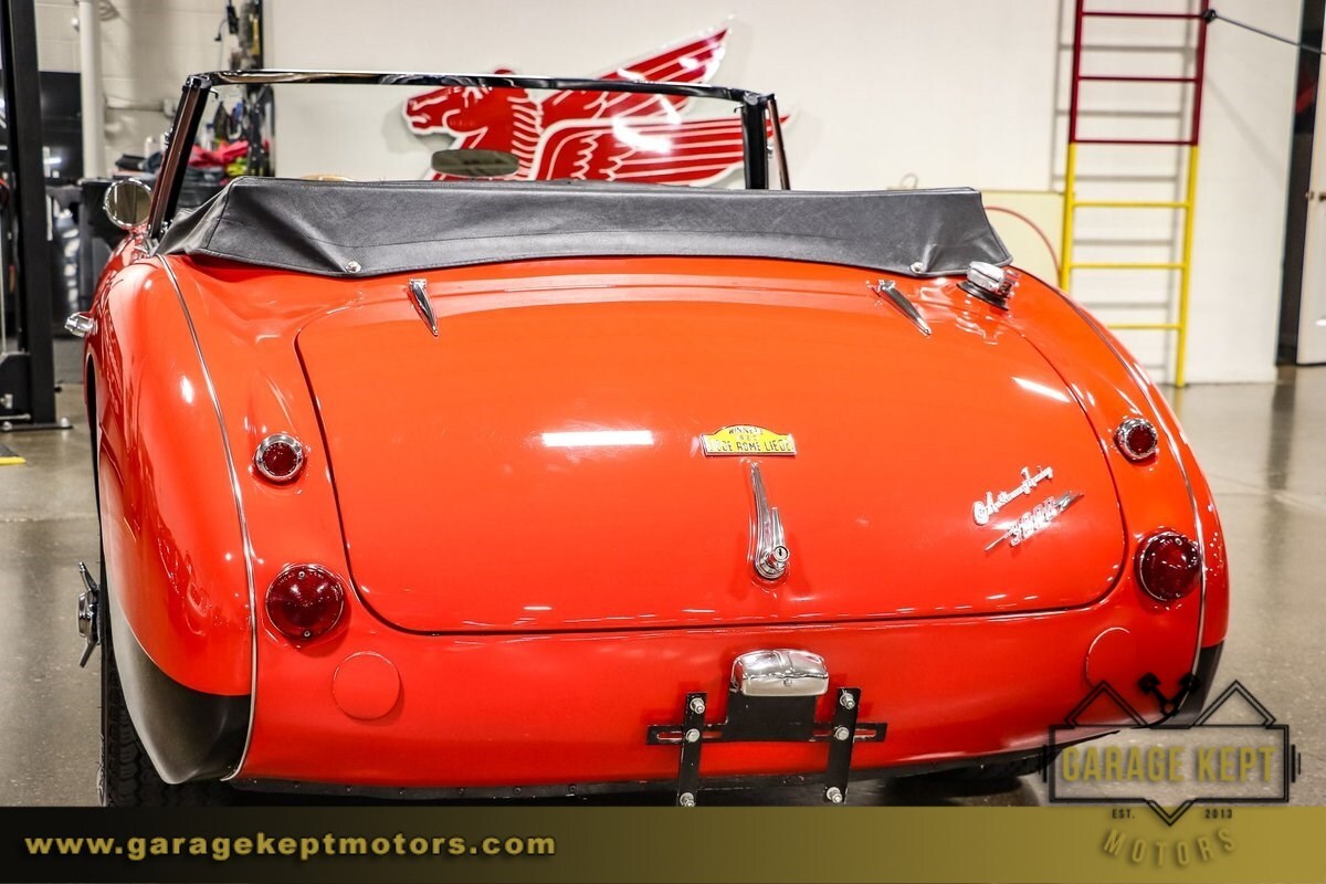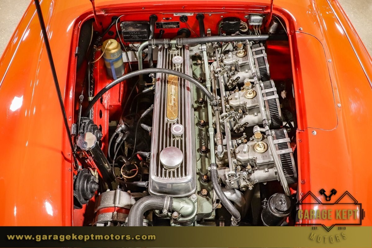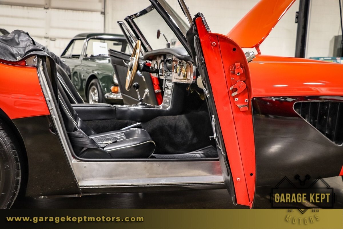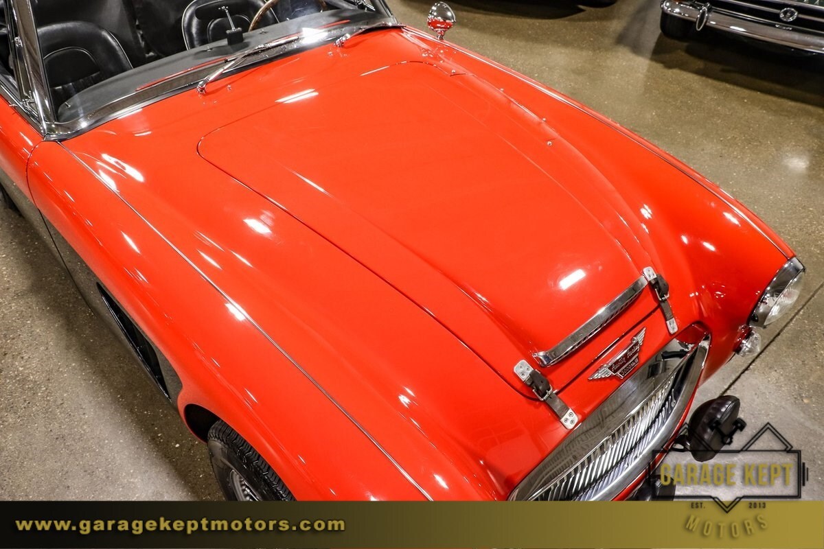 After a 15 year production run, the body style of the Austin Healey 100/100-6/3000 moved from a production car, to another cog in the wheel of British motoring history. Circuit racing at places like LeMans or Sebring, Rallye Racing in locations like Monte Carlo, or enjoyed by everyday blokes in places like London, the Austin Healey 3000 enjoyed a storied history in the early days, as well as now. It's another British Roadster which seemed to have a face - a smiling one at that, which all sorts of car enthusiasts recognize. To those who are very familiar with the Healey 3000 cars, the Mark III BJ8 like the car you see here, is a desirable variant, which offered a pair of SU carburetors, an upgraded dashboard with wood trim, and slightly different exterior lighting from that of the Mark II. The BJ8, known by some as the Big Healey, was active and successful in circuit racing and rallying, and this car certainly gives a nod to racing Healeys of the past. This particular car is finished in a striking two tone red and black exterior, with a black interior, capped with a black soft top.