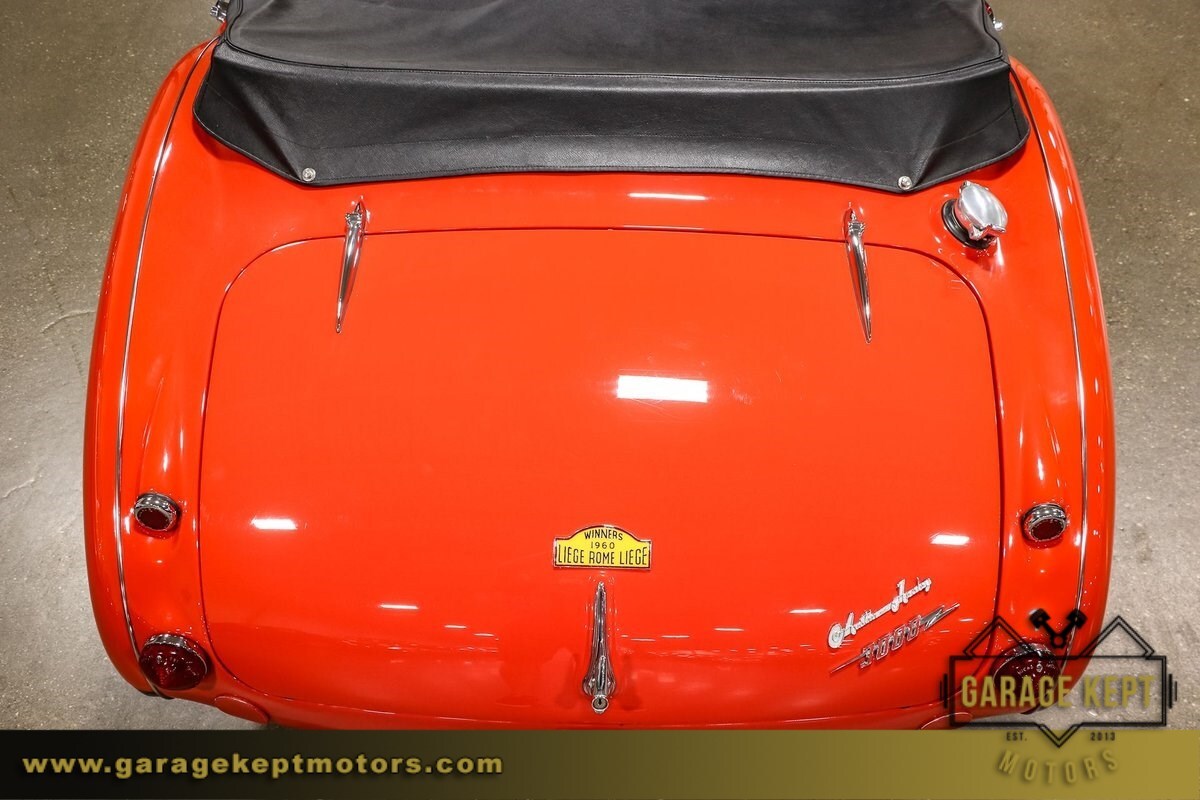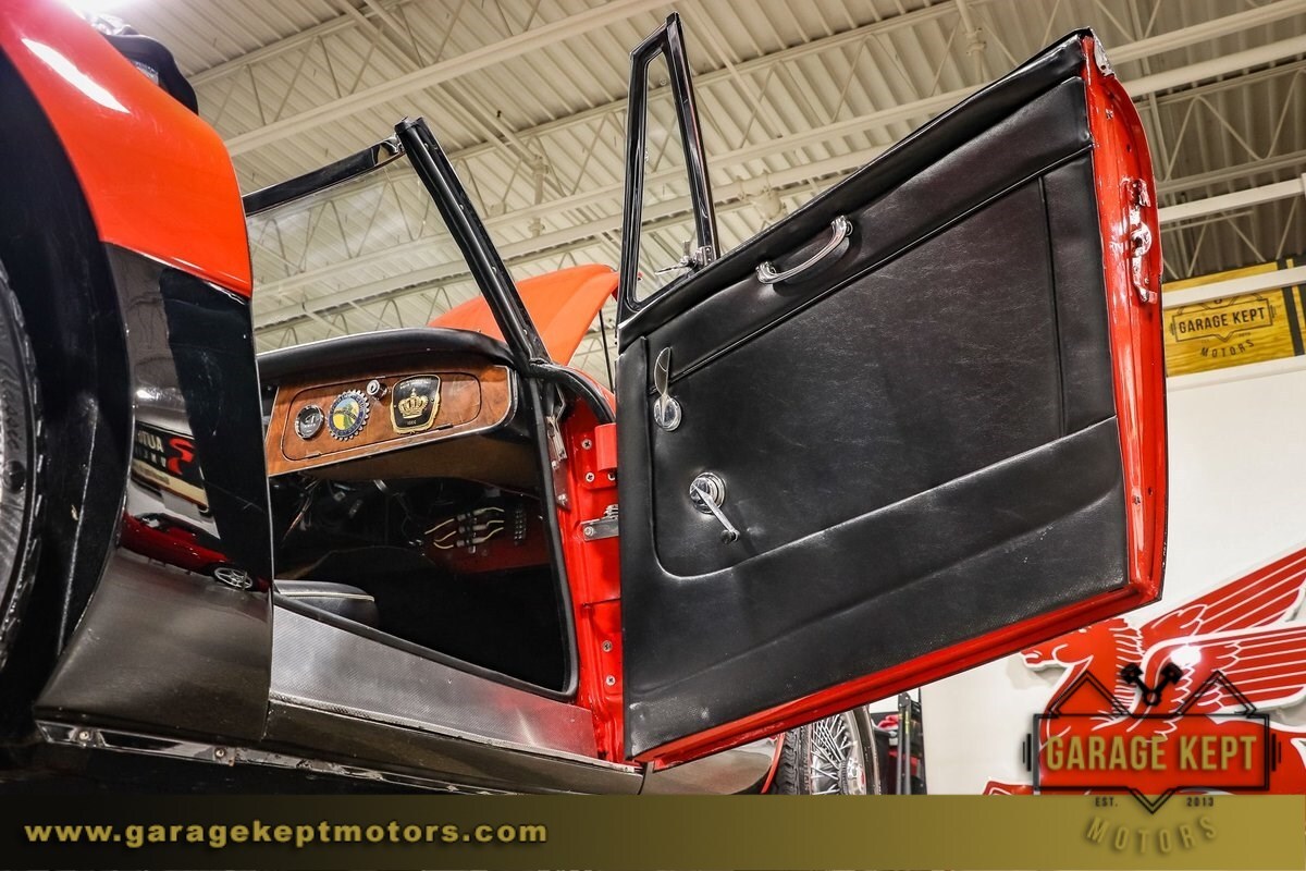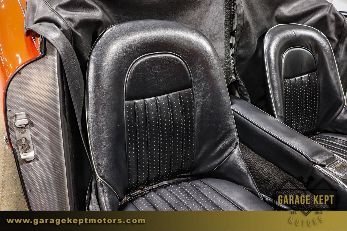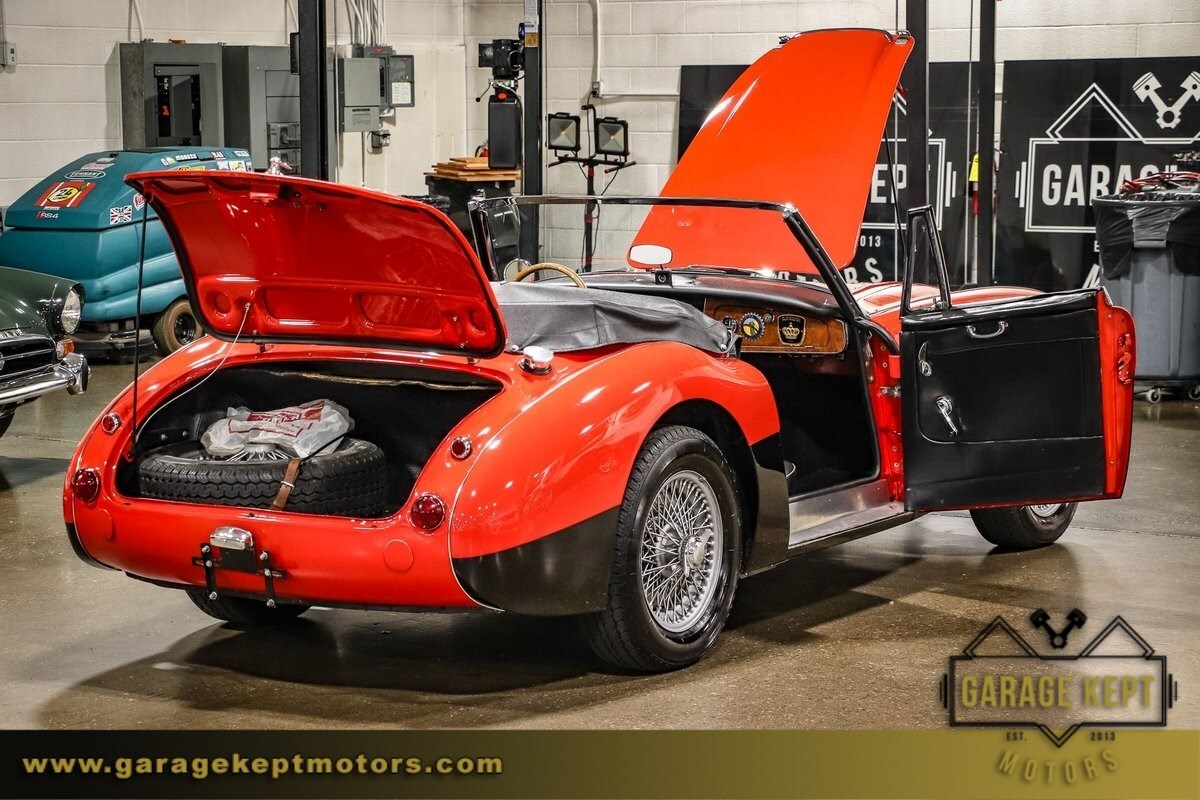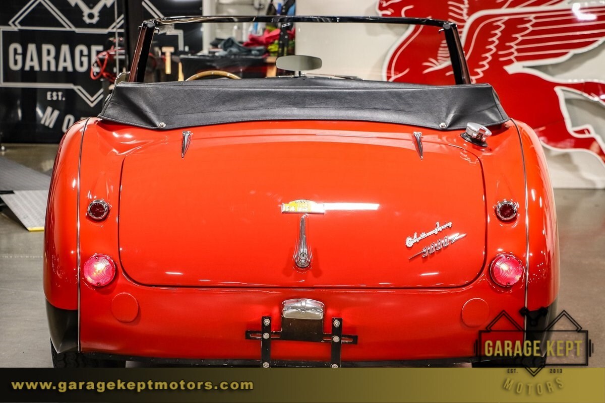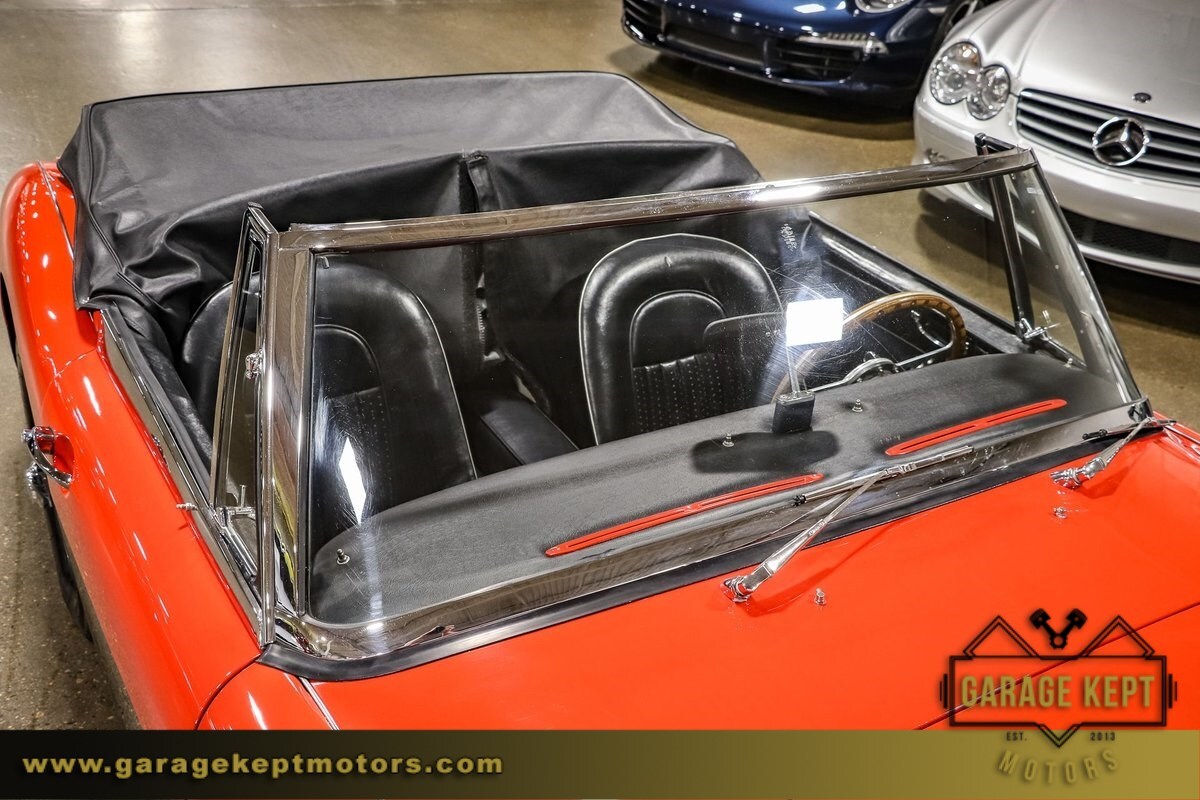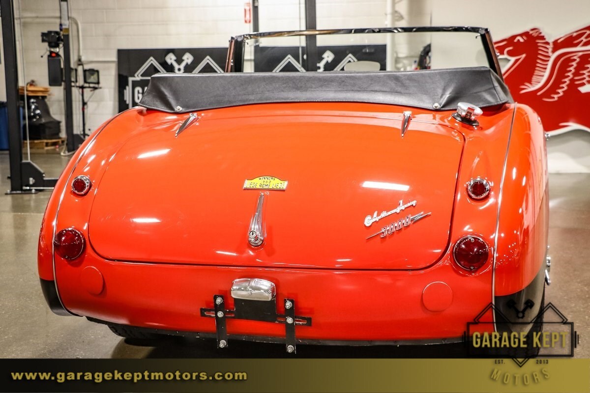 After a 15 year production run, the body style of the Austin Healey 100/100-6/3000 moved from a production car, to another cog in the wheel of British motoring history. Circuit racing at places like LeMans or Sebring, Rallye Racing in locations like Monte Carlo, or enjoyed by everyday blokes in places like London, the Austin Healey 3000 enjoyed a storied history in the early days, as well as now. It's another British Roadster which seemed to have a face - a smiling one at that, which all sorts of car enthusiasts recognize. To those who are very familiar with the Healey 3000 cars, the Mark III BJ8 like the car you see here, is a desirable variant, which offered a pair of SU carburetors, an upgraded dashboard with wood trim, and slightly different exterior lighting from that of the Mark II. The BJ8, known by some as the Big Healey, was active and successful in circuit racing and rallying, and this car certainly gives a nod to racing Healeys of the past. This particular car is finished in a striking two tone red and black exterior, with a black interior, capped with a black soft top.