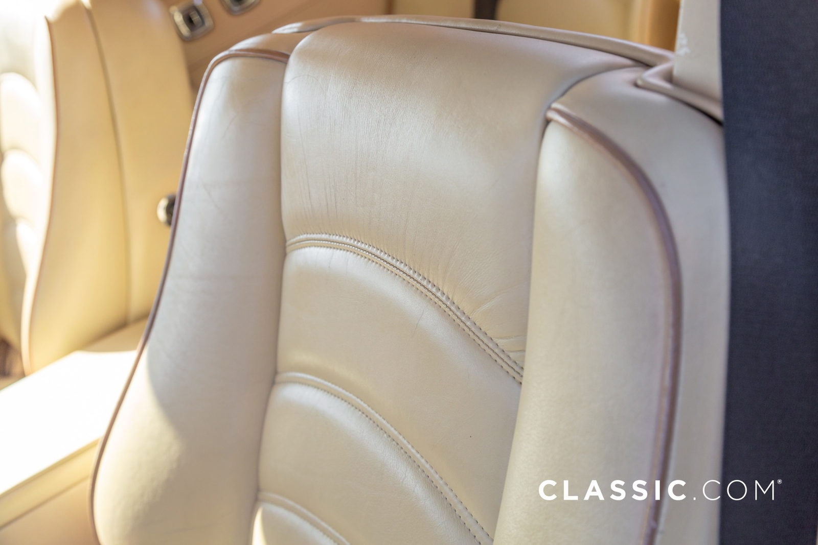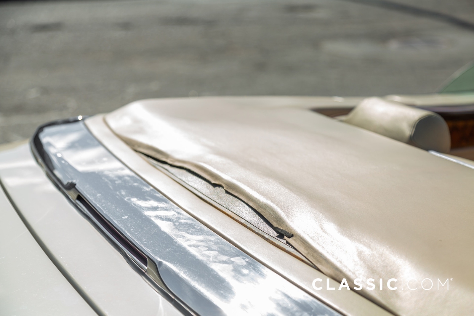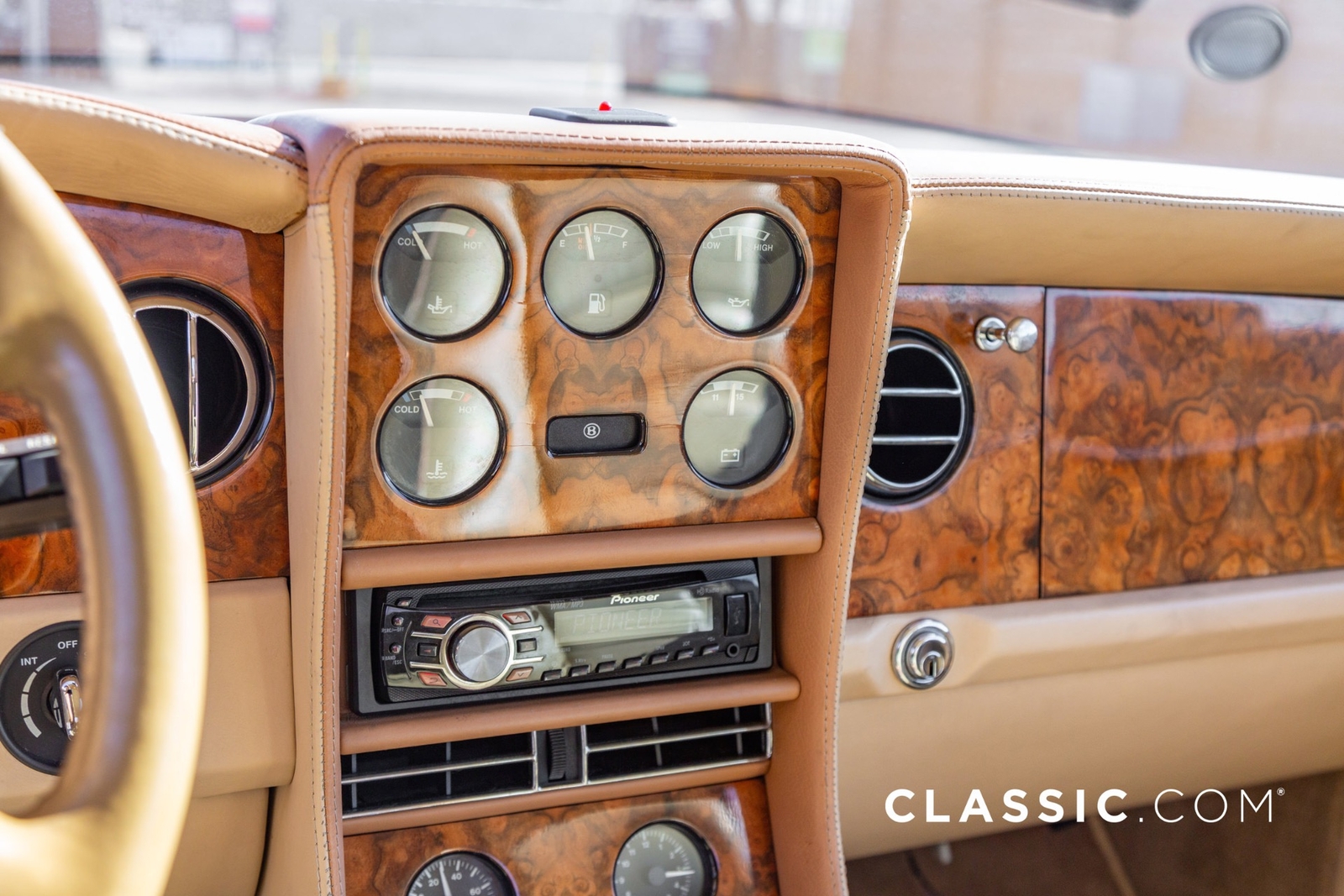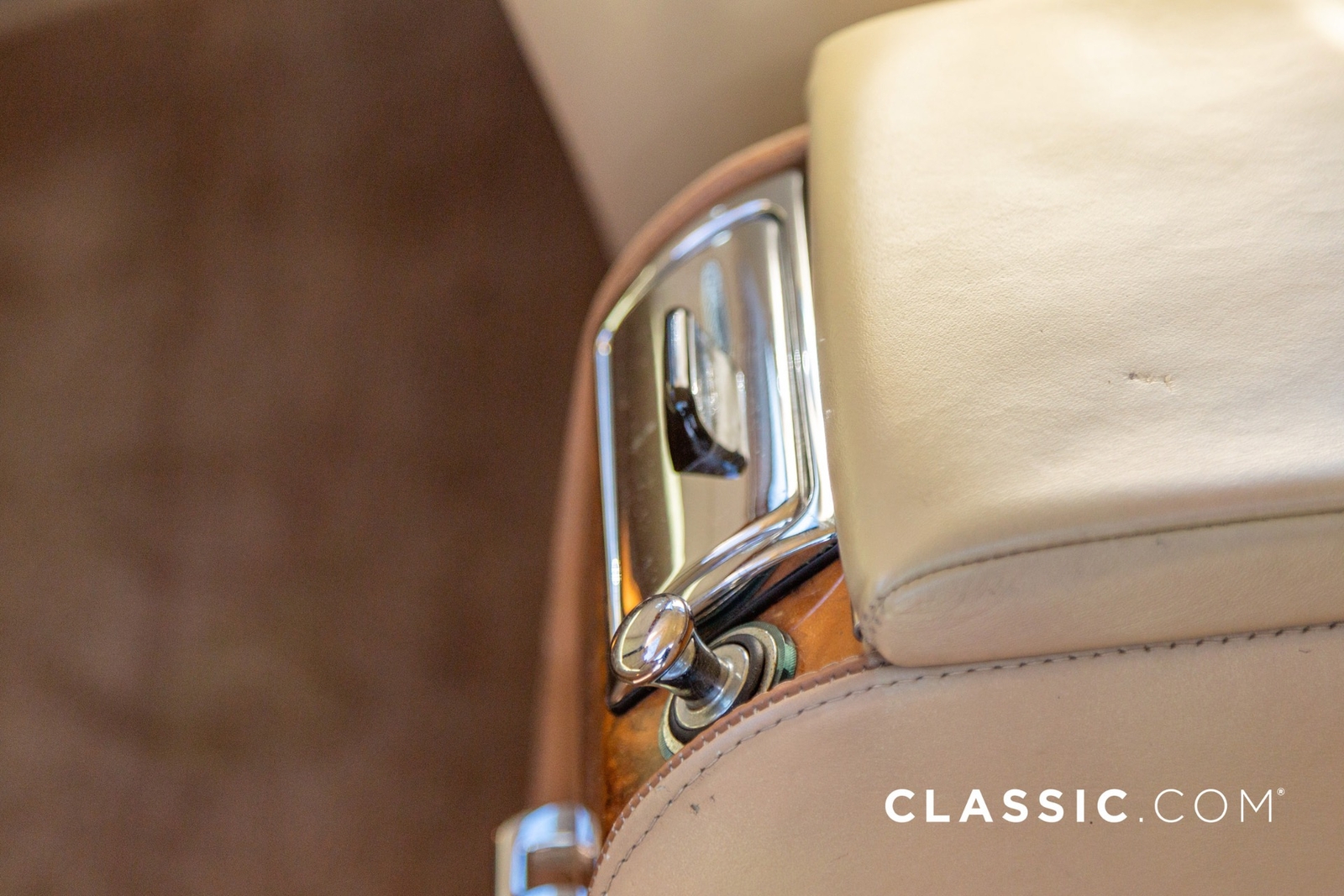 At its core, a powerful 6.75L turbocharged V8 engine delivers performance, and the four-speed automatic transmission ensures a driving experience that is both smooth and dynamic. The Azure features a striking Magnolia-colored exterior, enhanced by an interior with premium beige leather upholstery. Its convertible top, in a matching tone, offers the flexibility to enjoy the outdoors. The vehicles dashboard, an exquisite example of craftsmanship in dark wood, is equipped with analog gauges that combine nostalgic appeal with precise performance metrics.