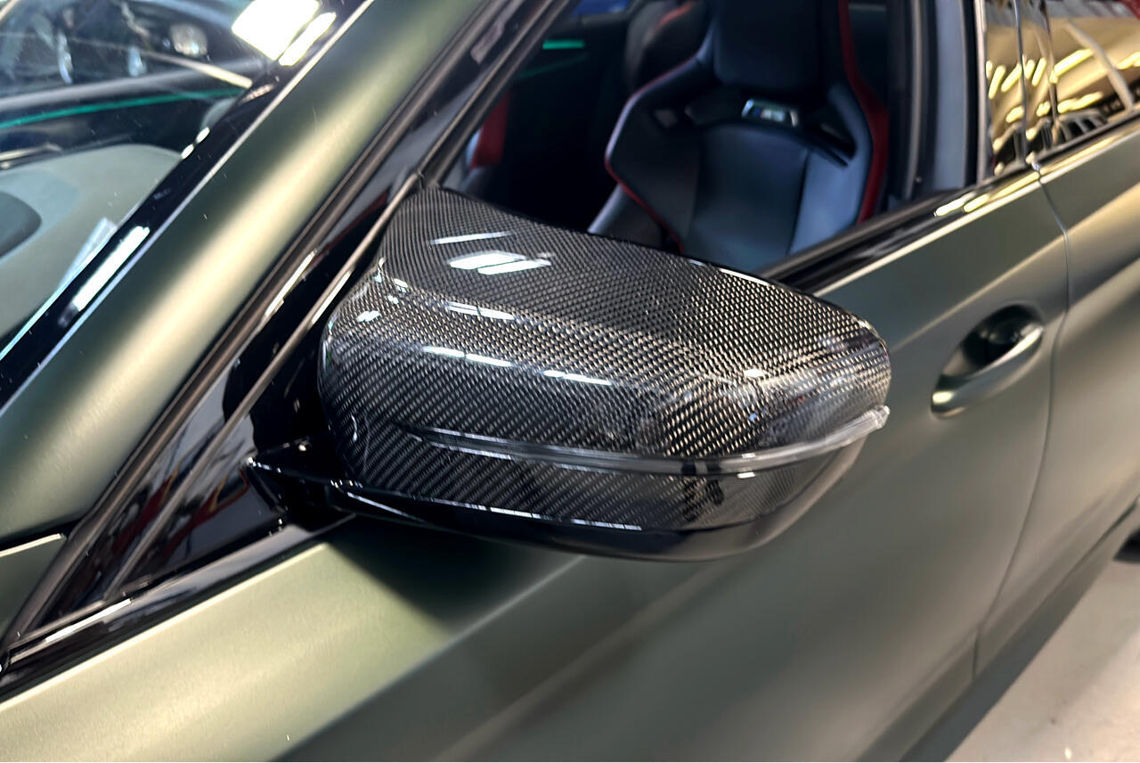 • Carbon Fiber Power Heated Side Mirrors w/Driver Auto Dimming, Power Folding and Turn Signal Indicator