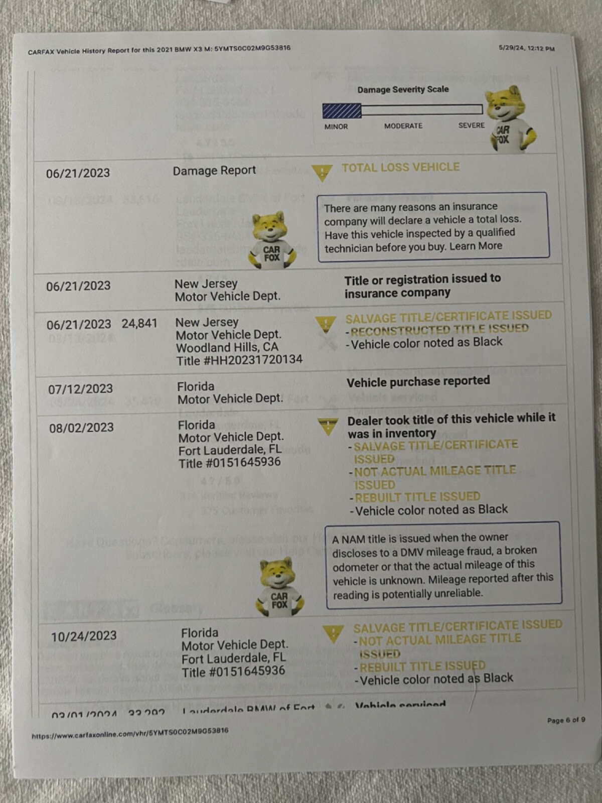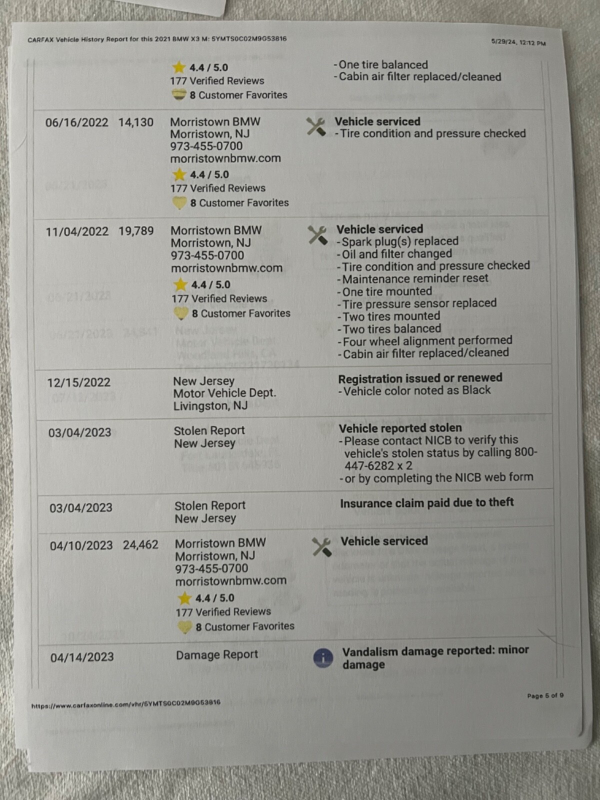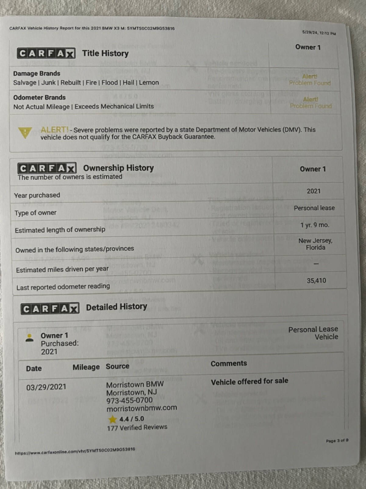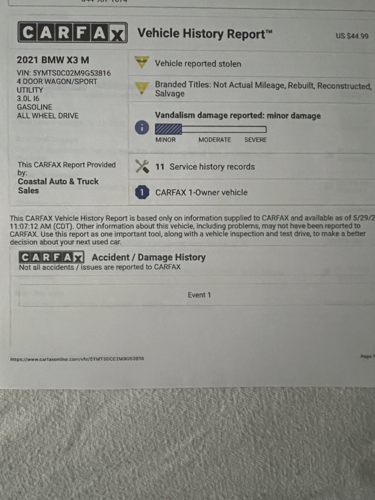 2021 BMW X3M REBUILT TITLE (theft recovery)- 473HP 3.0L I6 (S58)- Vin# 5YMTS0C02M9G53816- Factory Specs/Options:- Panorama glass roof- Heads up display- Harman/Kardon Surround sound- Connected package Professional- Apple car play- BMW Live operating area Professional- BMW Gesture Control- WLAN HotSpot- Adaptive Headlights- Driving Assistant-Parking Assistance system Plus- Steering wheel heater- Comfort AccessThis car was a theft recovery that State Farm paid out 65,000 to the owner and then car was recovered. When this happens they declare car a total loss! Hence a rebuilt title. Thieves removed the GPS navigation module and also the SOS telephone. I took the car to FT.Lauderdale BMW and had everything repaired/replaced. Invoices are attached. I also had the 36,000 mile service done on the car. This has been my daily driver for almost a year. Car needs nothing but a new owner! I HAVE ATTACHED AN UPDATED CARFAX THAT SHOWS THE SERVICE WORK AT BMW! THIS CAR HAD NO BODY DAMAGE! NO PAINTWORK. I HAVE ADDED PICTURES OF THE VEHICLE WHEN PURCHASED FROM THE AUCTION. THIS CAR IS 100%