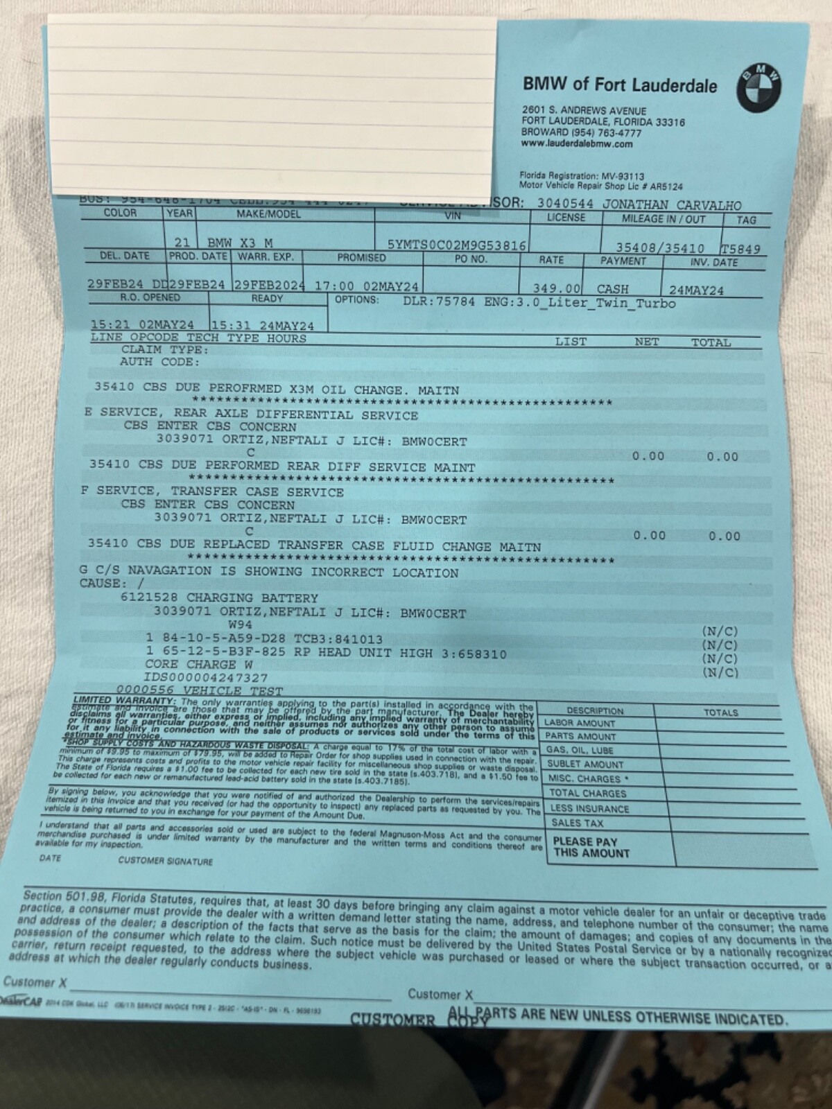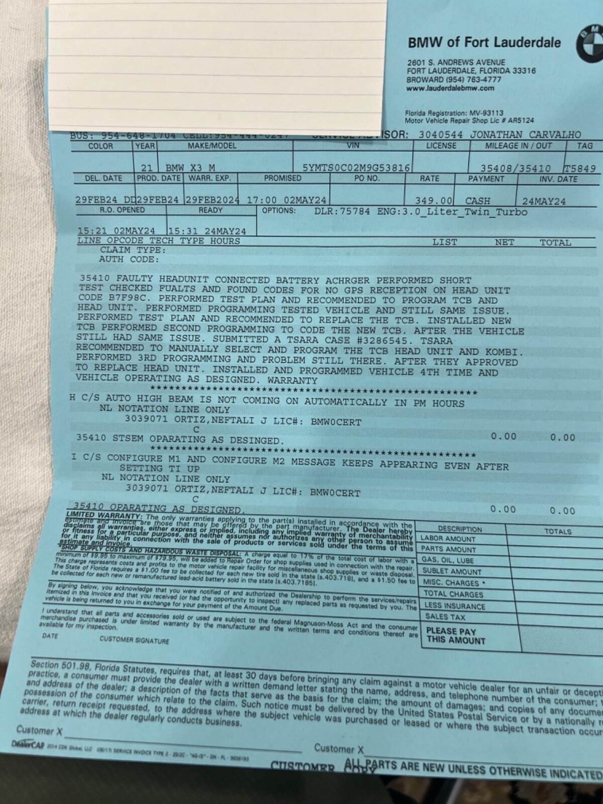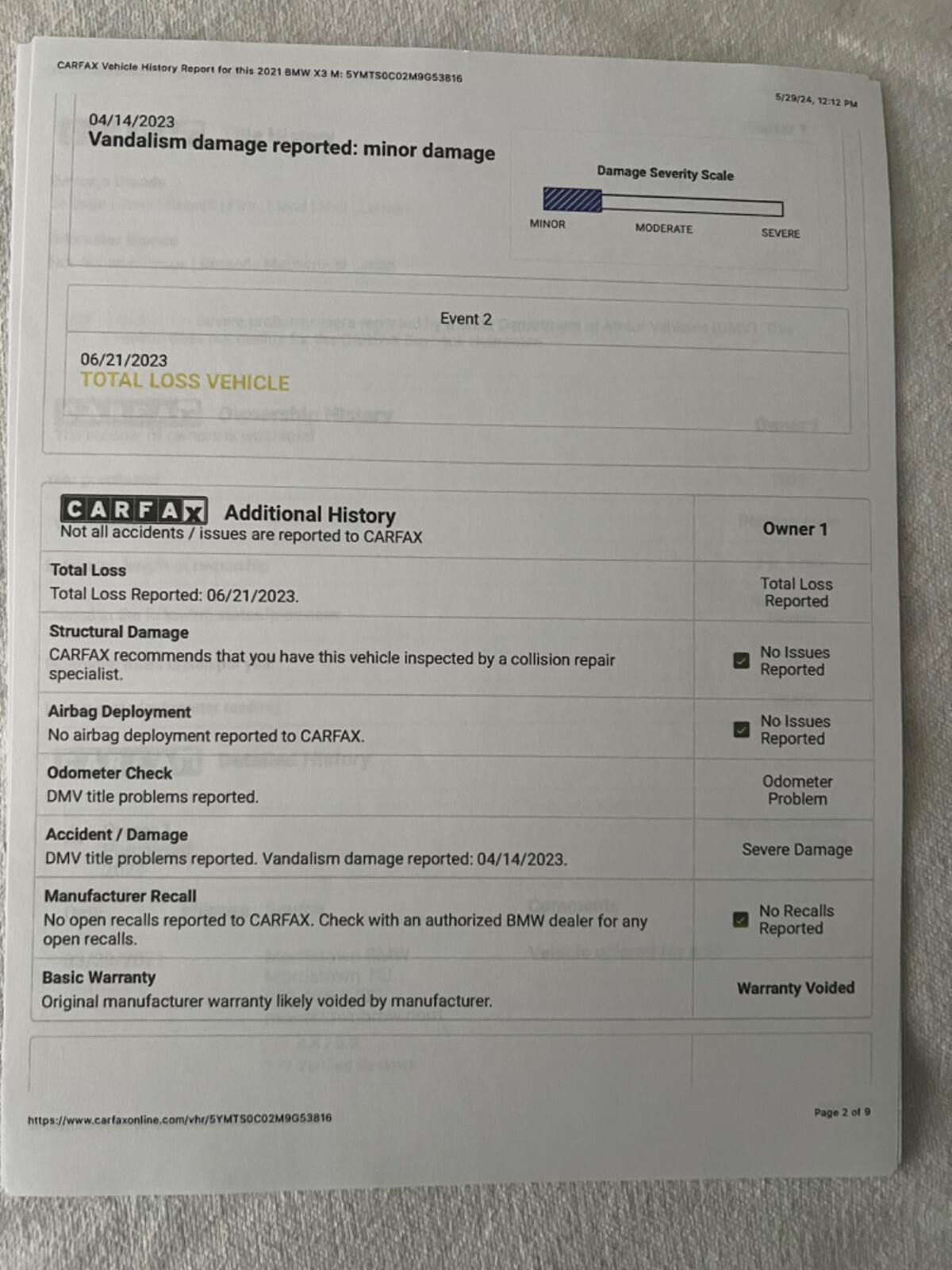2021 BMW X3M REBUILT TITLE (theft recovery)- 473HP 3.0L I6 (S58)- Vin# 5YMTS0C02M9G53816- Factory Specs/Options:- Panorama glass roof- Heads up display- Harman/Kardon Surround sound- Connected package Professional- Apple car play- BMW Live operating area Professional- BMW Gesture Control- WLAN HotSpot- Adaptive Headlights- Driving Assistant-Parking Assistance system Plus- Steering wheel heater- Comfort AccessThis car was a theft recovery that State Farm paid out 65,000 to the owner and then car was recovered. When this happens they declare car a total loss! Hence a rebuilt title. Thieves removed the GPS navigation module and also the SOS telephone. I took the car to FT.Lauderdale BMW and had everything repaired/replaced. Invoices are attached. I also had the 36,000 mile service done on the car. This has been my daily driver for almost a year. Car needs nothing but a new owner! I HAVE ATTACHED AN UPDATED CARFAX THAT SHOWS THE SERVICE WORK AT BMW! THIS CAR HAD NO BODY DAMAGE! NO PAINTWORK. I HAVE ADDED PICTURES OF THE VEHICLE WHEN PURCHASED FROM THE AUCTION. THIS CAR IS 100%