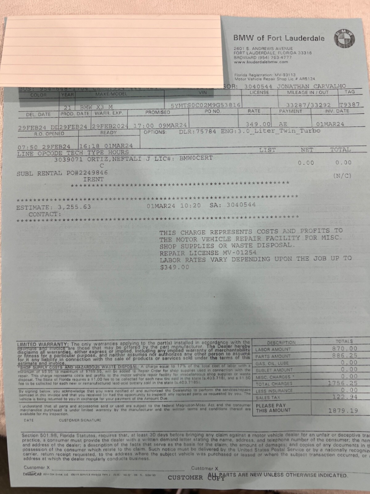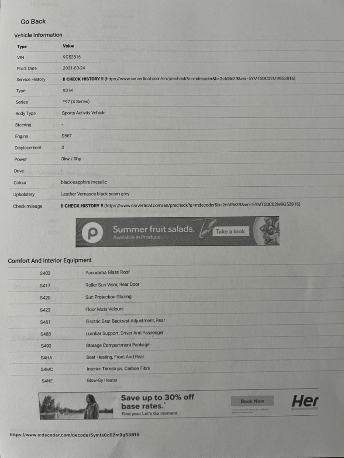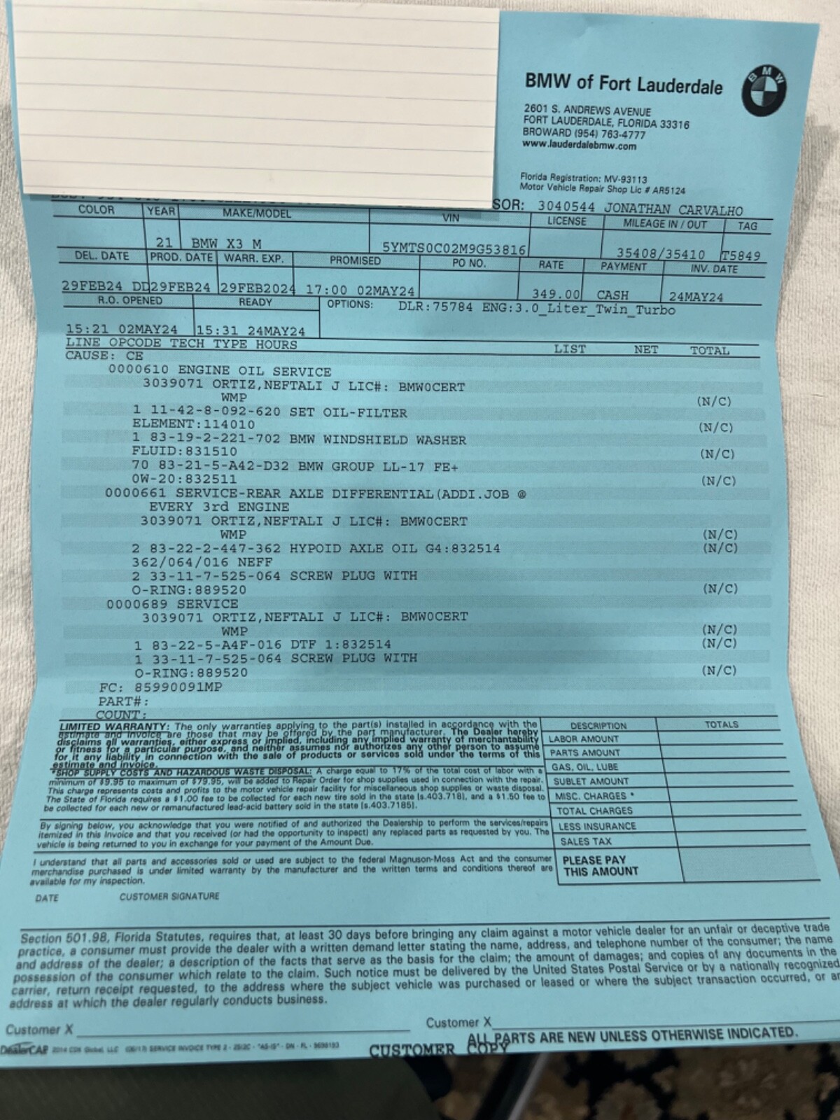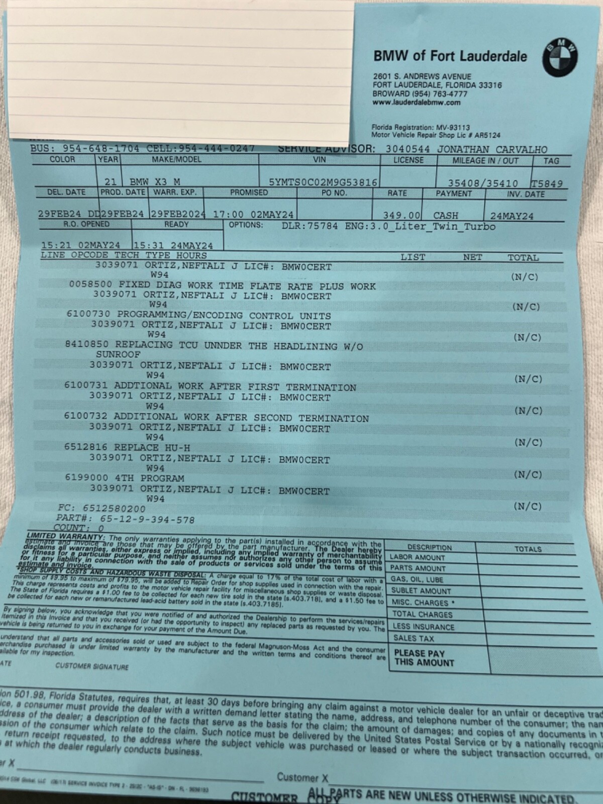 2021 BMW X3M REBUILT TITLE (theft recovery)- 473HP 3.0L I6 (S58)- Vin# 5YMTS0C02M9G53816- Factory Specs/Options:- Panorama glass roof- Heads up display- Harman/Kardon Surround sound- Connected package Professional- Apple car play- BMW Live operating area Professional- BMW Gesture Control- WLAN HotSpot- Adaptive Headlights- Driving Assistant-Parking Assistance system Plus- Steering wheel heater- Comfort AccessThis car was a theft recovery that State Farm paid out 65,000 to the owner and then car was recovered. When this happens they declare car a total loss! Hence a rebuilt title. Thieves removed the GPS navigation module and also the SOS telephone. I took the car to FT.Lauderdale BMW and had everything repaired/replaced. Invoices are attached. I also had the 36,000 mile service done on the car. This has been my daily driver for almost a year. Car needs nothing but a new owner! I HAVE ATTACHED AN UPDATED CARFAX THAT SHOWS THE SERVICE WORK AT BMW! THIS CAR HAD NO BODY DAMAGE! NO PAINTWORK. I HAVE ADDED PICTURES OF THE VEHICLE WHEN PURCHASED FROM THE AUCTION. THIS CAR IS 100%
