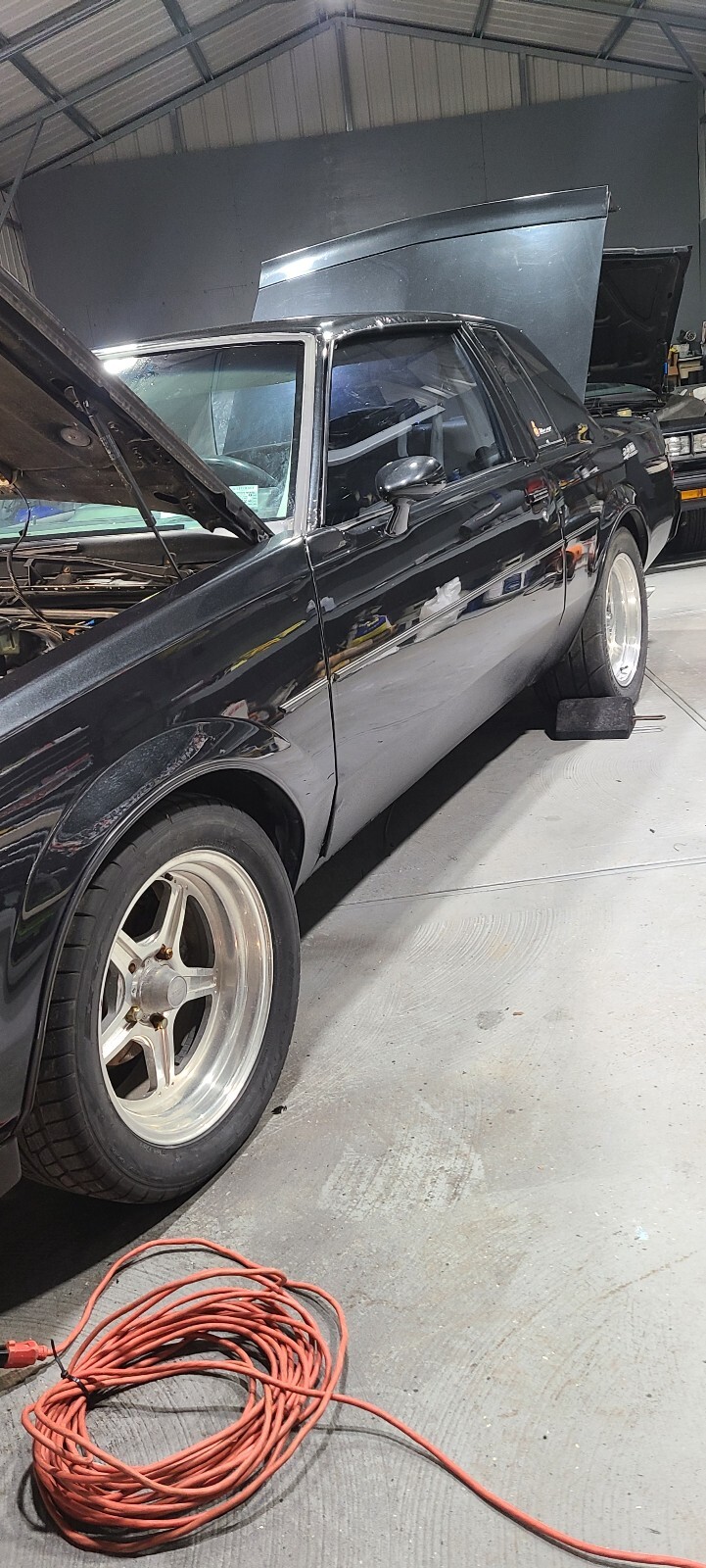 This 1984 Buick Grand National Canadian car 1 of 5. 1987 intercooled drivetrain is a really sharp looking car. It is a dark blue metallic, very nice color. It's is a SOLID car with no rust or rot underneath at all! I purchased this car off a friend that has recently passed so I'm limited on what exactly is inside the engine. When the car was painted about 5 years ago over the doors it started bubbling. I'd say to mint this car out the top half of the car has to be repaired. It has a 9" ford rear with a transmission and converter built by Dave Hussic. Wellwood brakes, digital DIKOTA DASH and factory digital climate control, 17" rims and many more goodies. With a little bit of TLC, this will be a bad ass ride! I just went over the car with a reputable Buick GN mechanic and tuned the car, replaced valve cover gaskets, rear main seal, oil pan gasket, fresh oil, plugs and wires. The car runs good with no leaks.