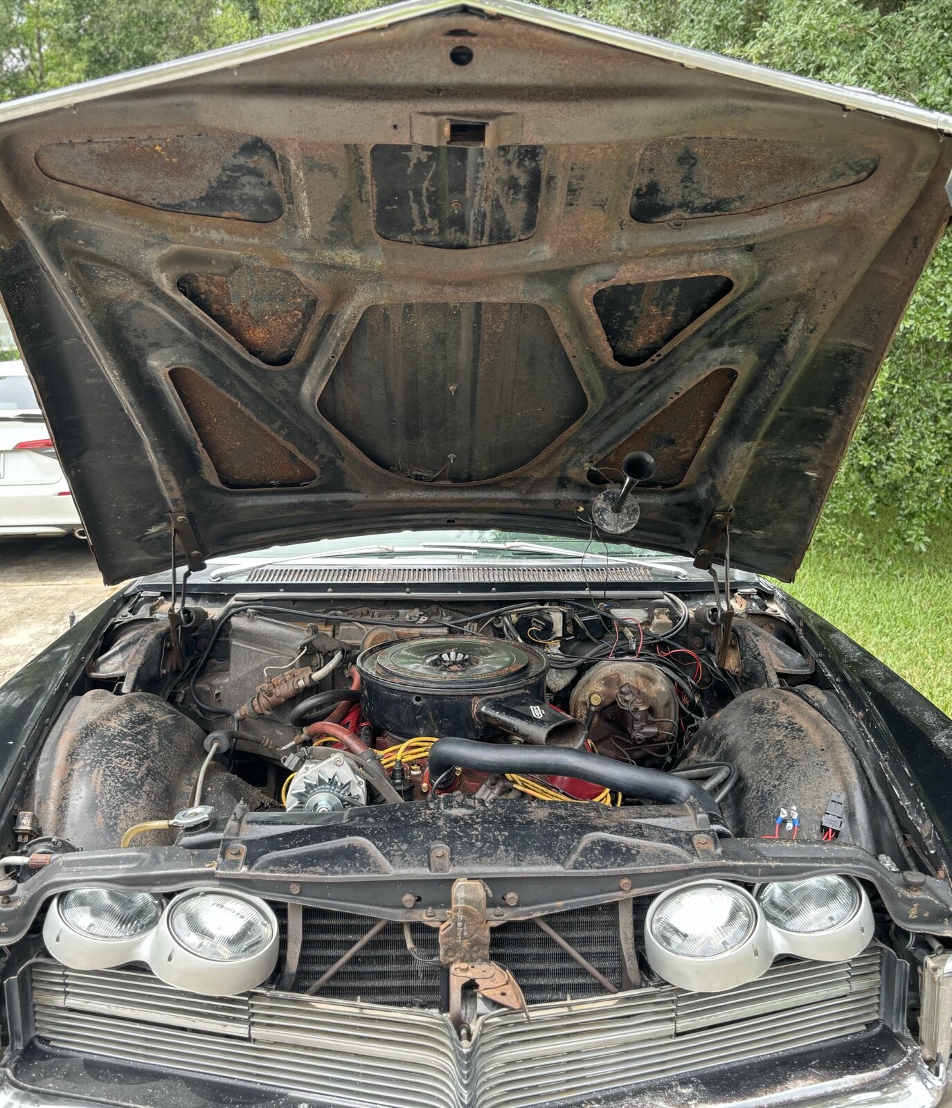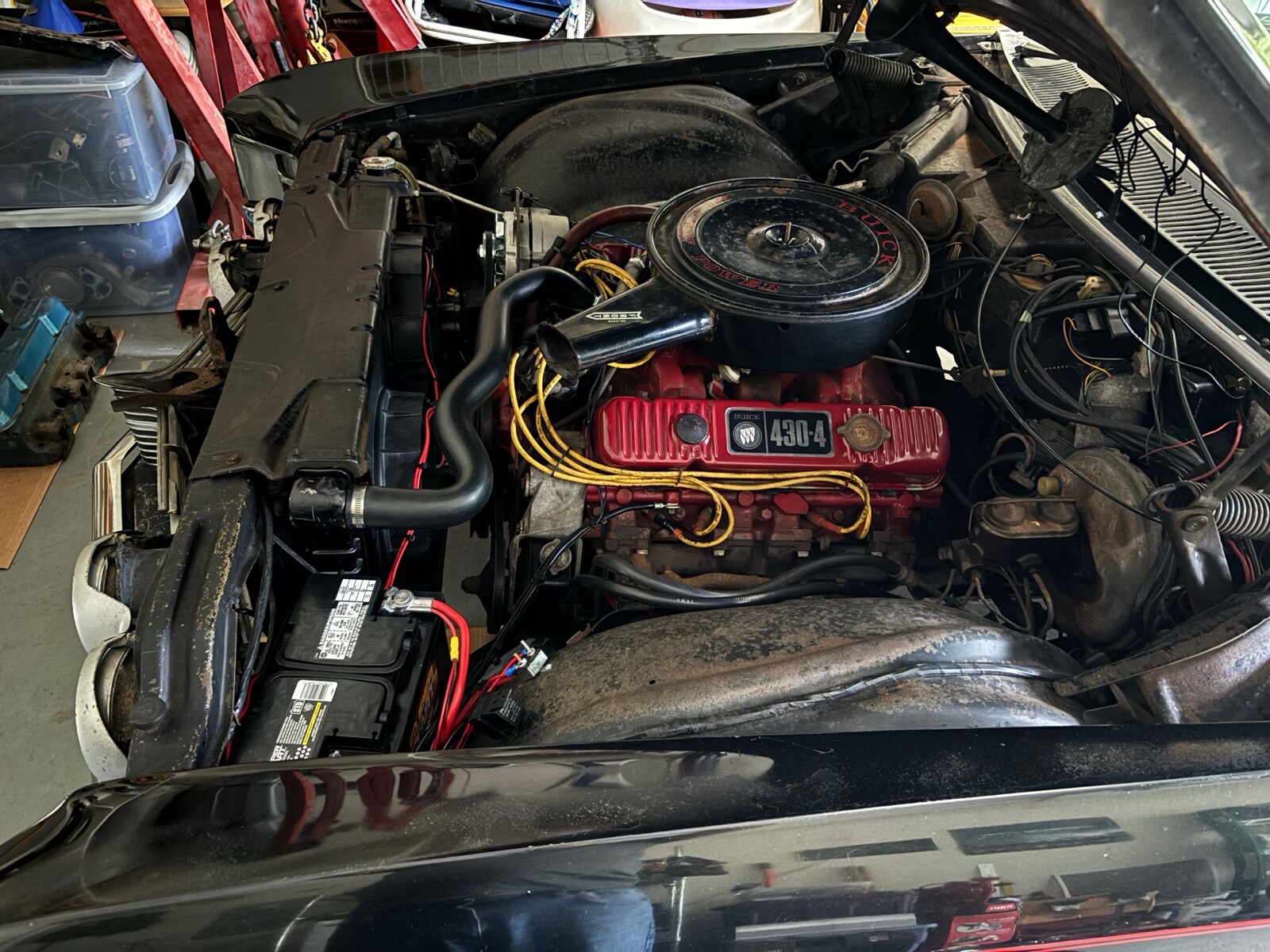 430 big block, super turbine 400 transmission, posi-traction rear end, deluxe interior, power steering, tilt wheel, power brakes, power seat, power windows, power antenna, vacuume door locks and trunk release, four note horn, rear window defroster, electro-cruise control, am radio. New oem carburetor, electric cooling fan, belts, battery, battery cables, alternator, head lights, fuel cell, fuel lines, thermostat, radiator hoses, air filter, oil filter, transmission filter, transmission lines, all fluids. Also included: new stainless steel fuel sending unit for oem gas tank, factory service manuals vol. 1 and 2, original Rochester carburetor, many other parts, see full description.