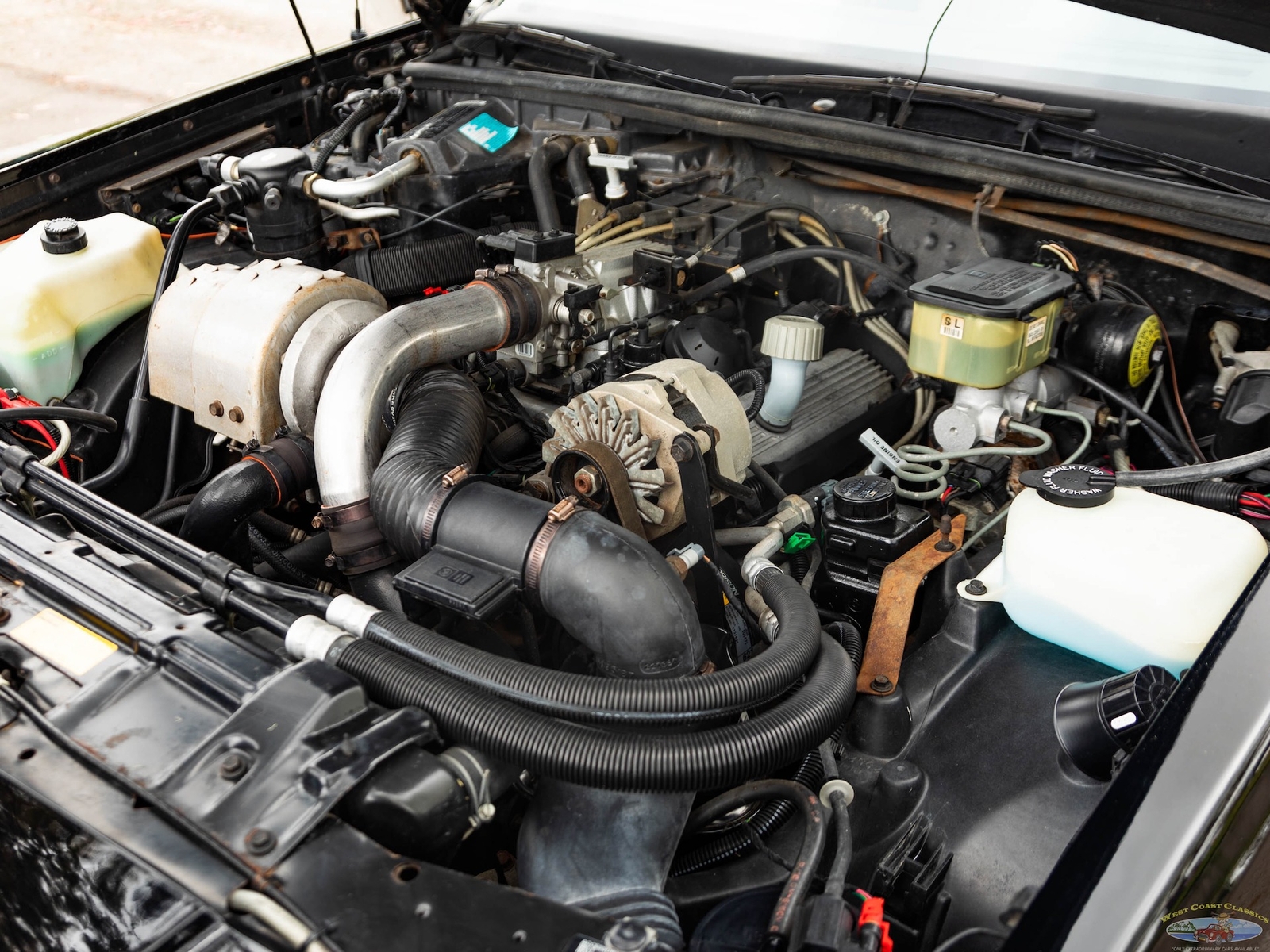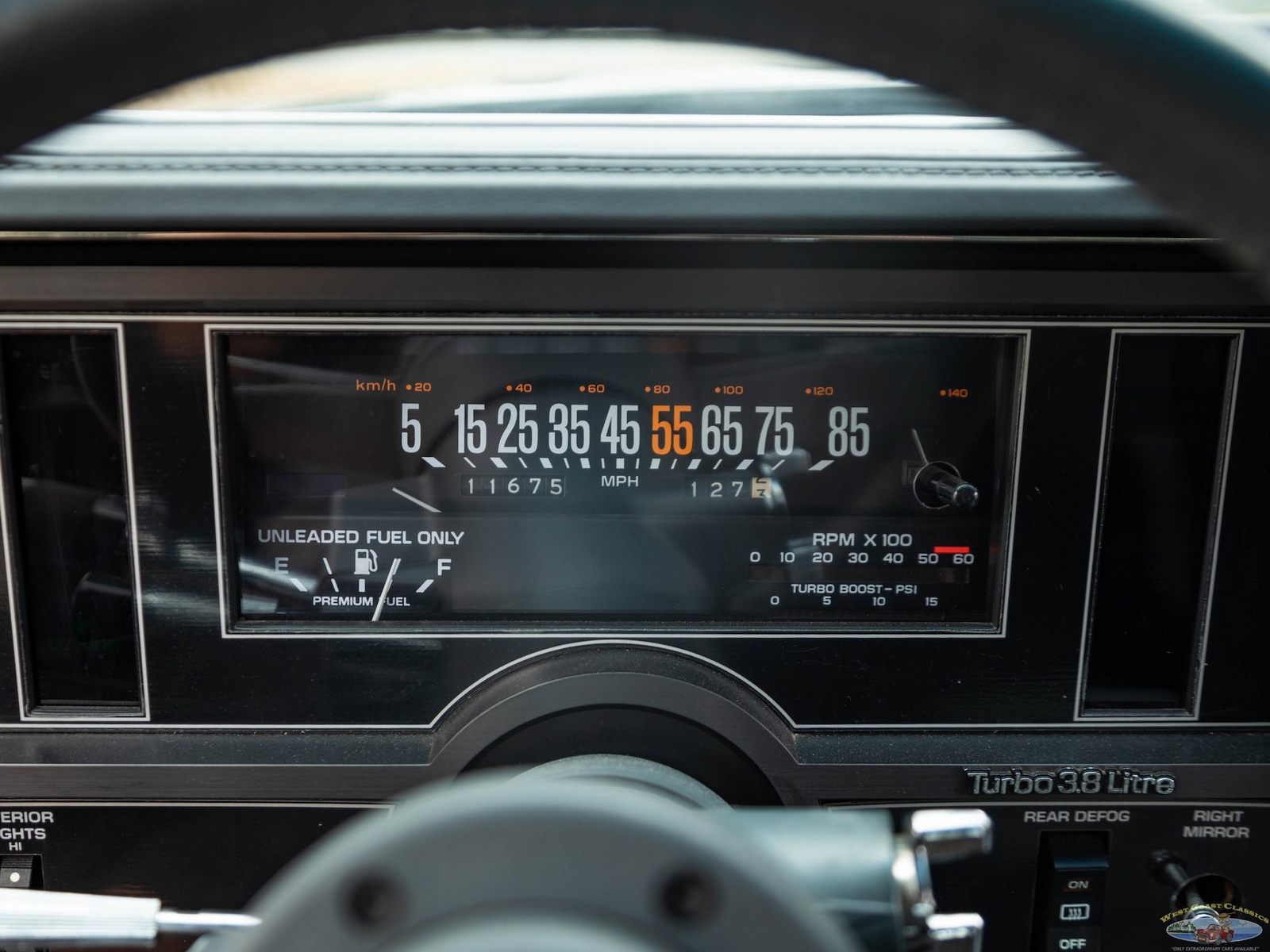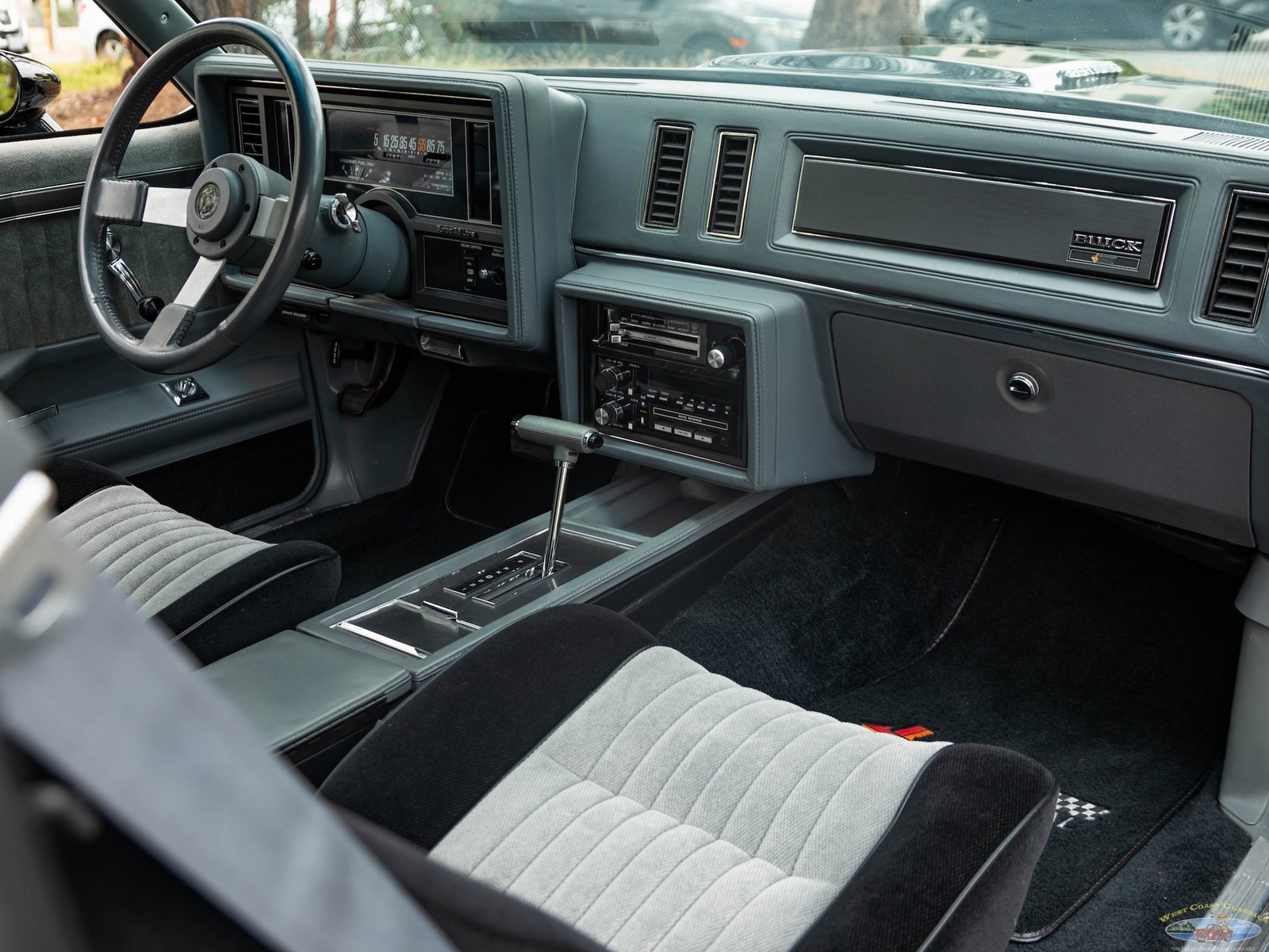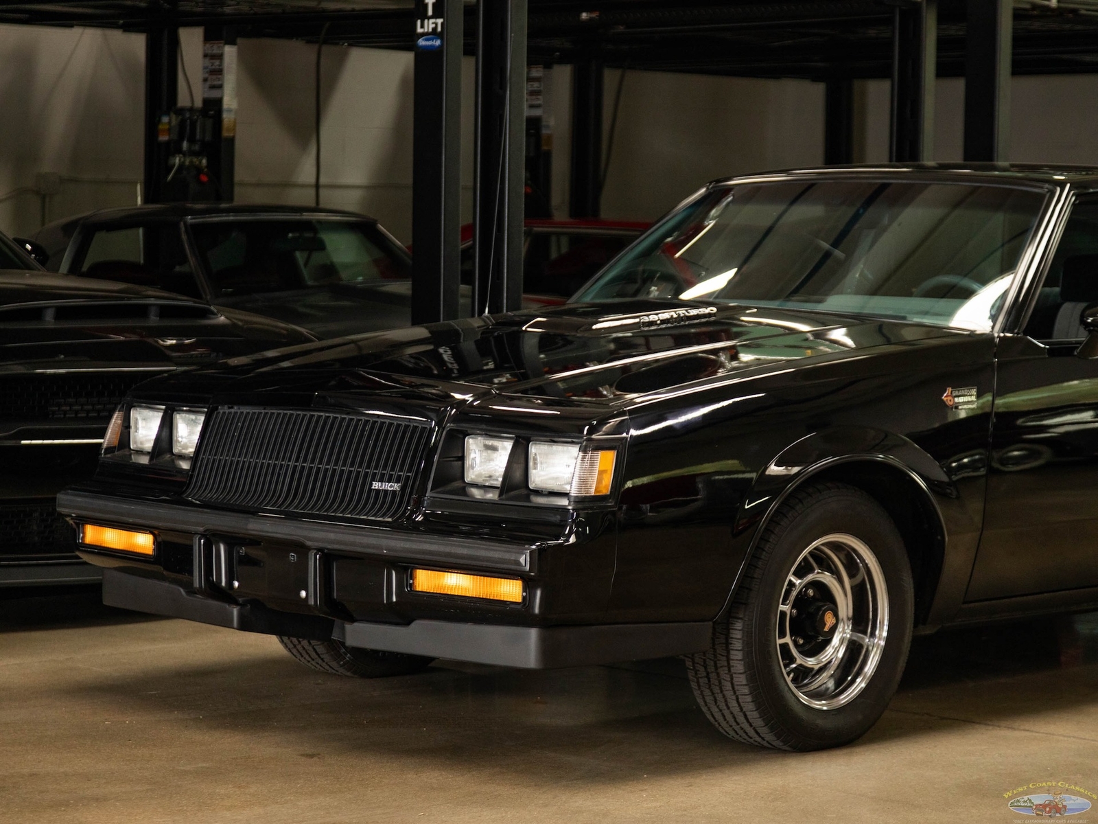 In 1986, the Buick Regal and its virtually identical cousin the Regal Grand National, wasn't selling in big numbers (only 2,384 T-Types, 5,512 Grand Nationals; built in 1986) but it was destined from the start to become a collectible classic car as it was attracting enthusiasts into Buick showrooms with its dramatic looks and turbo-charged 3.8L V6 engines with sequential fuel injection rated at 235 bhp. Virtually identical cousins, the T-Type had a clone but a clone with a twist, a T-Type with the Grand National package; it boasted a 'Darth Vader' look in monotone black only and retailed for an extra $635 and included the same turbo-charged engine, quick ratio power steering, an instrumentation group, sports mirrors with left-hand remote control, a four-speed automatic transmission, air conditioning and P215/65R15 black sidewall tires! These Turbo Buick's became one of the top muscle cars of the 1980's, as eventually demonstrated by the top-of-the-line renown and now legendary 1987 Grand National GNX (Grand National Experimental), made in partnership with 'McLaren Performance Technologies/ASC', of which only 547 were built and which boasted a further reportedly 41HP for a total of 276HP, although Buick famously underrated the GNX as actual output was closer to 300HP! A bigger turbo-charger and inter-cooler along with other enhancements gave this hot rod over 300 bhp and "Car & Driver's" test showed 0-60mph in 4.7 seconds, which amongst factory 1987 cars meant that only Porsche' 911 Turbo could match the GNX's acceleration!