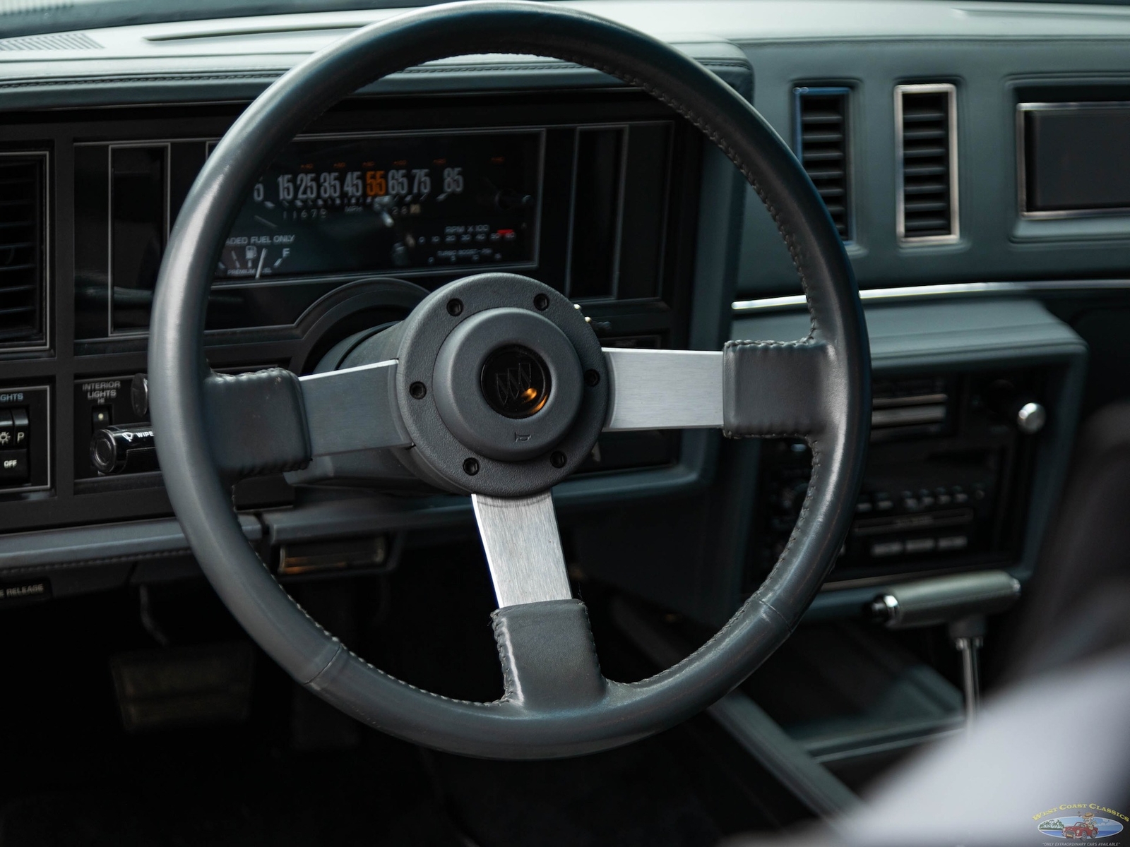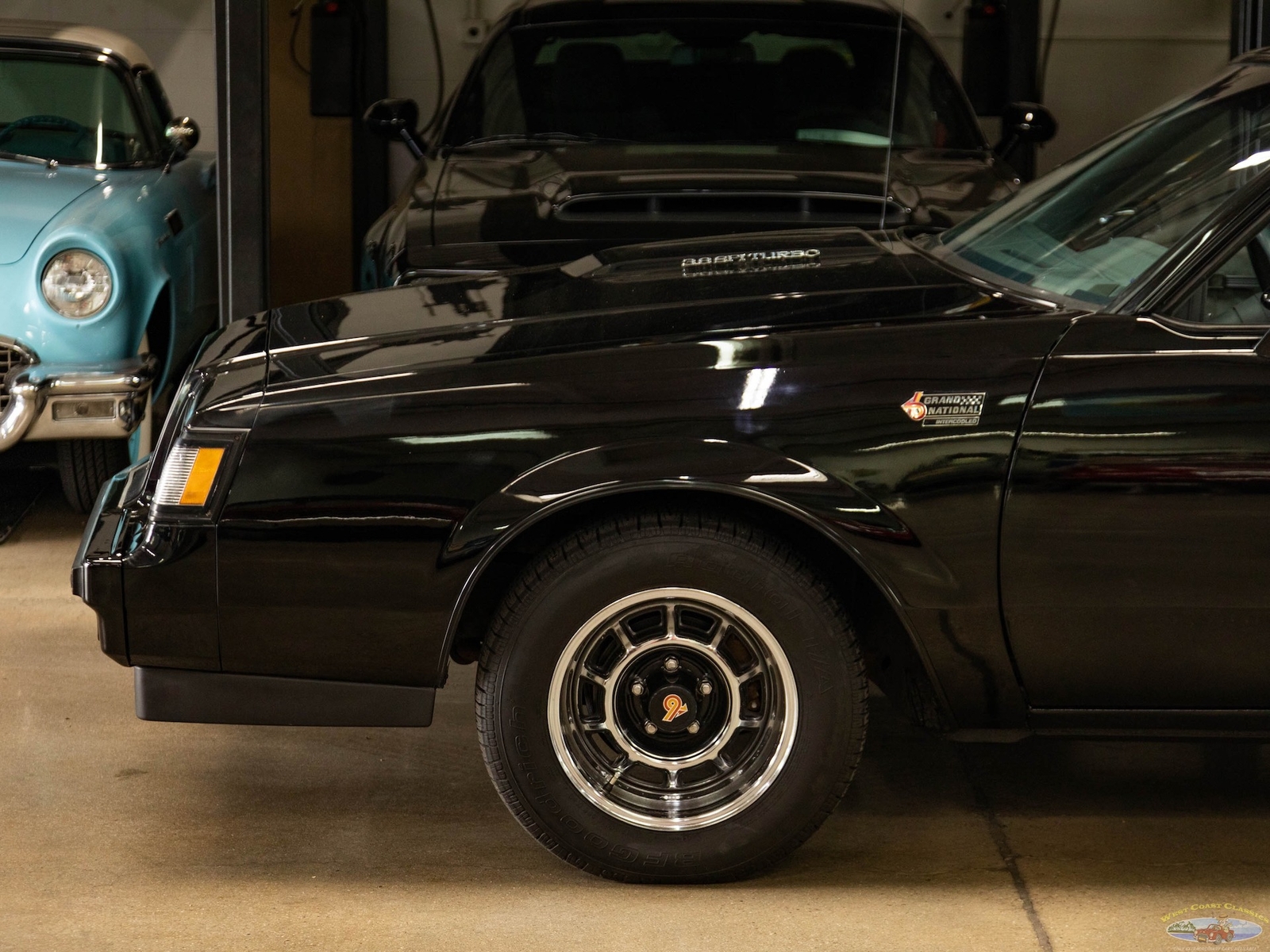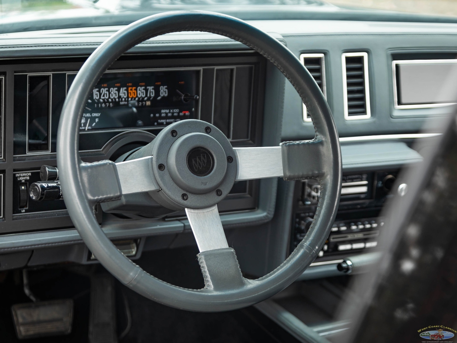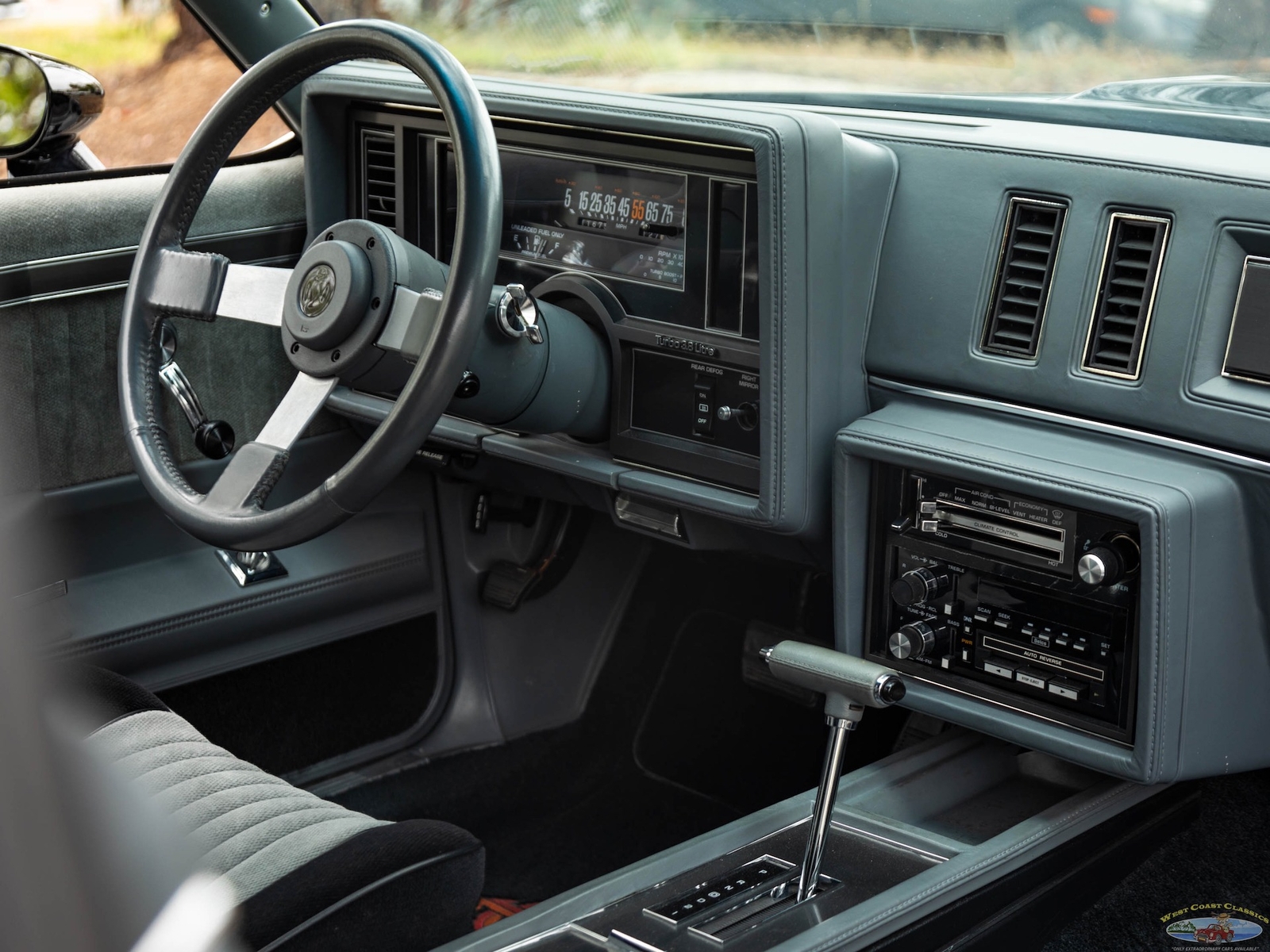 In 1986, the Buick Regal and its virtually identical cousin the Regal Grand National, wasn't selling in big numbers (only 2,384 T-Types, 5,512 Grand Nationals; built in 1986) but it was destined from the start to become a collectible classic car as it was attracting enthusiasts into Buick showrooms with its dramatic looks and turbo-charged 3.8L V6 engines with sequential fuel injection rated at 235 bhp. Virtually identical cousins, the T-Type had a clone but a clone with a twist, a T-Type with the Grand National package; it boasted a 'Darth Vader' look in monotone black only and retailed for an extra $635 and included the same turbo-charged engine, quick ratio power steering, an instrumentation group, sports mirrors with left-hand remote control, a four-speed automatic transmission, air conditioning and P215/65R15 black sidewall tires! These Turbo Buick's became one of the top muscle cars of the 1980's, as eventually demonstrated by the top-of-the-line renown and now legendary 1987 Grand National GNX (Grand National Experimental), made in partnership with 'McLaren Performance Technologies/ASC', of which only 547 were built and which boasted a further reportedly 41HP for a total of 276HP, although Buick famously underrated the GNX as actual output was closer to 300HP! A bigger turbo-charger and inter-cooler along with other enhancements gave this hot rod over 300 bhp and "Car & Driver's" test showed 0-60mph in 4.7 seconds, which amongst factory 1987 cars meant that only Porsche' 911 Turbo could match the GNX's acceleration!