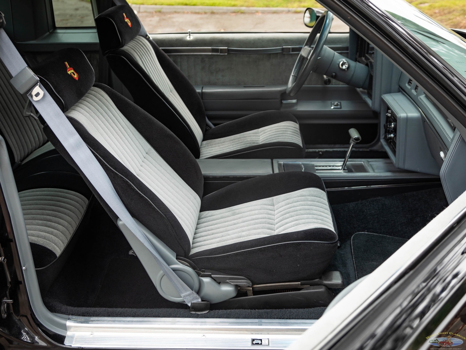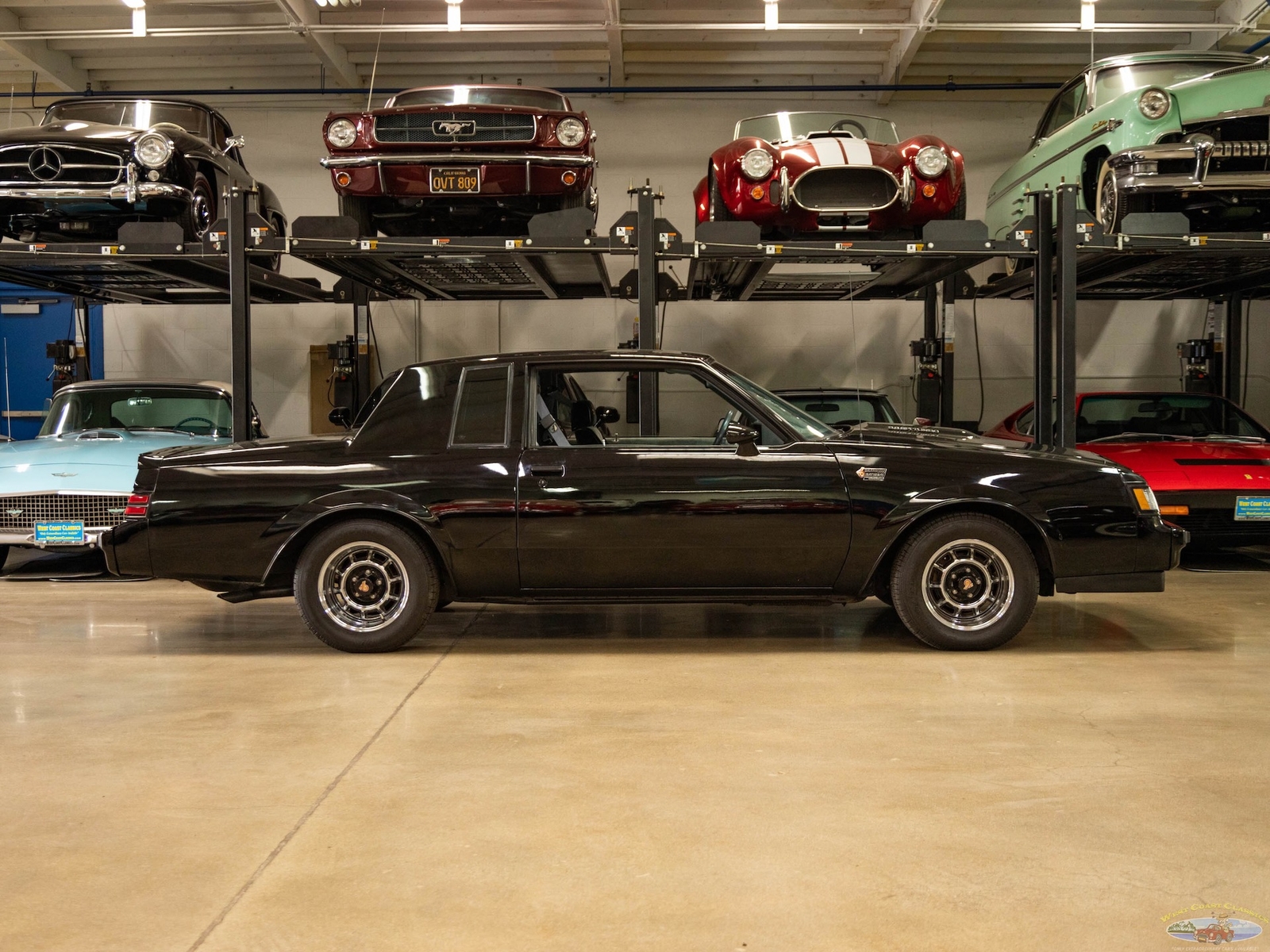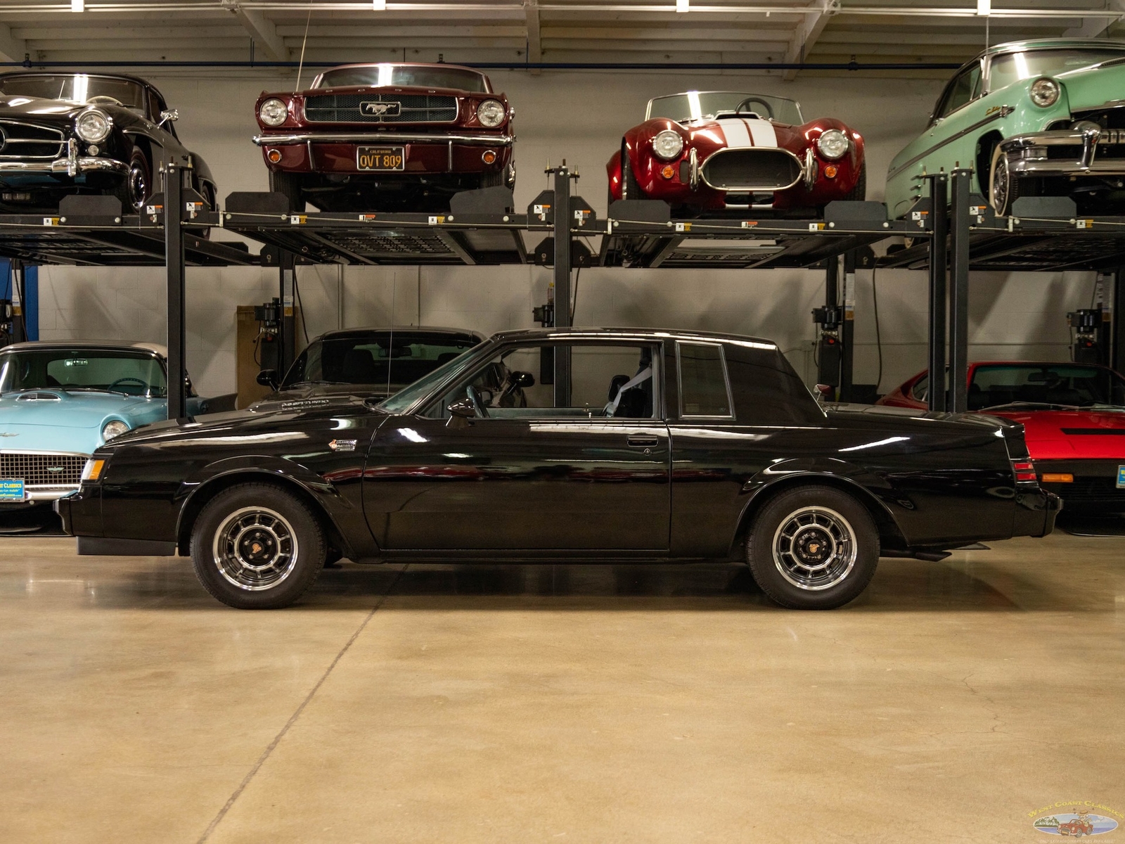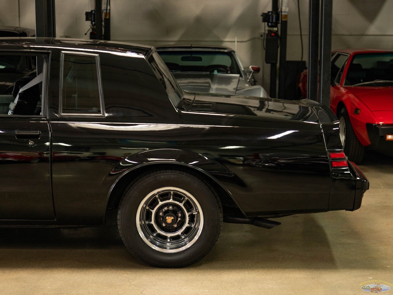 In 1986, the Buick Regal and its virtually identical cousin the Regal Grand National, wasn't selling in big numbers (only 2,384 T-Types, 5,512 Grand Nationals; built in 1986) but it was destined from the start to become a collectible classic car as it was attracting enthusiasts into Buick showrooms with its dramatic looks and turbo-charged 3.8L V6 engines with sequential fuel injection rated at 235 bhp. Virtually identical cousins, the T-Type had a clone but a clone with a twist, a T-Type with the Grand National package; it boasted a 'Darth Vader' look in monotone black only and retailed for an extra $635 and included the same turbo-charged engine, quick ratio power steering, an instrumentation group, sports mirrors with left-hand remote control, a four-speed automatic transmission, air conditioning and P215/65R15 black sidewall tires! These Turbo Buick's became one of the top muscle cars of the 1980's, as eventually demonstrated by the top-of-the-line renown and now legendary 1987 Grand National GNX (Grand National Experimental), made in partnership with 'McLaren Performance Technologies/ASC', of which only 547 were built and which boasted a further reportedly 41HP for a total of 276HP, although Buick famously underrated the GNX as actual output was closer to 300HP! A bigger turbo-charger and inter-cooler along with other enhancements gave this hot rod over 300 bhp and "Car & Driver's" test showed 0-60mph in 4.7 seconds, which amongst factory 1987 cars meant that only Porsche' 911 Turbo could match the GNX's acceleration!