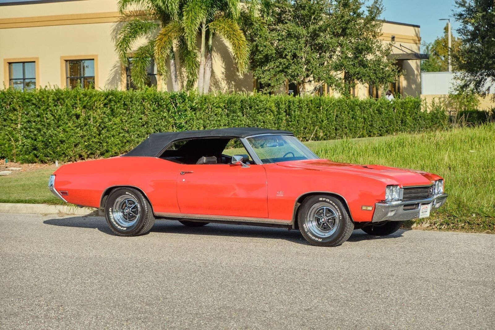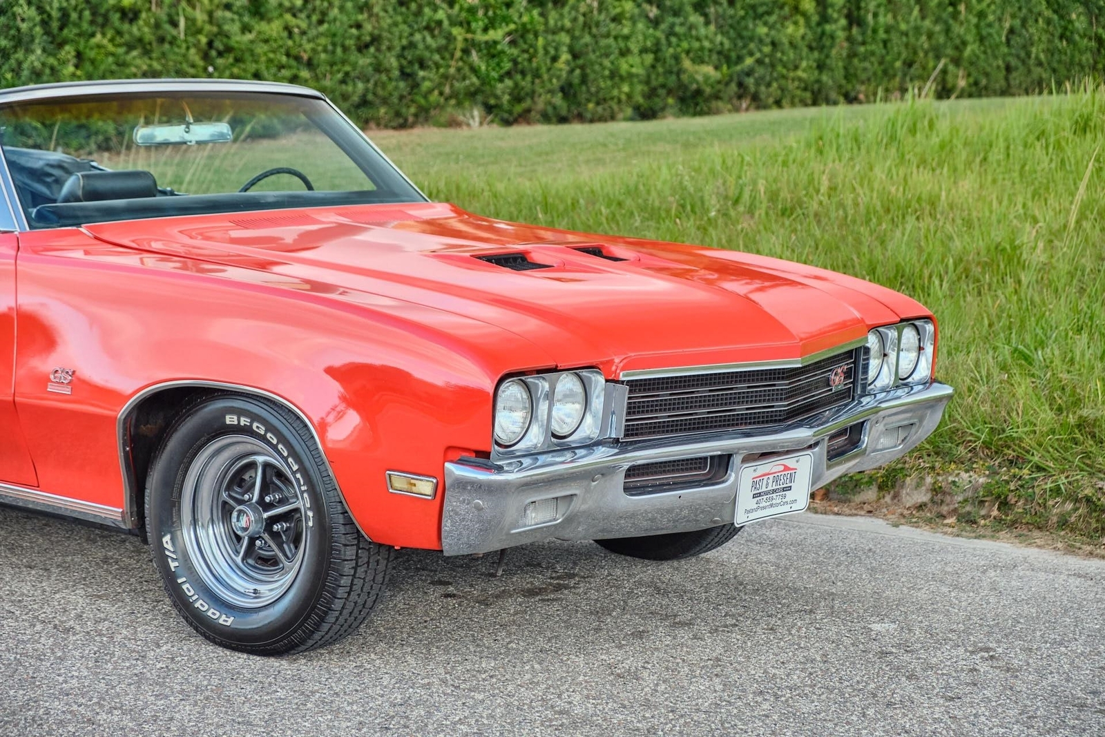 1971 Buick GS Gran Sport Convertible, 350 Cubic Inch V8 Engine with Cold Air Induction System, Automatic Transmission, Options Include Air Conditioning, Power Windows, Power Steering, Power Disc Brakes, Factory Gauges, Bench Seat, Dual Sport Mirrors and Chrome Buick Rallye Wheels with BF Goodrich White Letter Radial T/A Tires. The Original Interior is still in excellent condition. This is a great looking and running car. Older Paint Job in Orange with Black Vinyl Interior and Black Power Convertible Tops. This classic muscle car can be driven and enjoyed. Second generation, Buick GS based on a Skylark Custom. Now remembered as one of GM’s premier muscle cars. Options Include Factory, Air Conditioning, Power Windows, Power Steering, Power Disc Brakes, Factory Gauges, Bench Seat, Dual Sport Mirrors and Chrome Buick Rallye Wheels with BF Goodrich White Letter Radial T/A Tires. The GS also had heavy-duty suspension, Rallye Firm Ride and Handling. Posi Traction rear axle, 3.08 gears. 4-barrel carburetor 280 horsepower. 375 ft lbs torque. Compression ratio 8.5:1. Born to run on low-lead and unleaded fuel, functional hood scoops/ cold air induction and dual exhaust. Similar in displacement to the Chevy 350, Pontiac 350, or Oldsmobile 350; the Buick 350 V8 is a completely different design. It has deep-skirt cylinders, front-mounted distributor, external oil pump. The cylinder heads were very tall and skinny, which allowed for increased flow. The bore and stroke is 3.80 in x 3.85 in, making it just barely undersquare. It has the same ram-air induction system as the GS400 big block V8. Older Paint Job in L529 1972-1975 Fire Glow Orange. Original Black Vinyl Interior in excellent condition. Split bench seat. Nice faux wood accents on door panels, dash and steering wheel. Black Power Convertible Top. This is a great looking and running car. This classic muscle car can be driven and enjoyed. While we do our best to provide the highest quality muscle cars with an honest and reliable description and realize the importance of transparency when selling vehicles. That being said, we have not built, modified, changed or personally owned this vehicle. Whether this vehicle is consigned or owned by Past & Present Motor Cars we do not know the vehicles complete history since new. We want to be clear and try to answer any questions our customers might have prior to purchasing. Additionally, we not only welcome but we encourage 3rd party independent inspections. Please inquire prior to purchase to make sure the advertised vehicle has not already been sold. We list our vehicles on multiple websites and a vehicle can sell at any time. If a customer chooses to purchase sight unseen (many of our customers choose this option) the customer accepts the vehicle AS IS and WHERE IS and understands we cannot address concerns after purchase. For this reason, it's important all concerns are addressed prior to purchase. We make every effort to present accurate and reliable information, but use of this information is voluntary, and should only be deemed reliable after an independent review of its accuracy, completeness, and timeliness. It is the sole responsibility of the customer to verify the existence of options, accessories and the vehicle condition before time of sale. Financing is Available with low rates and Vehicle Shipping is available from our Showroom to your Garage. A Classic Car Warranty is Available for Purchase from a 3rd Party. Please speak to our Sales Associate or Company Representative for more information. Our team is working and available anytime by Phone or Text for your convenience at 407-559-7759. Thank you for your interest!