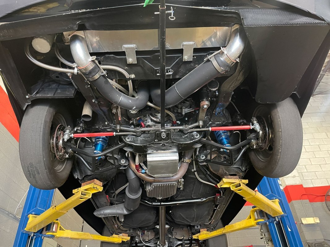 Powered by a turbocharged 274 ci V6 that was built by RPE Performance Engines of Hartford, Connecticut, under previous ownership. The car is finished in black and additional equipment includes a three-speed TH400 automatic transmission with a Reid Racing case along with a Precision 88mm turbocharger, Carrillo pistons, Moser axles, a roll cage, aftermarket suspension components, 15" Weld Racing wheels, Aerospace Components disc brakes, Corbeau racing seats, an Elite racing harness, a five-gallon fuel cell, a FAST XFI 2.0 ECU, and a parachute