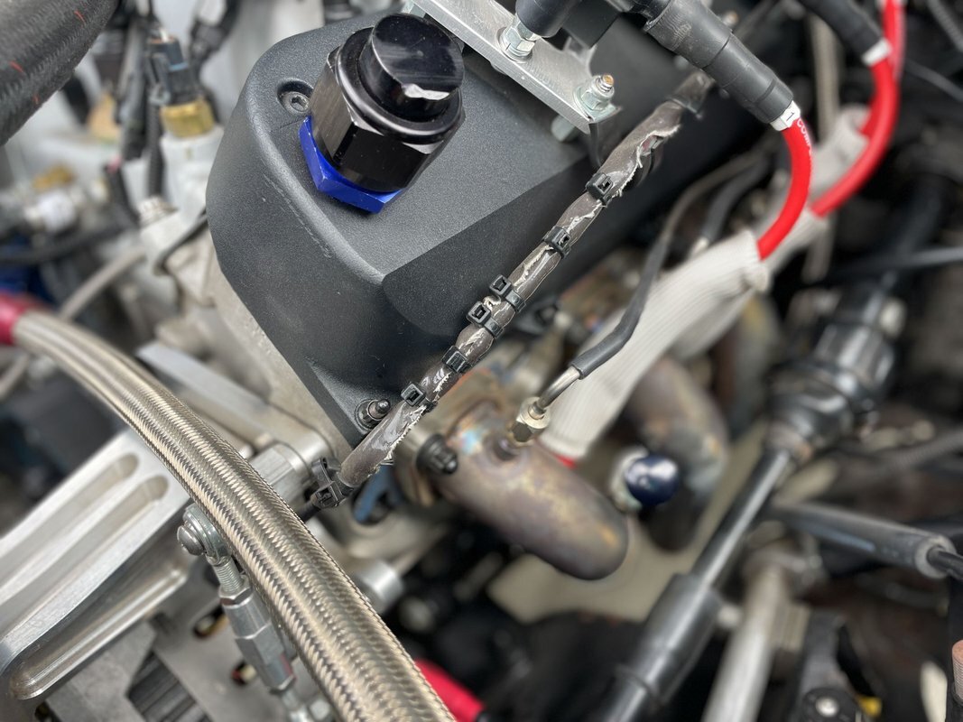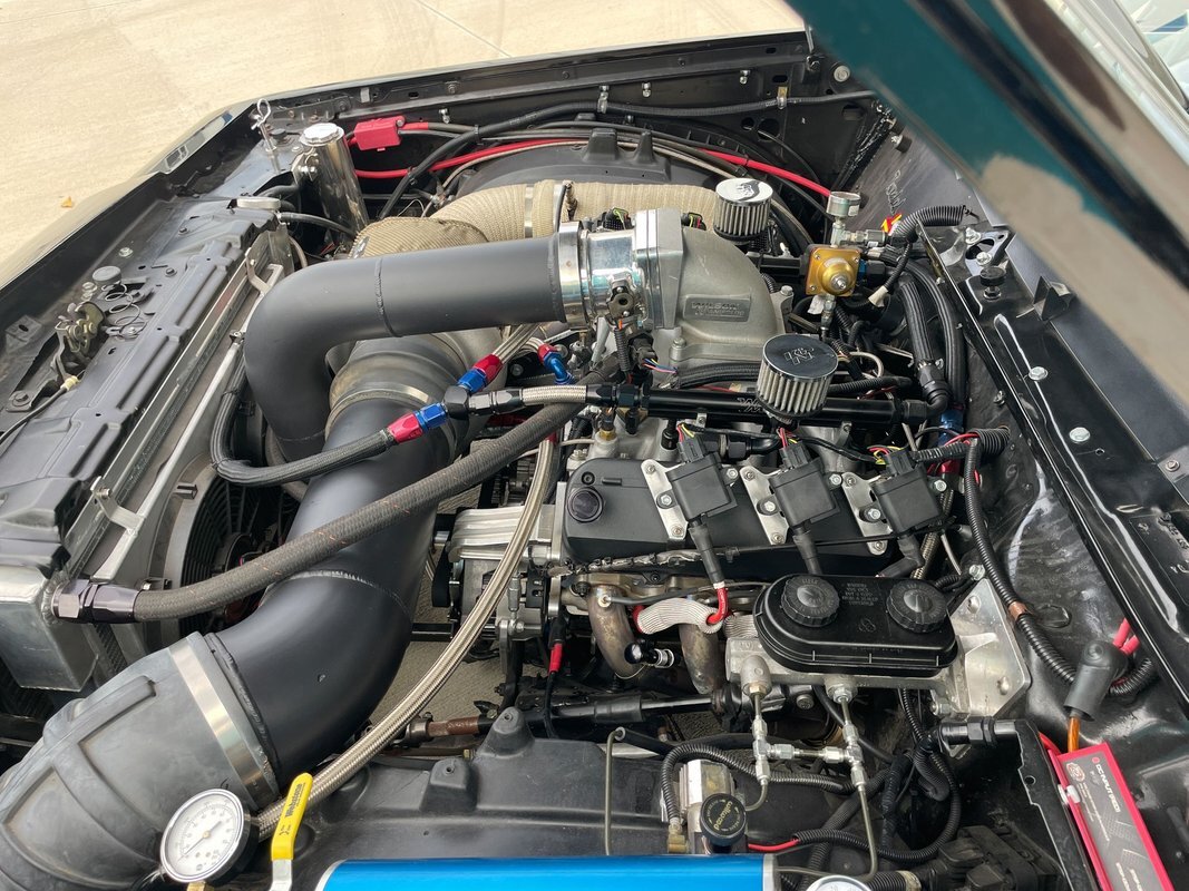 The replacement turbocharged Stage 2 All Alumunum 274ci V6 was built by RPE Performance Engines of Hartford, Connecticut, under previous ownership. Ran a 8.70 at 155mph at 18psi, and is currently tuned to 1200hp @28psi low boost. It is setup for the TSO class where normal boost is 50psi.