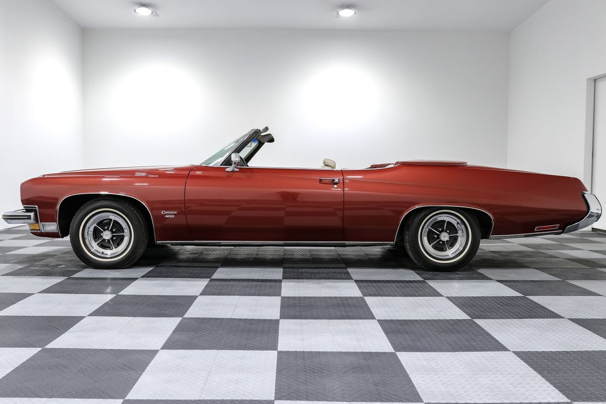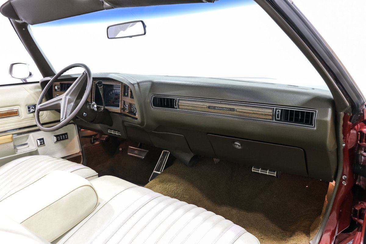 Discover the epitome of 1970s luxury with this stunning 1973 Buick Centurion Convertible. Powered by a formidable 455 Buick V8 engine paired with a Turbo 400 automatic transmission, this vehicle offers a blend of smooth performance and commanding presence on the road. Its elegant maroon exterior, complemented by a luxurious cream vinyl interior, sets a benchmark for classic style, making it a standout collector's item.